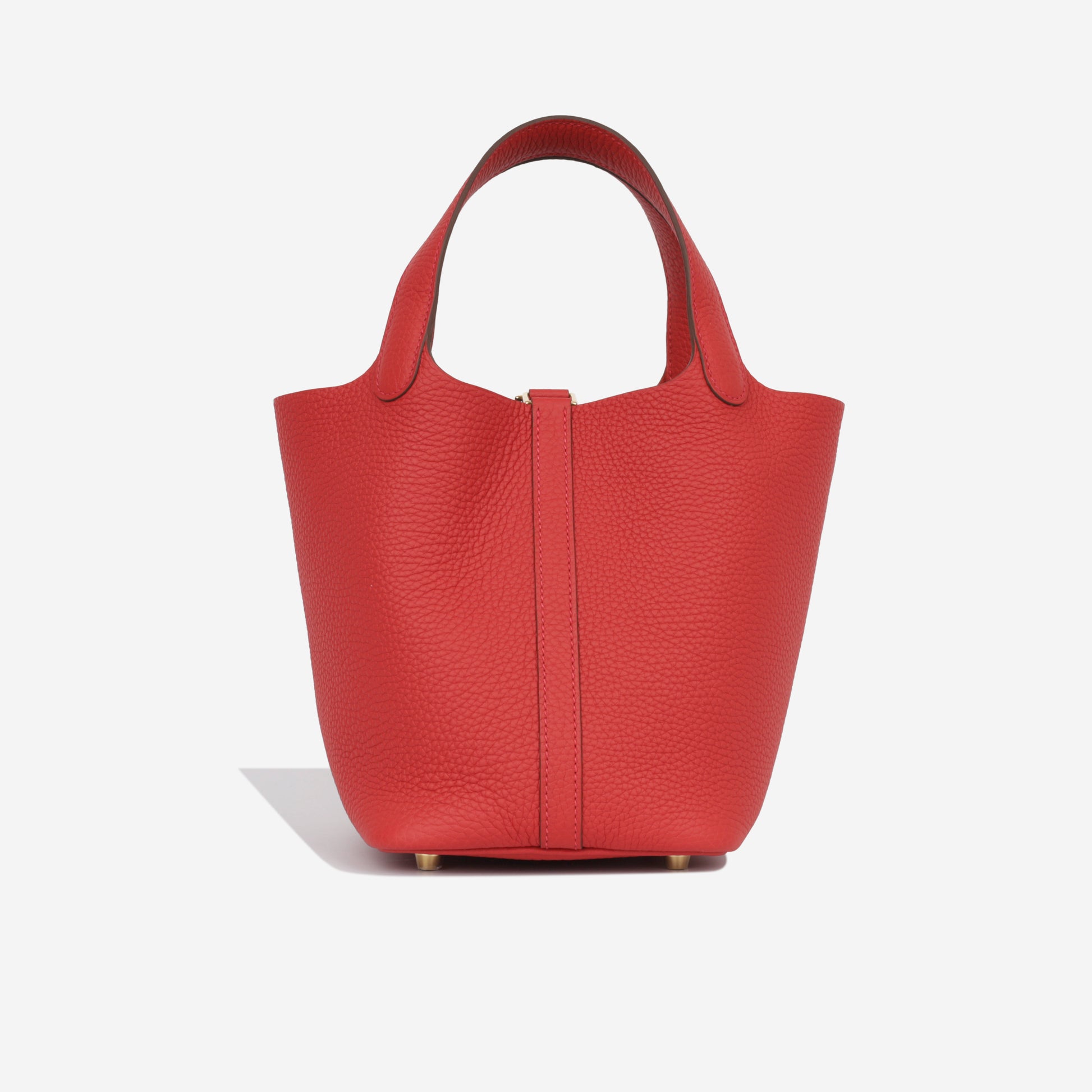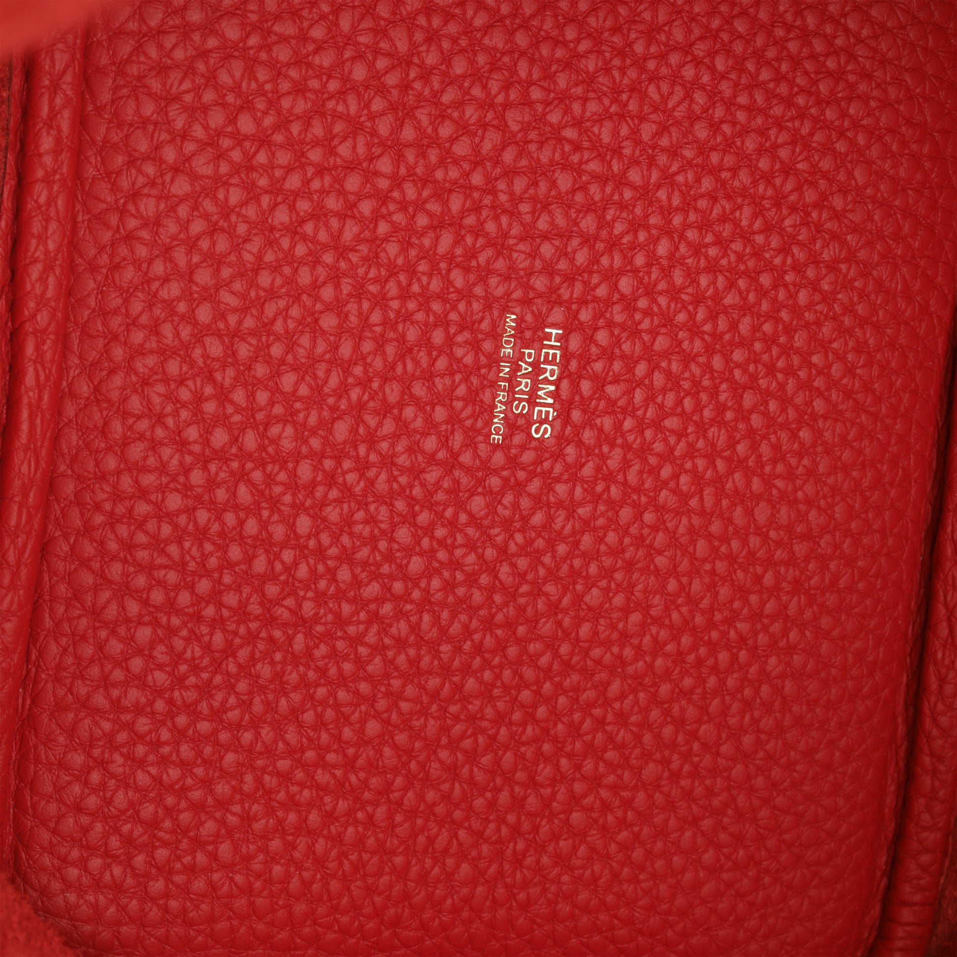 Carefully crafted from supple, Clemence leather, Hermès presents their stunning mini Picotin 18 bag in a beautiful combination of Rouge Garance and gold tone hardware. Hermès is acclaimed for their leather quality, as well as being at the very top of the fashion hierarchy. Simple, elegant, and understated, each Hermès bag is timeless and tasteful. This bag is no exception. Carry all your everyday essentials in style while remaining sleek and sophisticated.