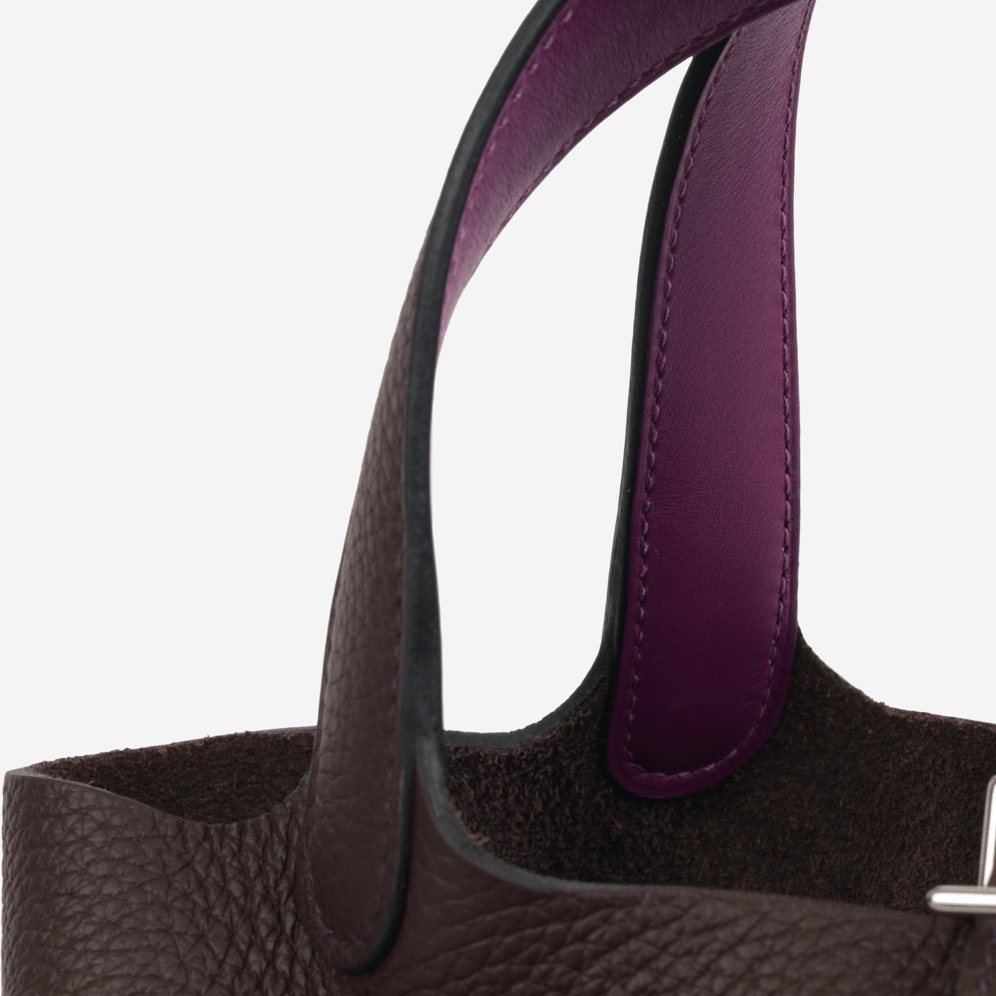 Carefully crafted from supple, textured leather, Hermès presents their stunning mini Picotin 18 bag in a beautiful combination of Rouge Sellier and Anemone leather with Palladium hardware. Hermès is acclaimed for their leather quality, as well as being at the very top of the fashion hierarchy. Simple, elegant, and understated, each Hermès bag is timeless and tasteful. This bag is no exception.