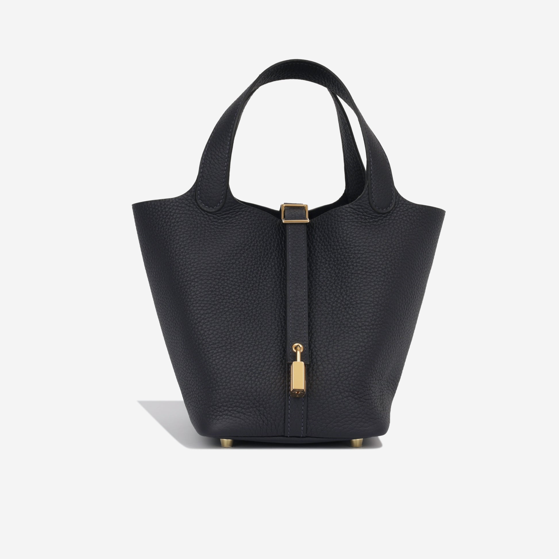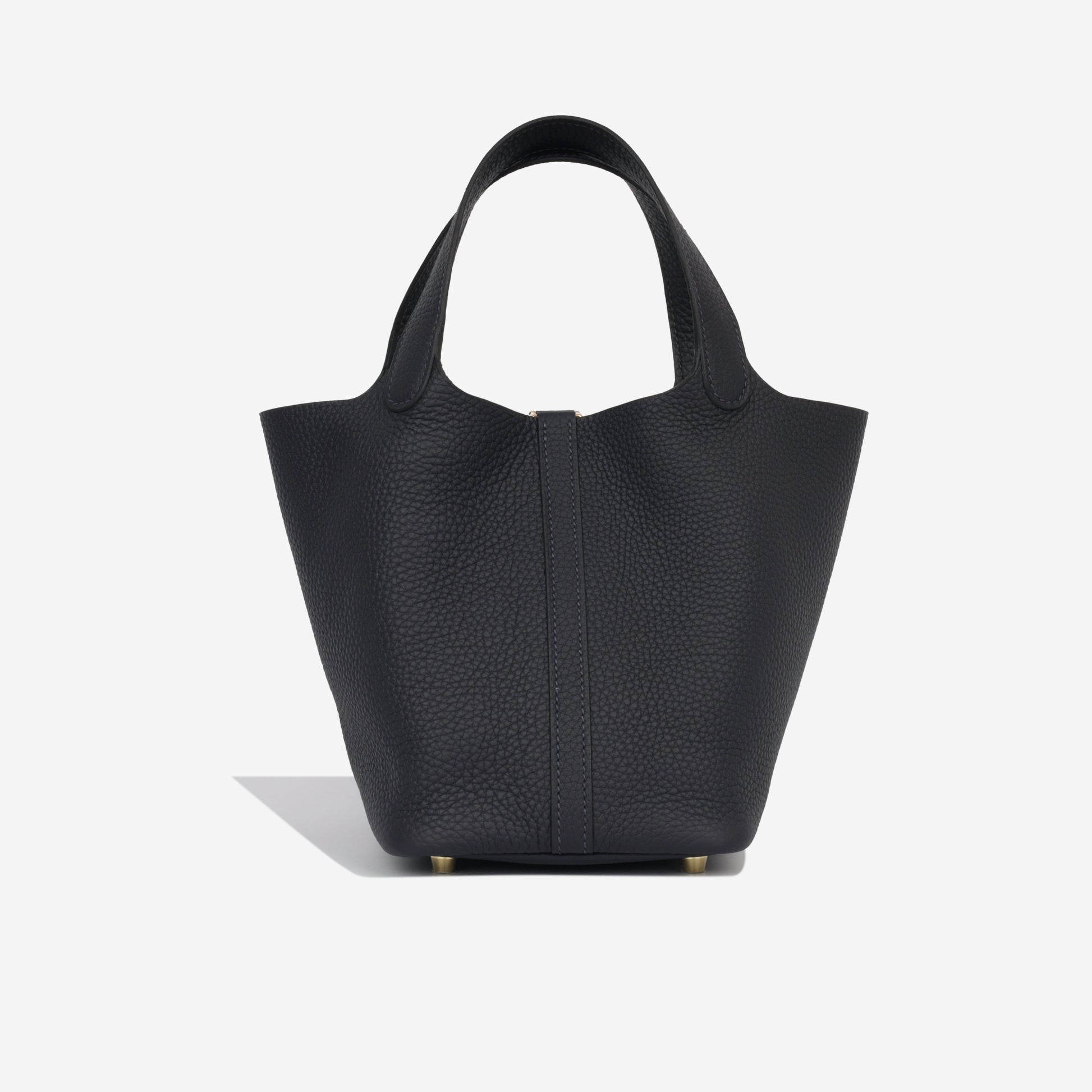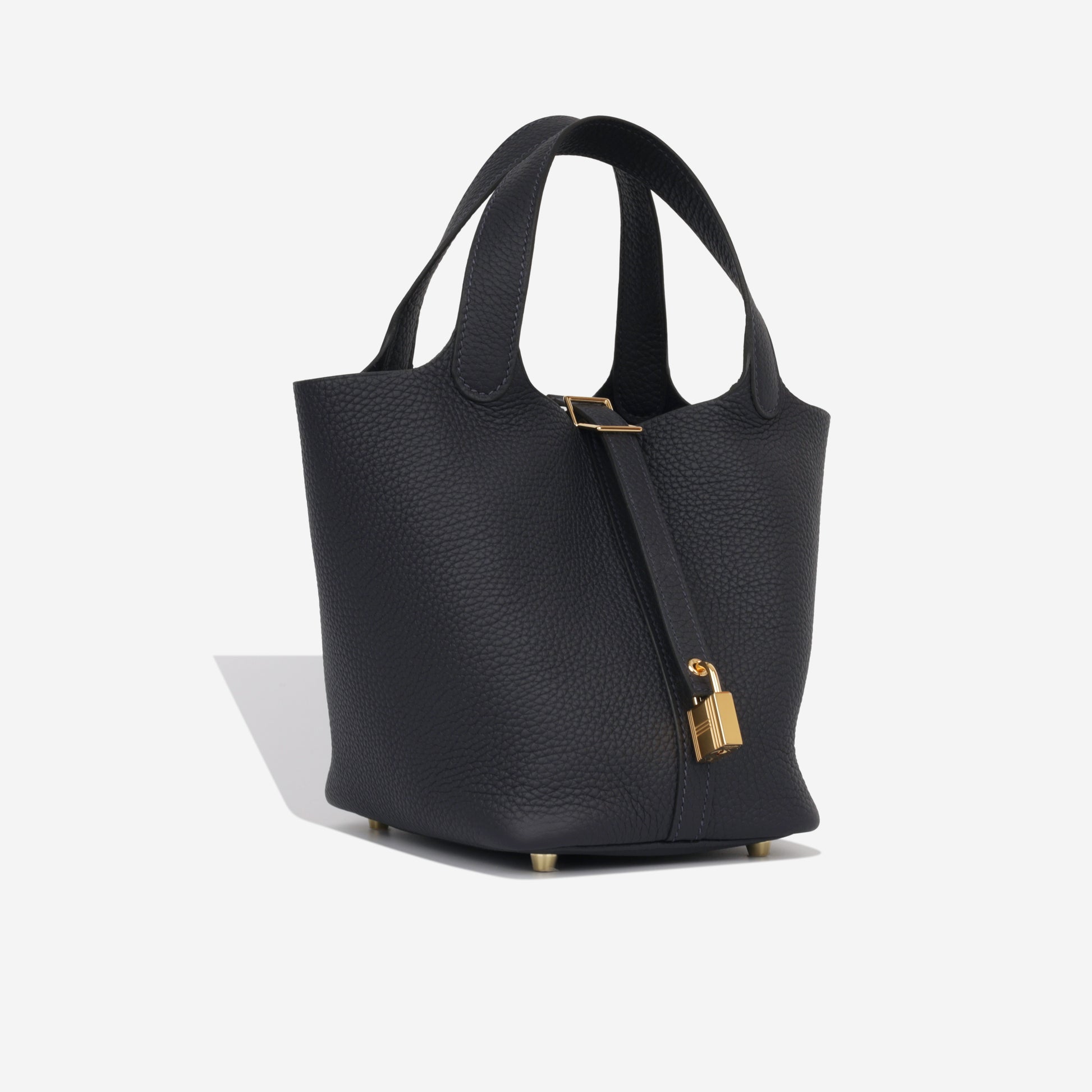 Carefully crafted from supple, Clemence leather, Hermès presents their stunning mini Picotin 18 bag in a beautiful combination of deep blue Caban and palladium tone hardware. Hermès is acclaimed for their leather quality, as well as being at the very top of the fashion hierarchy. Simple, elegant, and understated, each Hermès bag is timeless and tasteful. Carry all your everyday essentials in style while remaining sleek and sophisticated.
