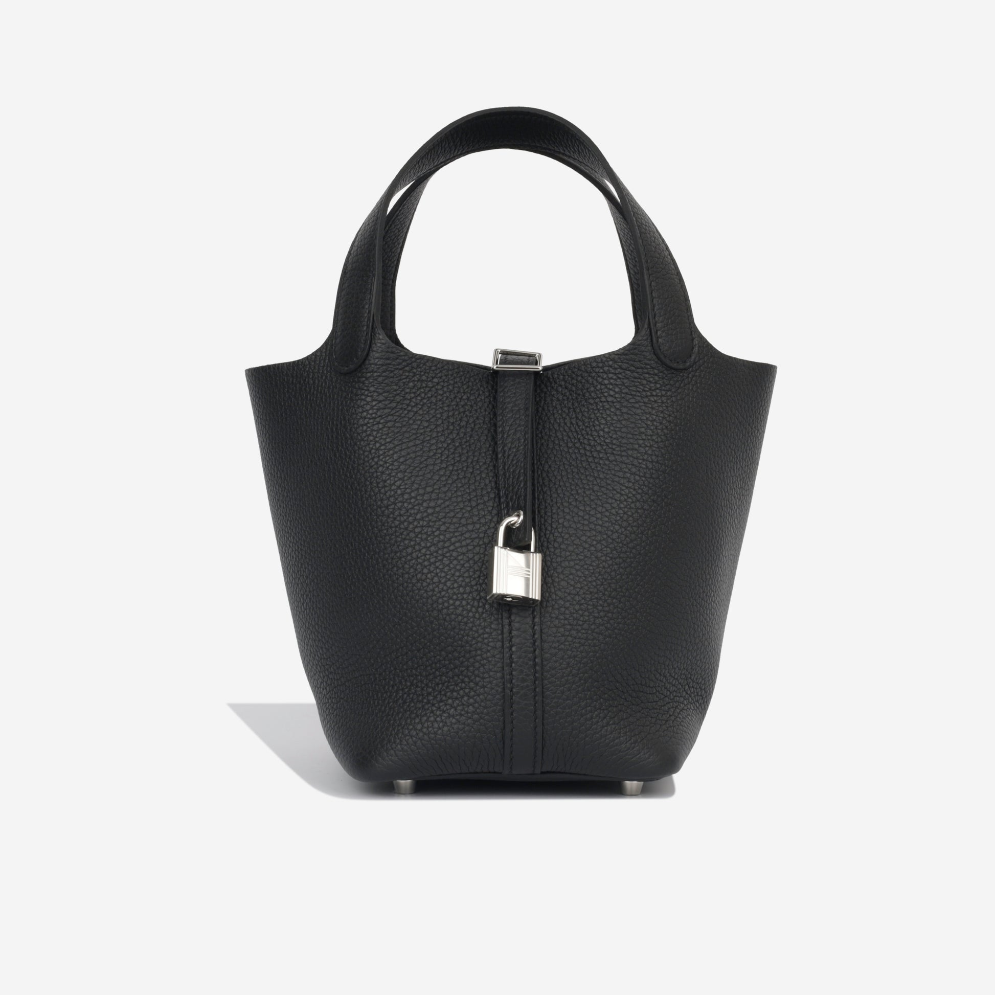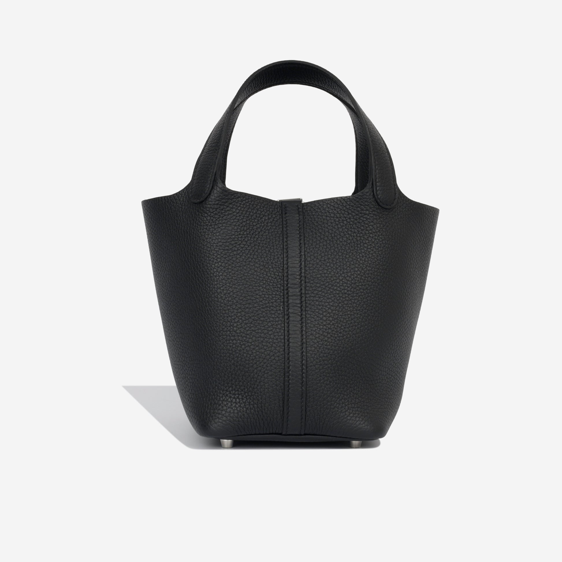 Carefully crafted from supple, Clemence leather, Hermès presents their stunning mini Picotin 18 bag. Hermès is acclaimed for their leather quality, as well as being at the very top of the fashion hierarchy. Simple, elegant, and understated, each Hermès bag is timeless and tasteful. This bag is no exception. Carry all your everyday essentials in style while remaining sleek and sophisticated. The Picotin lock exudes Hermès classic "if you know, you know" aesthetic.