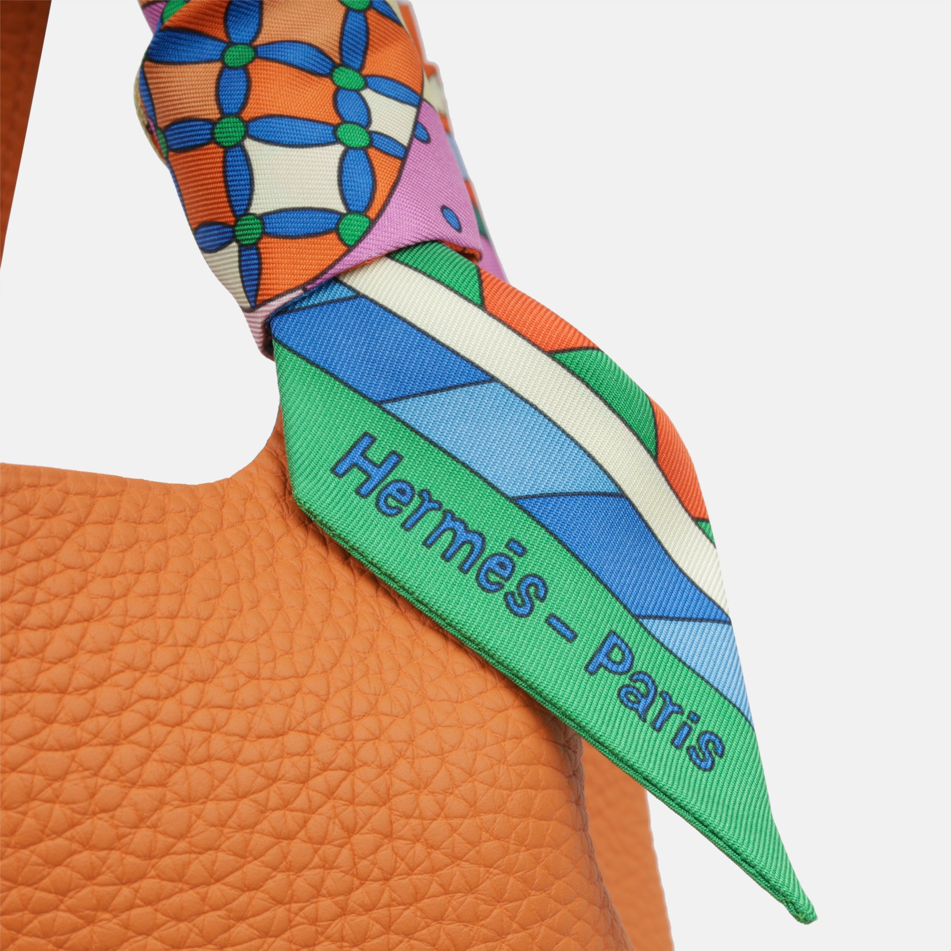 Carefully crafted from supple, Clemence leather, Hermès presents their stunning Picotin 18 bag. Hermès is acclaimed for their leather quality, as well as being at the very top of the fashion hierarchy. Simple, elegant, and understated, each Hermès bag is timeless and tasteful. Carry all your everyday essentials in style while remaining sleek and sophisticated.