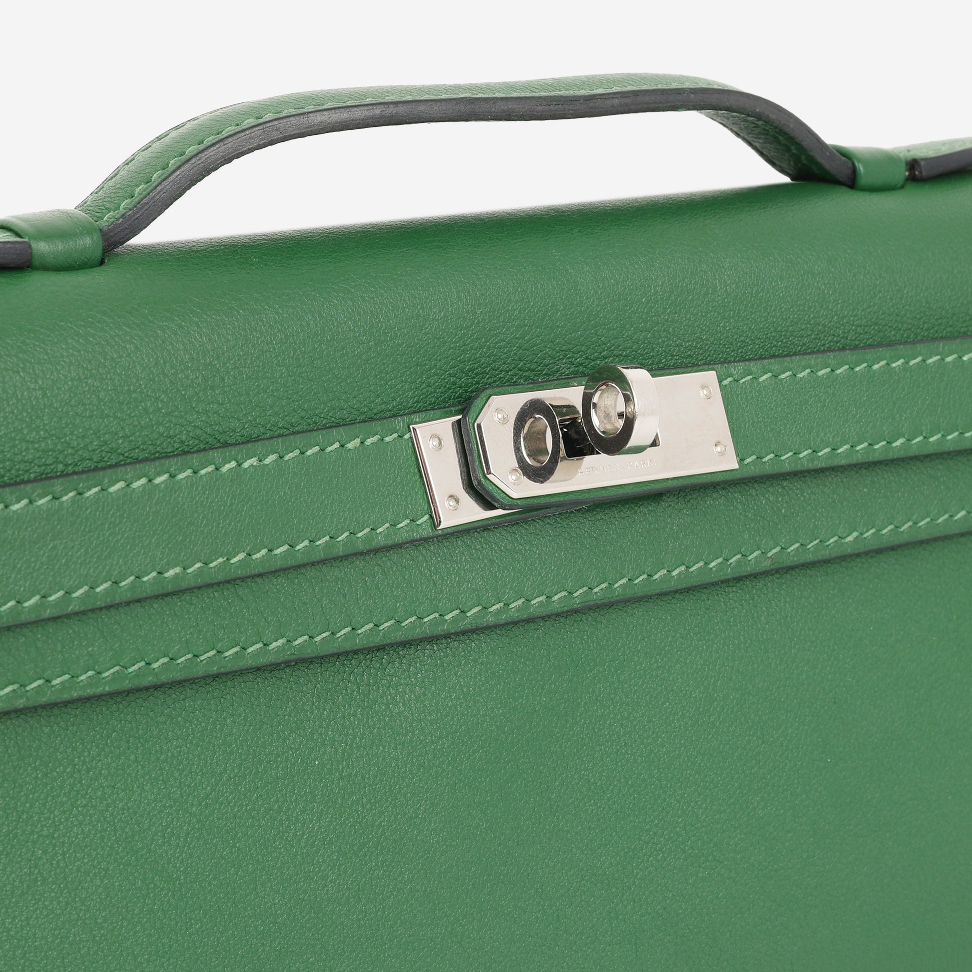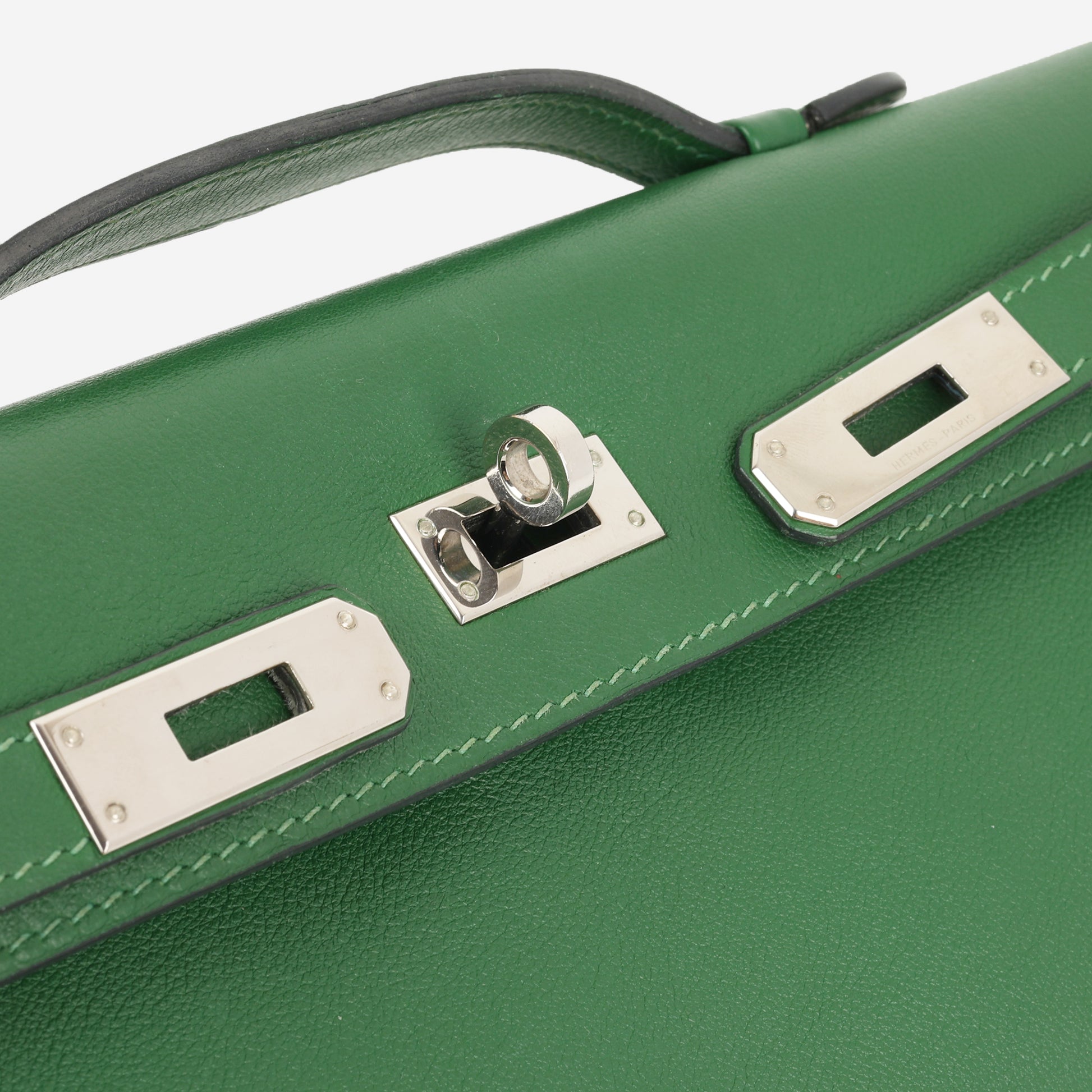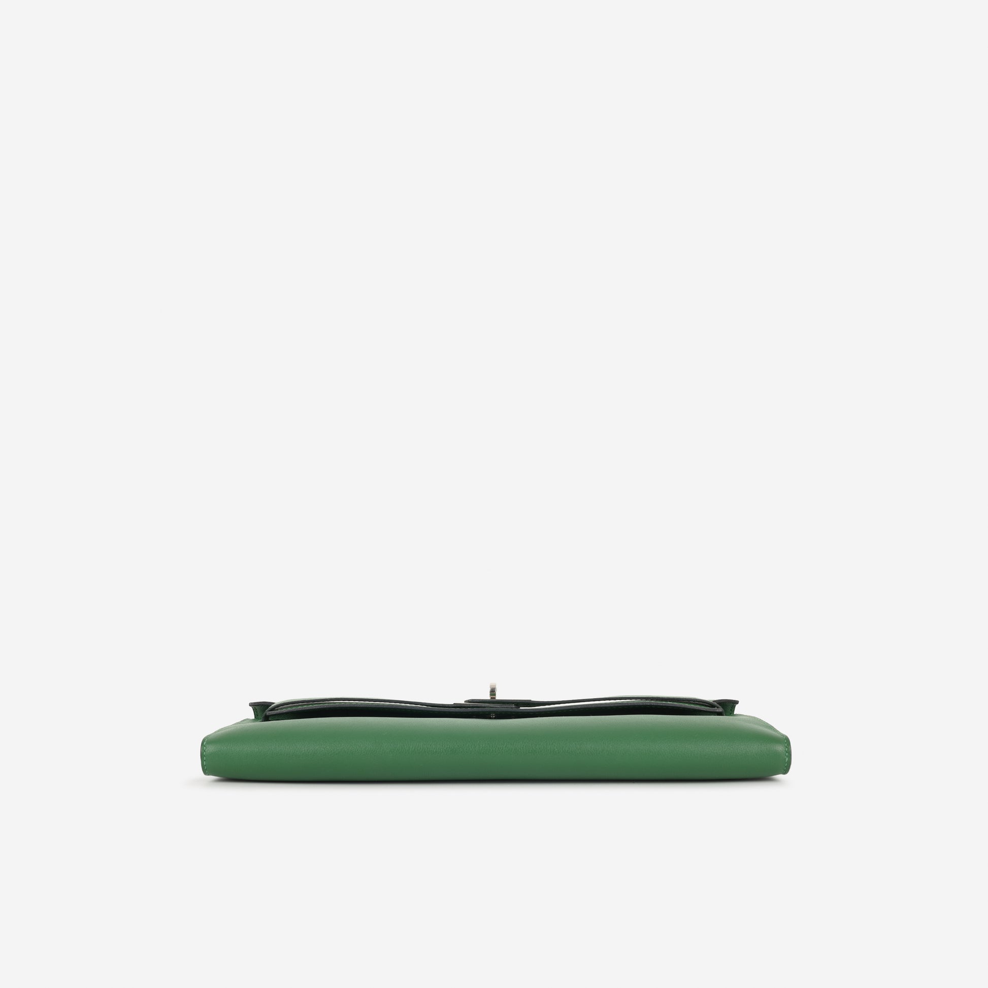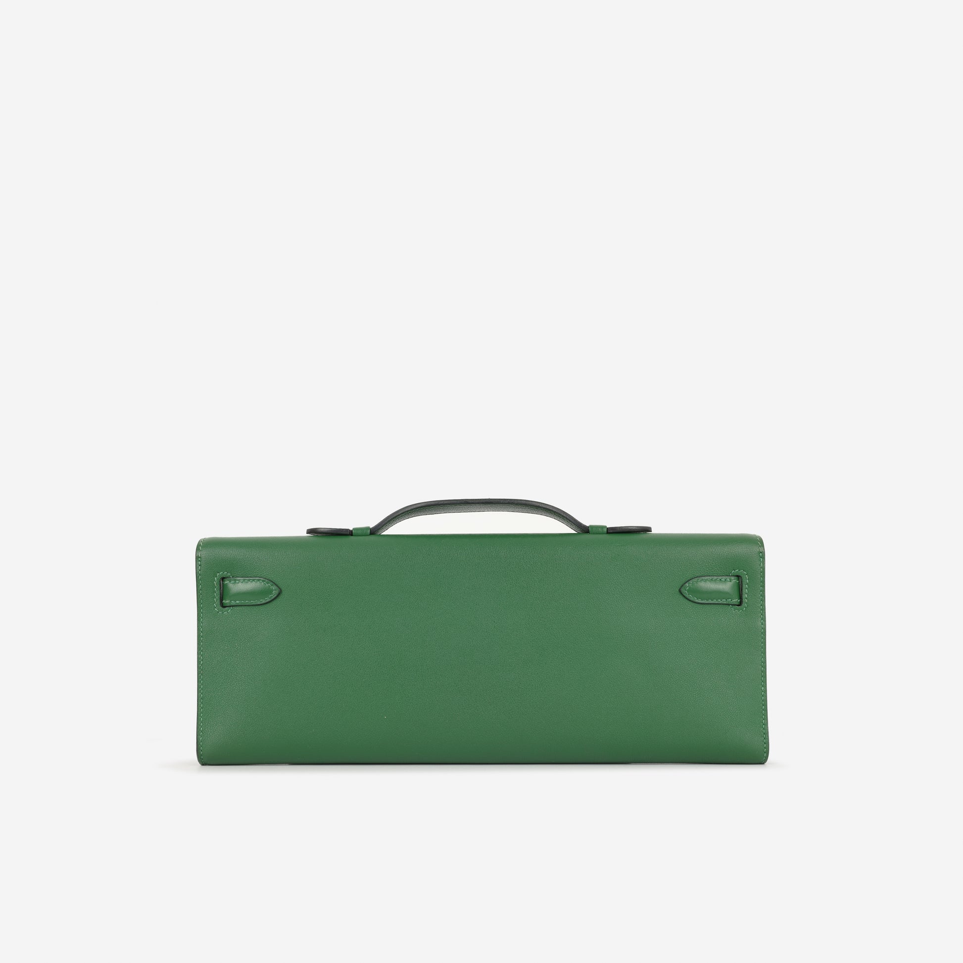 Make a bold and elegant statement with the Hermès Kelly Cut in Vert Bengale Swift leather, finished with sleek palladium hardware. This refined clutch version of the iconic Kelly bag showcases Hermès' expert craftsmanship with its clean lines, rich green hue, and smooth, supple leather. Available now at Bagista, London’s most trusted reseller.
