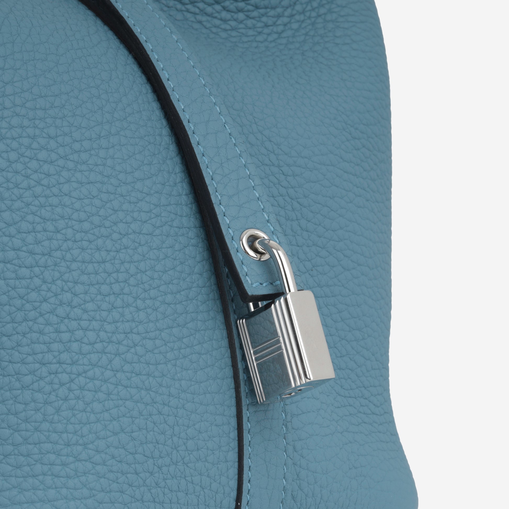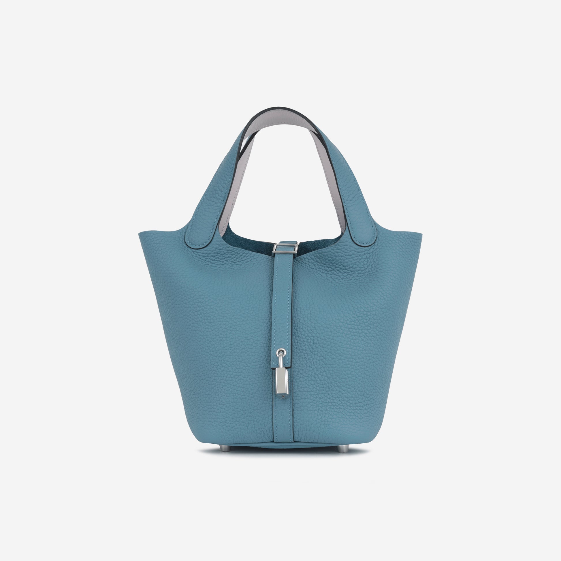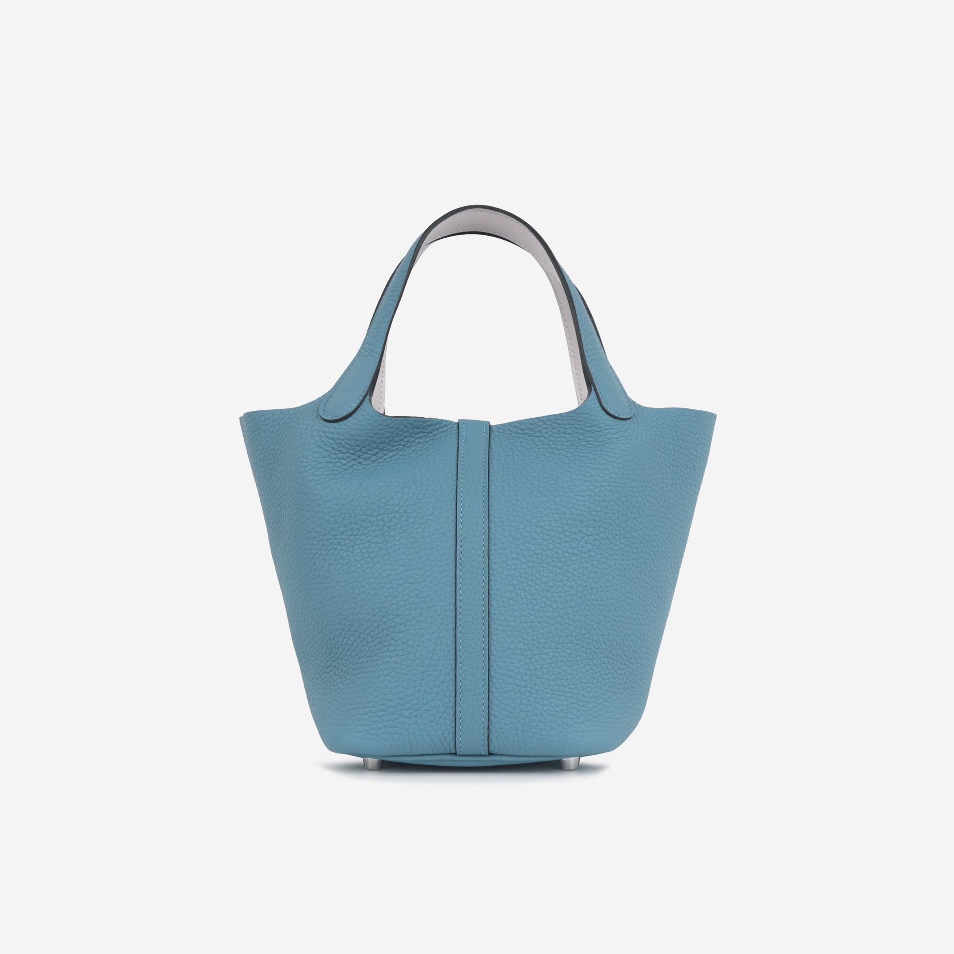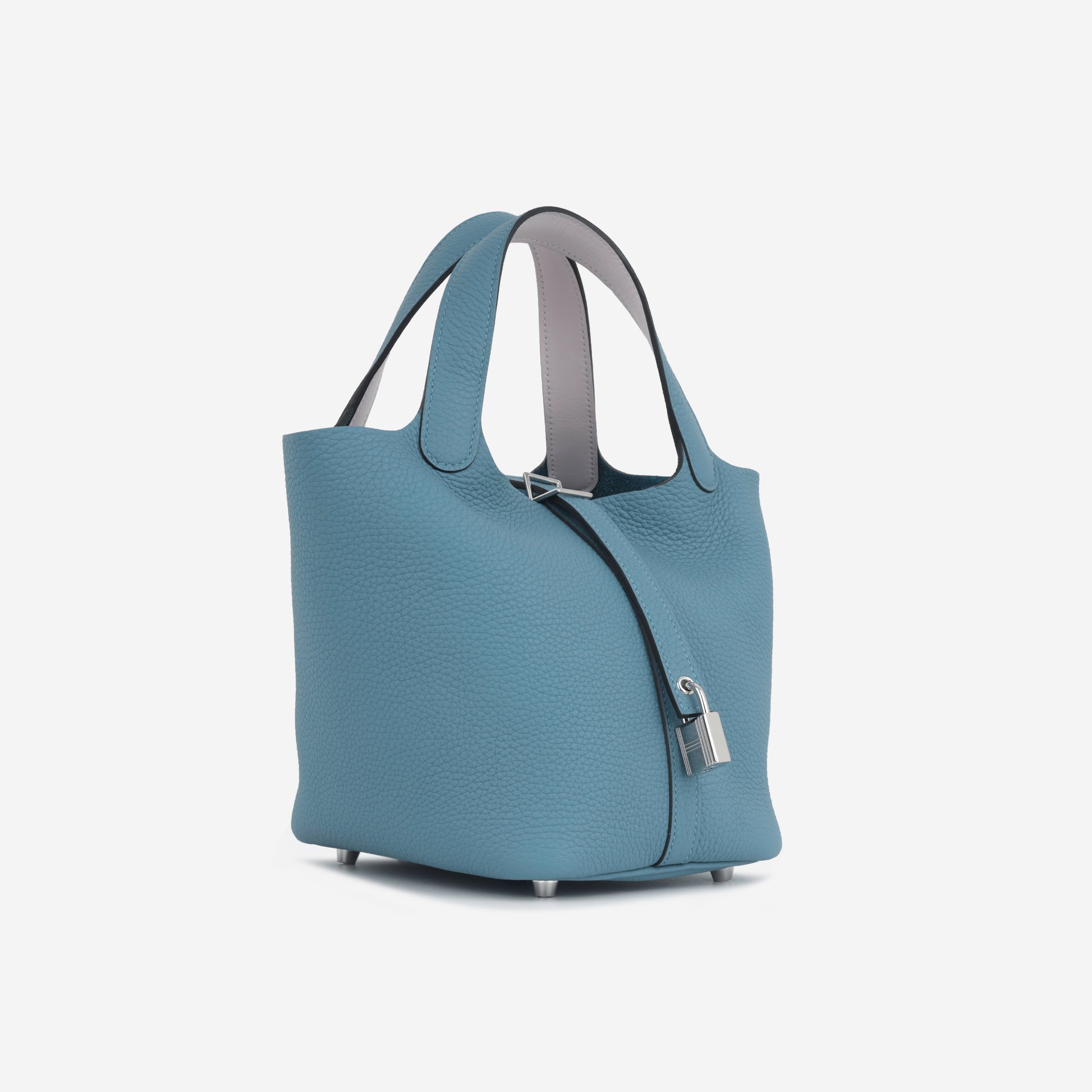 Carefully crafted from supple, Clemence leather, Hermès presents their stunning mini Picotin 18 bag in a beautiful combination of Clemence leather and complimented with palladium hardware. Hermès is acclaimed for their leather quality, as well as being at the very top of the fashion hierarchy. Simple, elegant, and understated, each Hermès bag is timeless and tasteful.