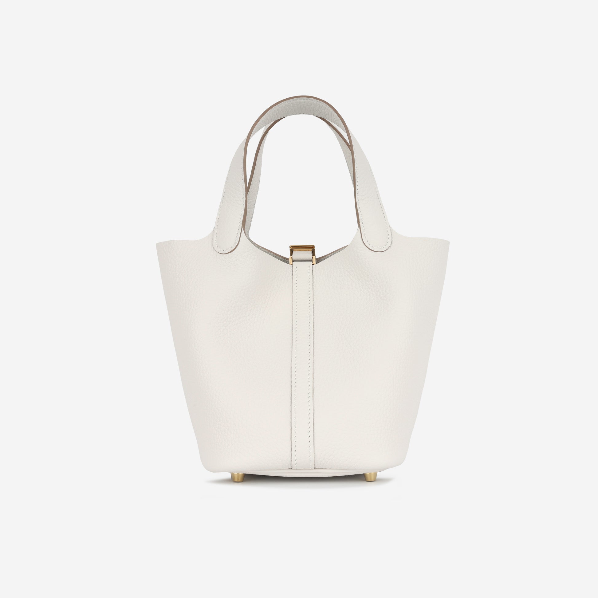 Carefully crafted from supple, Clemence leather, Hermès presents their stunning mini Picotin 18 bag in a beautiful combination of Ebene and complimented with gold-tone hardware. Hermès is acclaimed for their leather quality, as well as being at the very top of the fashion hierarchy. Simple, elegant, and understated, each Hermès bag is timeless and tasteful.