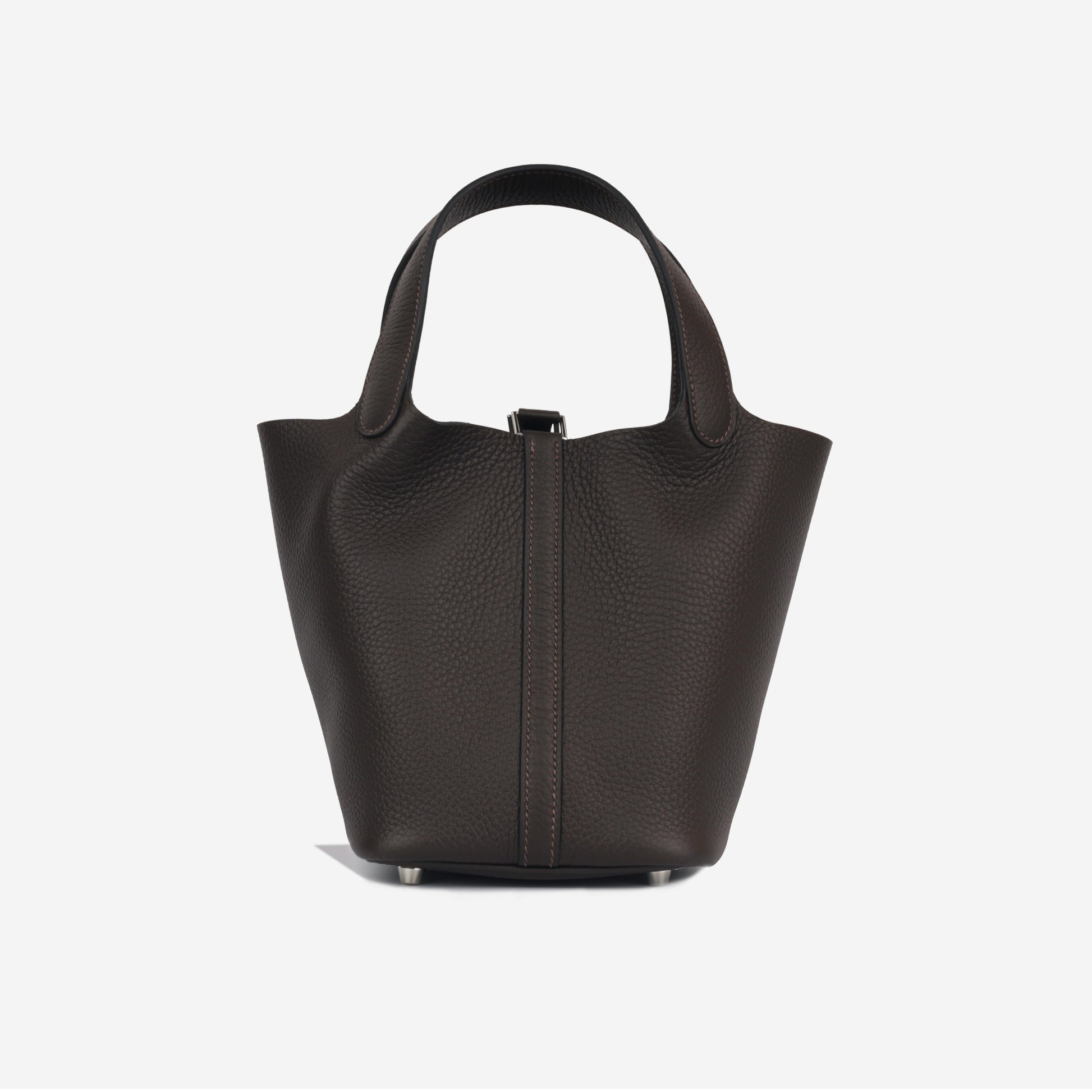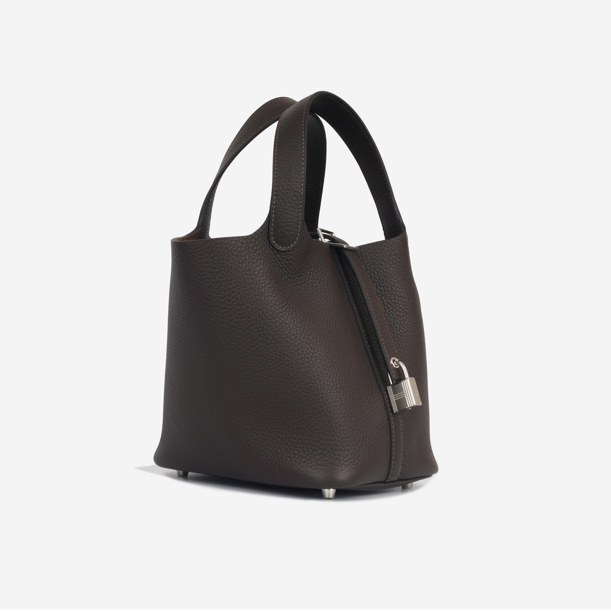 Carefully crafted from Clemence leather, Hermès presents their stunning Picotin 18 bag. Hermès is acclaimed for their leather quality, as well as being at the very top of the fashion hierarchy. Simple, elegant, and understated, each Hermès bag is timeless and tasteful. Carry all your everyday essentials in style while remaining sleek and sophisticated.