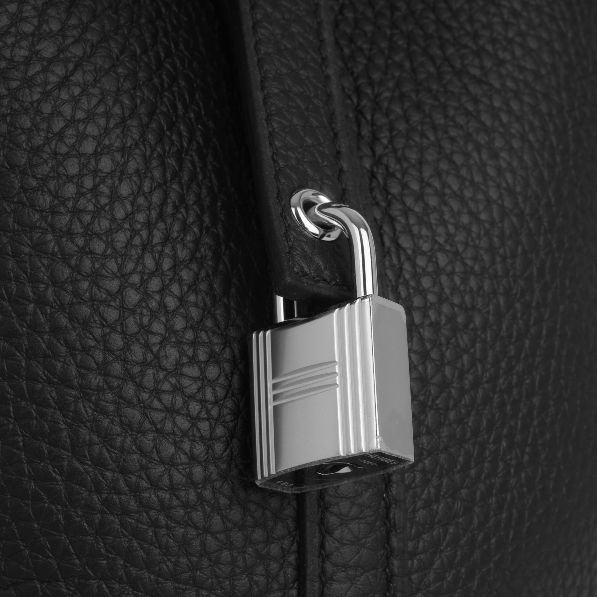 Carefully crafted from supple, Clemence leather, Hermès presents their stunning Picotin 18 bag. Hermès is acclaimed for their leather quality, as well as being at the very top of the fashion hierarchy. Simple, elegant, and understated, each Hermès bag is timeless and tasteful. Carry all your everyday essentials in style while remaining sleek and sophisticated.