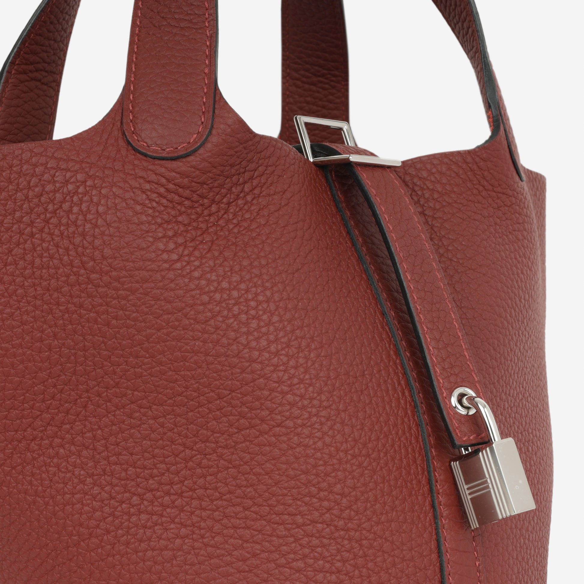 Carefully crafted from supple, Clemence leather, Hermès presents their stunning Picotin 18 bag. Hermès is acclaimed for their leather quality, as well as being at the very top of the fashion hierarchy. Simple, elegant, and understated, each Hermès bag is timeless and tasteful. Carry all your everyday essentials in style while remaining sleek and sophisticated.