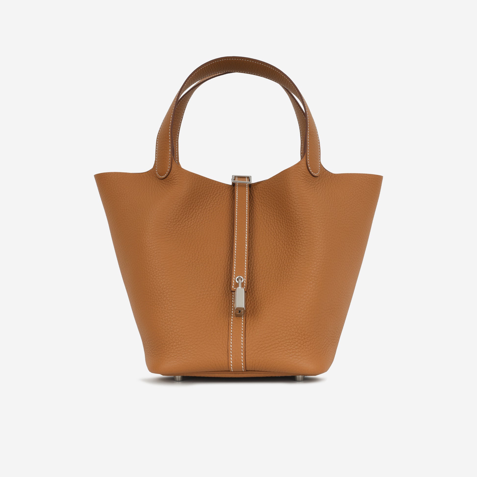 Carefully crafted from supple, textured leather, Hermès presents their stunning Picotin 22 bag in a beautiful combination of Clemence and Palladium hardware. Hermès is acclaimed for their leather quality, as well as being at the very top of the fashion hierarchy. Simple, elegant, and understated, each Hermès bag is timeless and tasteful.