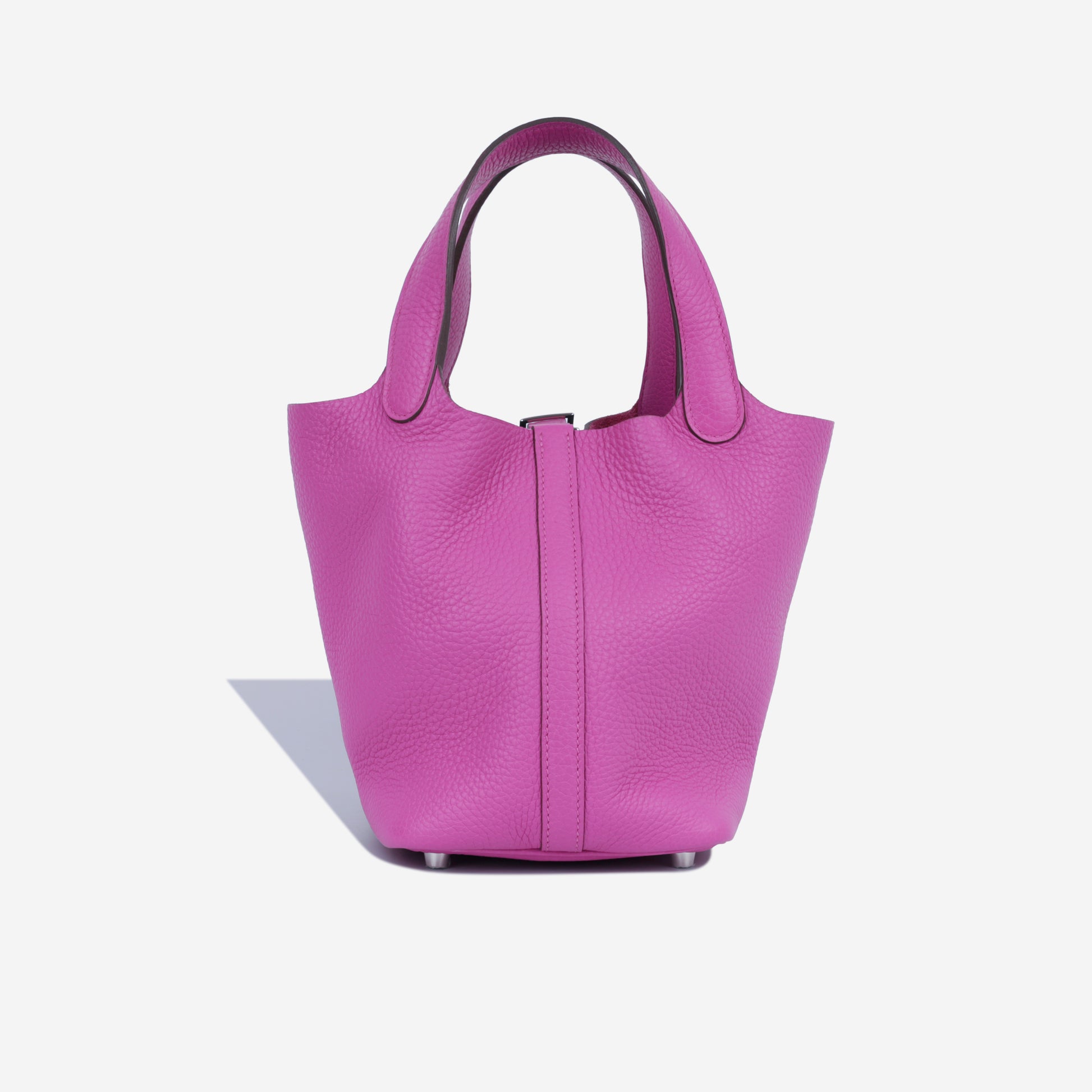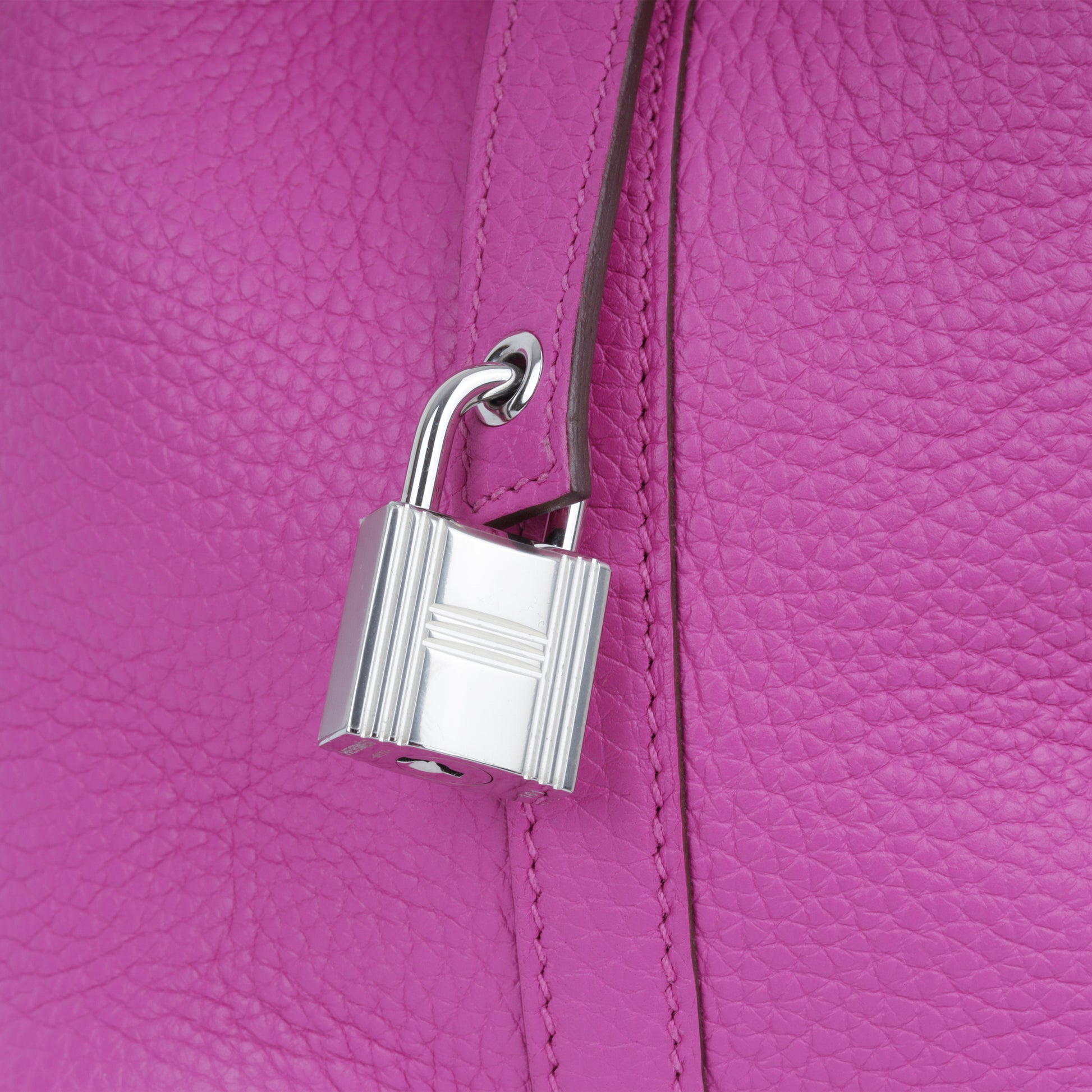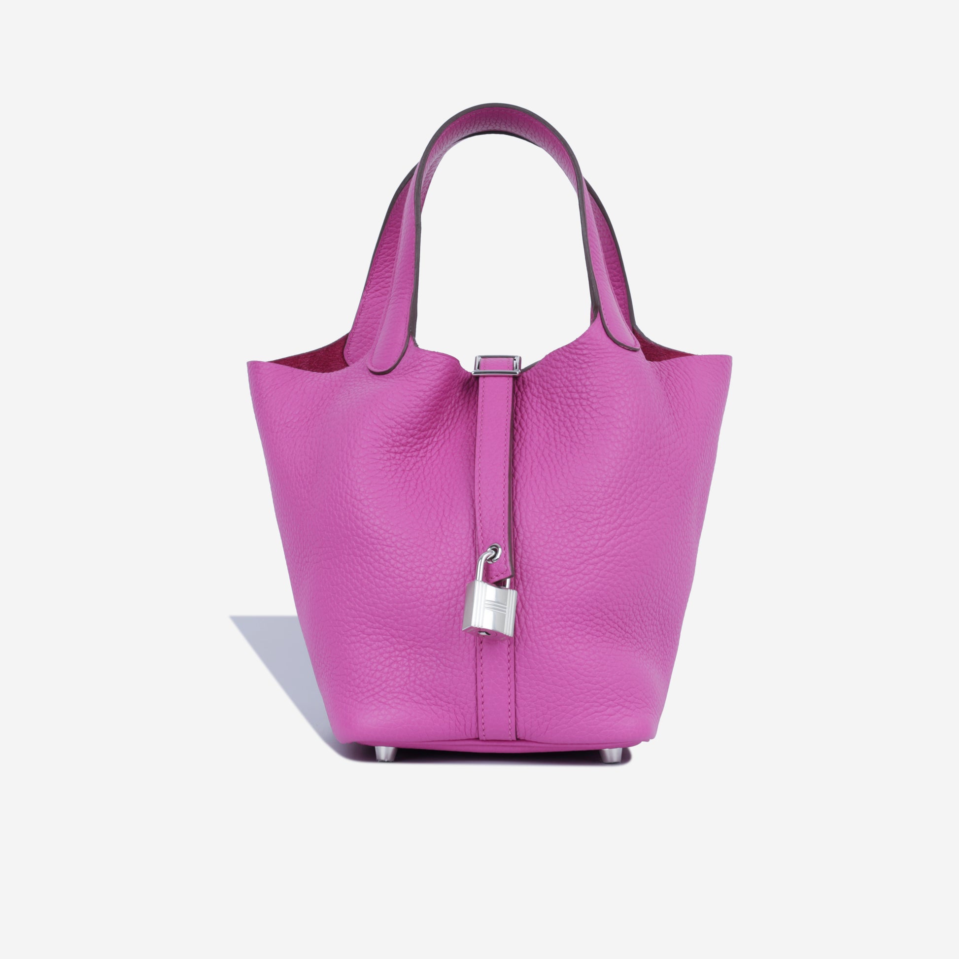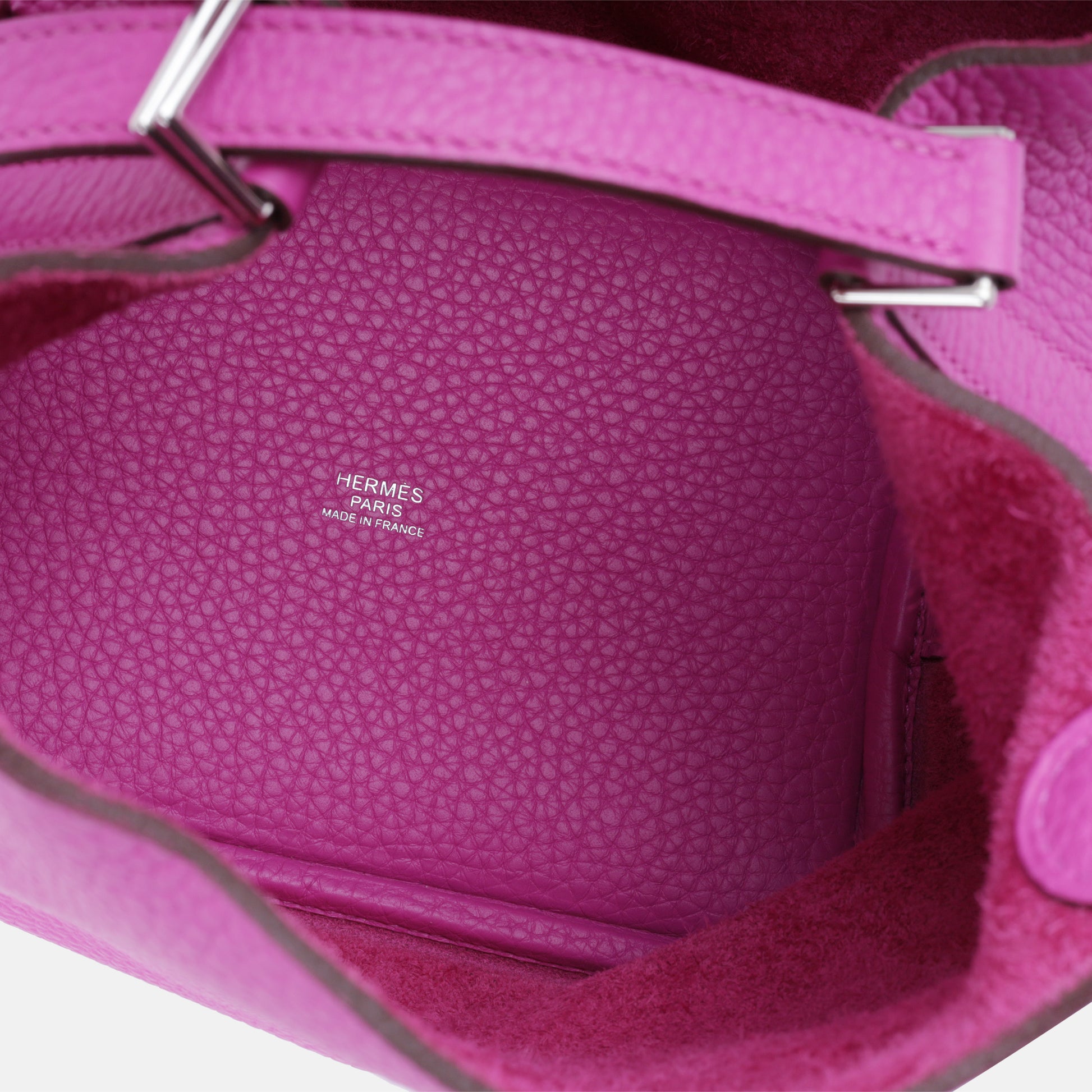 Carefully crafted from supple, textured leather, Hermès presents their stunning mini Picotin 18 bag in a beautiful combination of Magnolia Clemence leather and Palladium hardware. Hermès is acclaimed for their leather quality, as well as being at the very top of the fashion hierarchy. Simple, elegant, and understated, each Hermès bag is timeless and tasteful. This bag is no exception.