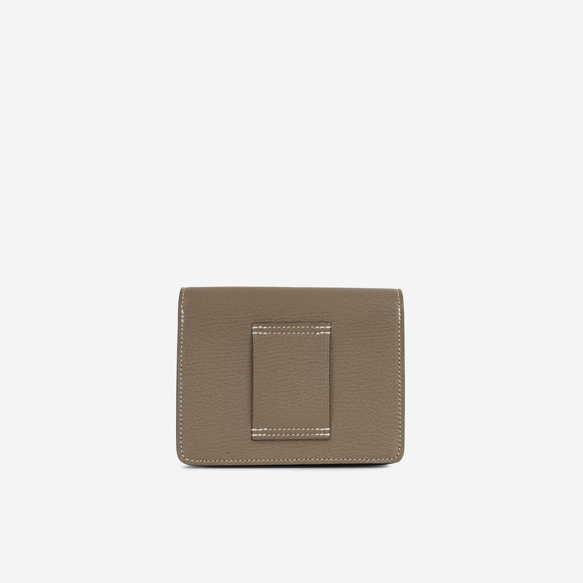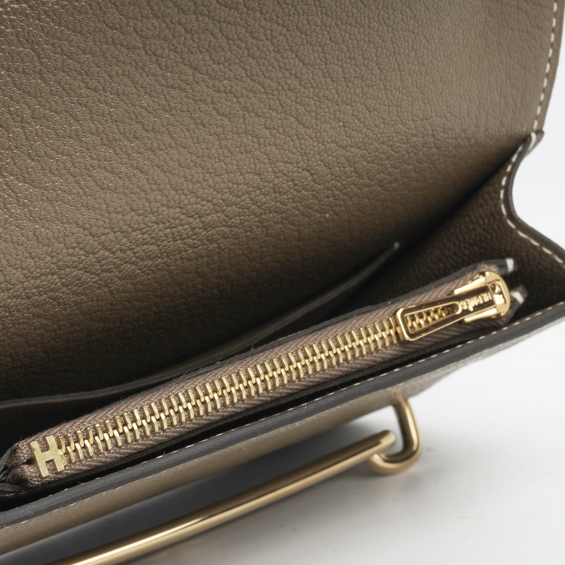 The Hermès Roulis Slim is the wallet version of the Roulis bag. This one is crafted from their Chevre leather featuring gold hardware. The beauty of this piece comes in the subtle details meticulously integrated into the design. The jewel clasp and structure of the bag seamlessly indicate the luxury of the brand and its timeless nature.