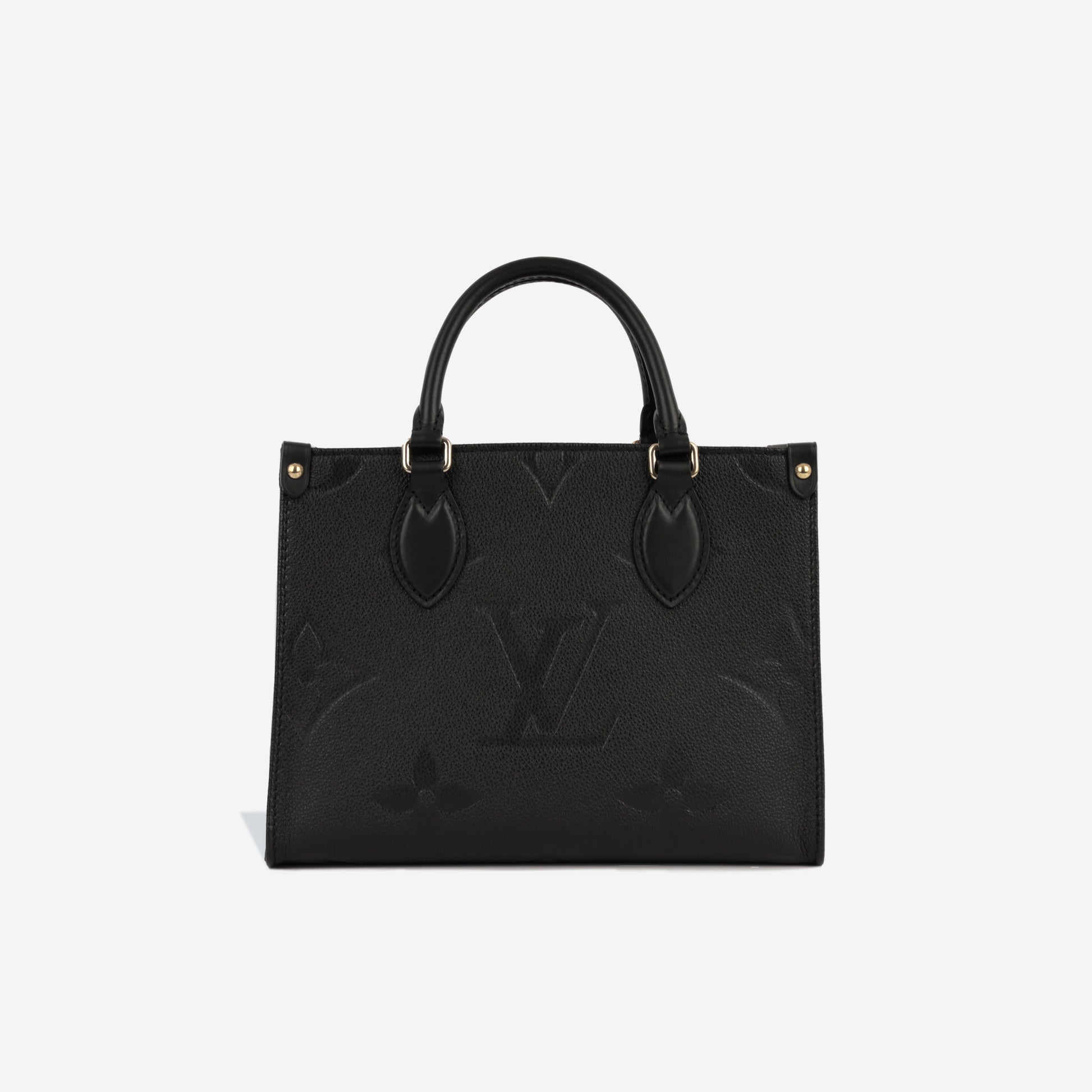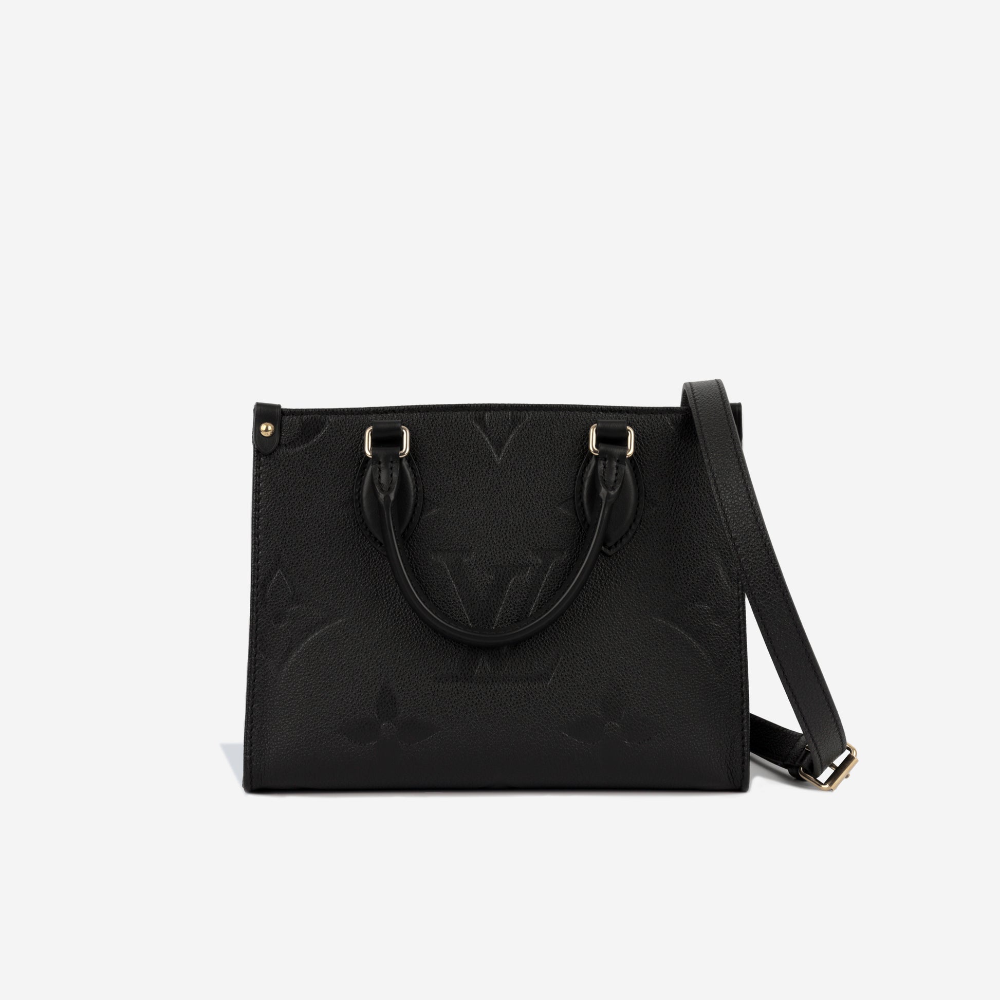 The Onthego is inspired by Louis Vuitton's iconic Sac Plat from 1968, crafted from black Empreinte leather which is embossed with the oversized classic monogram. The grained cow leather makes this the perfect day bag with enough space for all your daily essentials.