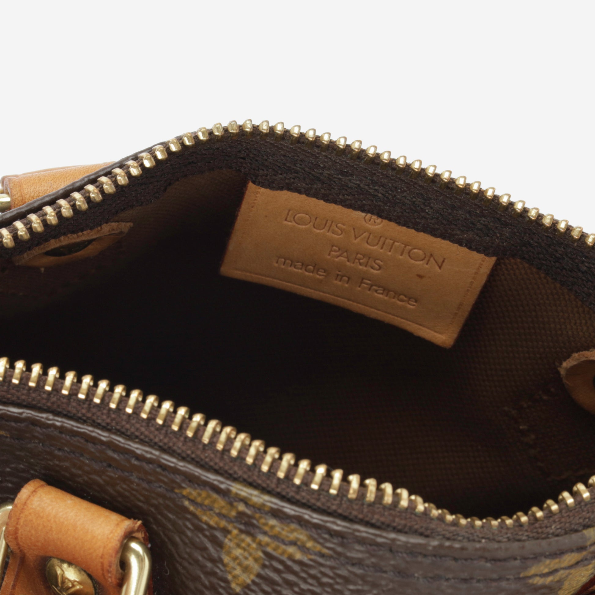 - Louis Vuitton embossed leather logo tag