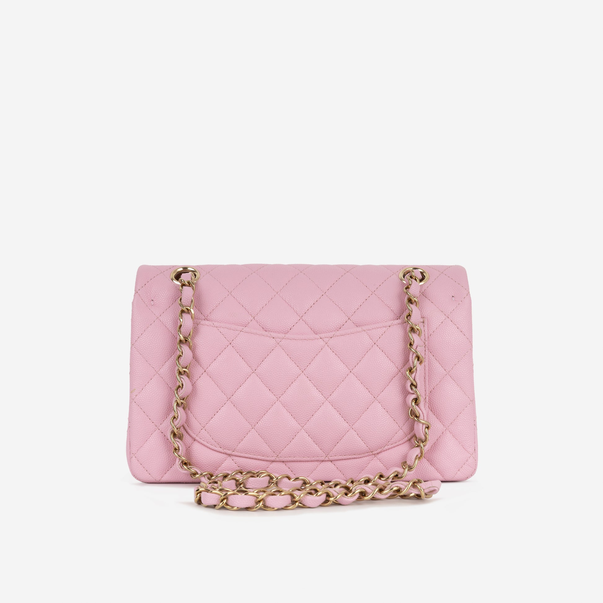 - Pink quilted caviar leather