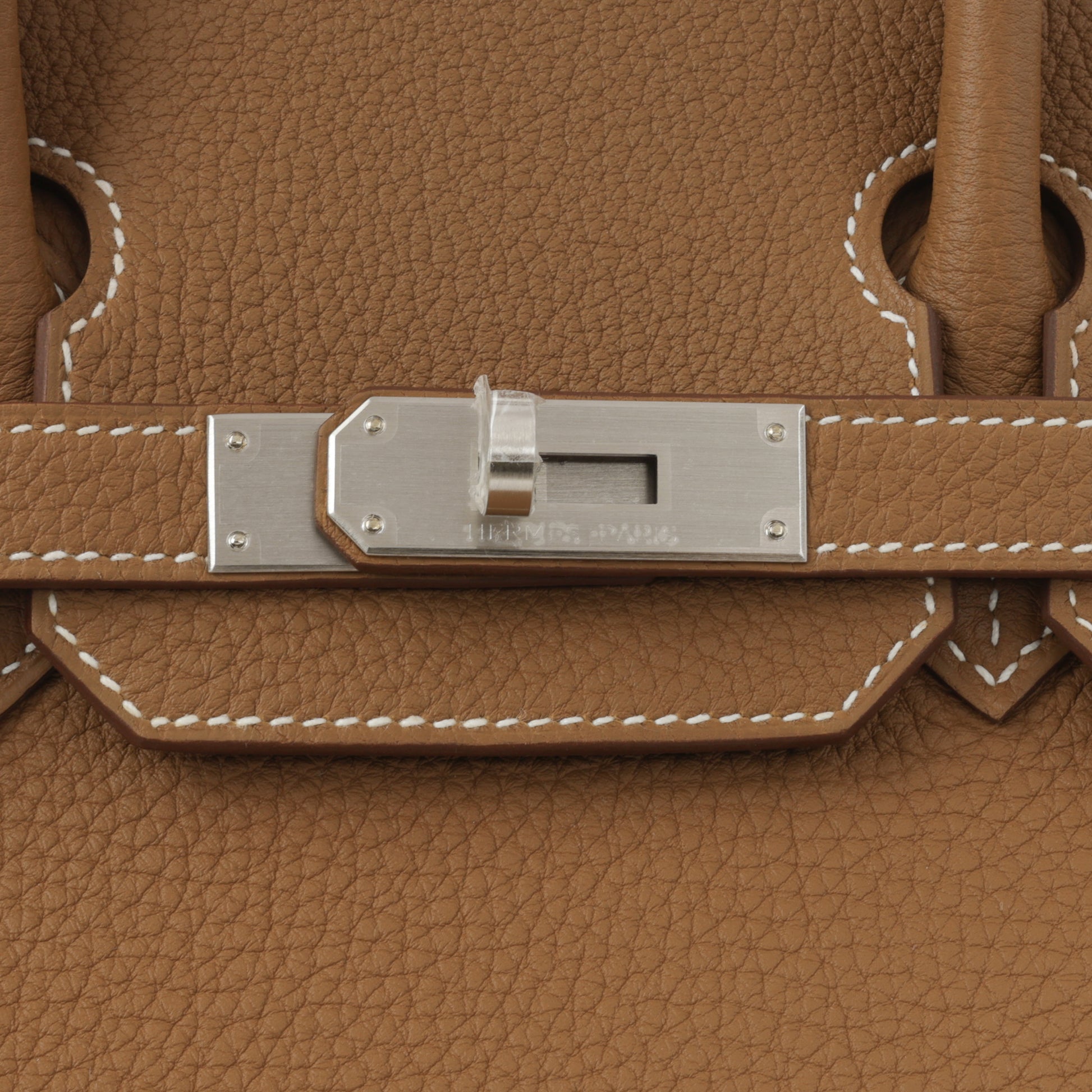 The Hermès Birkin 30 in Gold Togo leather with Brushed Palladium Hardware is a store-fresh, highly coveted release - now available without a special order. Traditionally reserved for Hermès HSS clients, brushed palladium hardware is a newly released offering in standard collections, making this configuration extremely desirable and hard to source.
