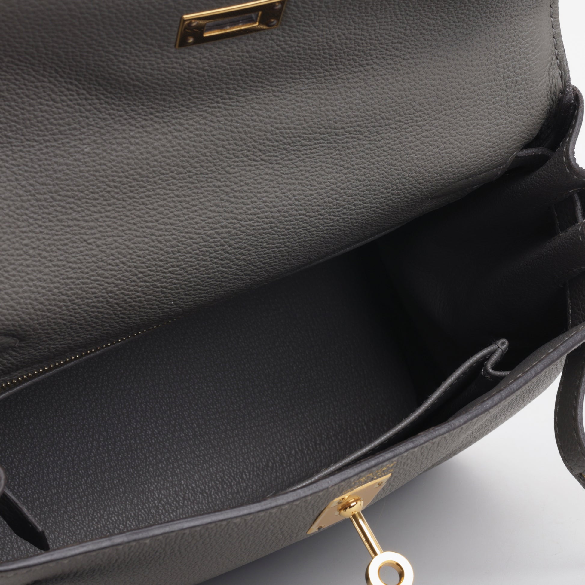 Refined, elegant, and eternally chic — the Hermès Kelly 25 Bag in Gris Meyer Togo leather with gold hardware is the epitome of understated luxury. This modern neutral shade, paired with the rich glow of gold accents, makes the Kelly 25 a versatile statement piece for every sophisticated wardrobe.