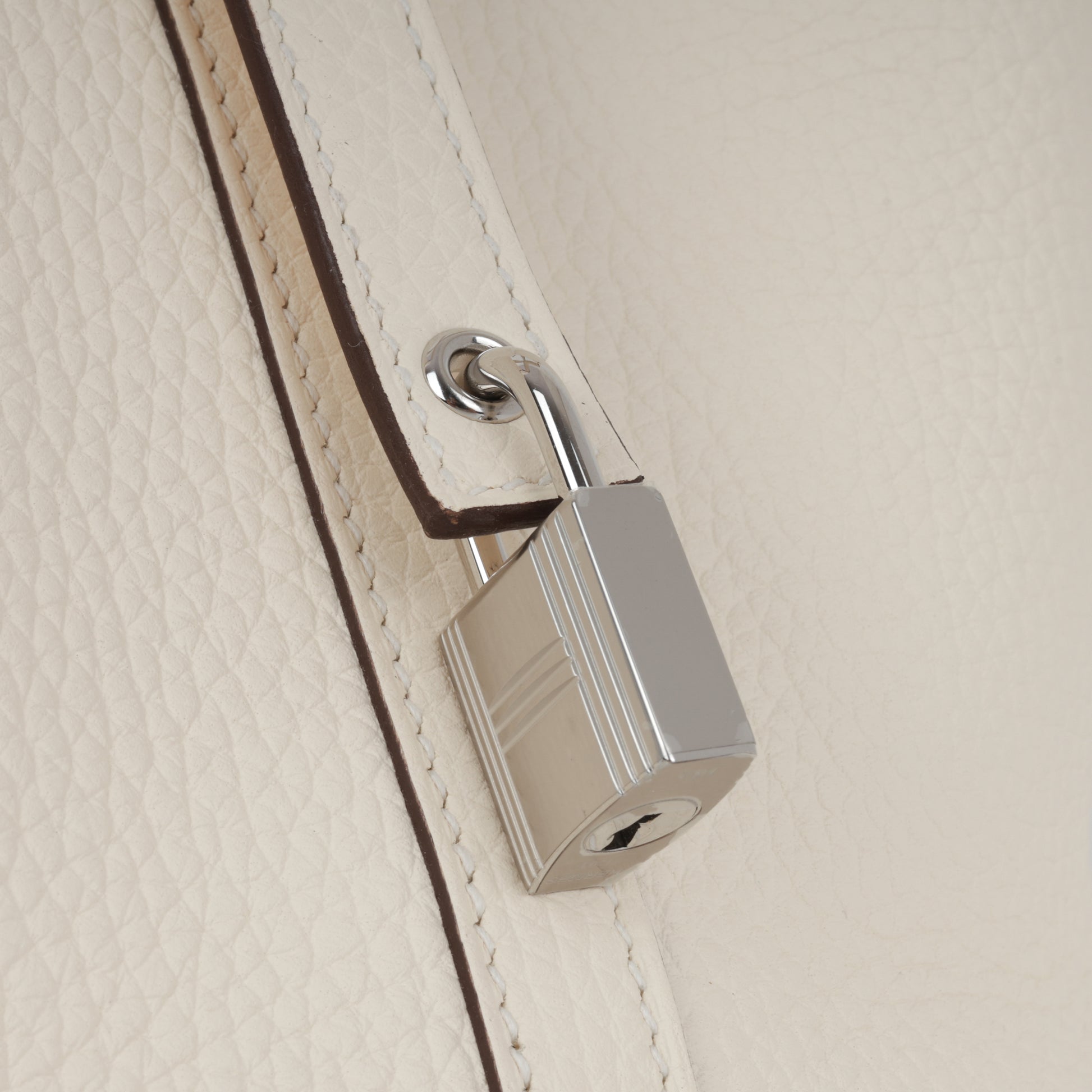 Crafted from grained Clemence leather, the bag features a soft, slouchy structure with a subtle texture. Perfect for casual, day-to-day use. The Nata colour, a creamy off-white with warm undertones, is refined and versatile, beautifully complemented by the cool sheen of palladium hardware for a fresh, modern finish.