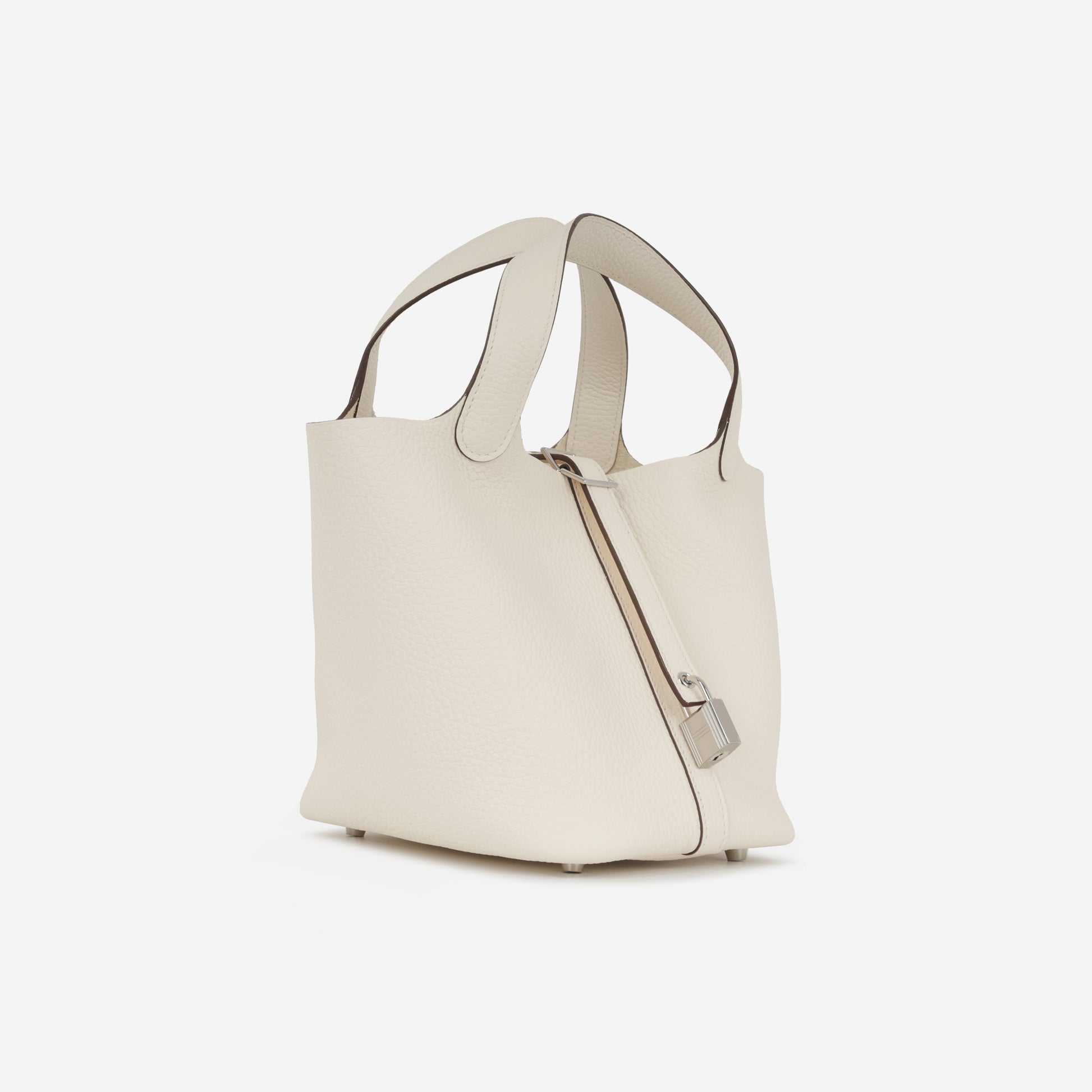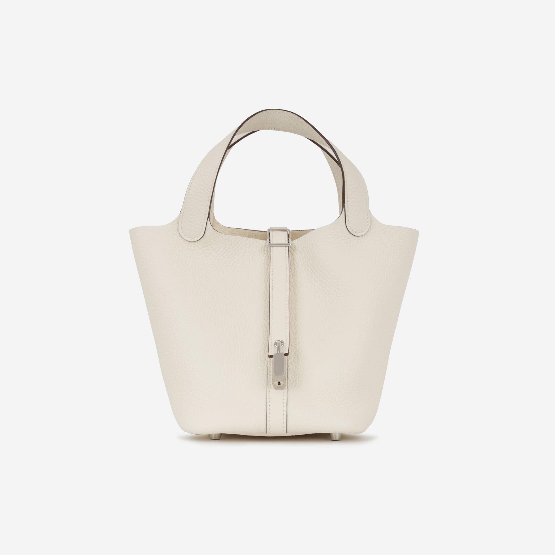 Compact yet spacious enough for daily essentials, the Picotin 18 is lightweight, easy to carry, and fastens securely with a leather tab and the signature Hermès padlock.