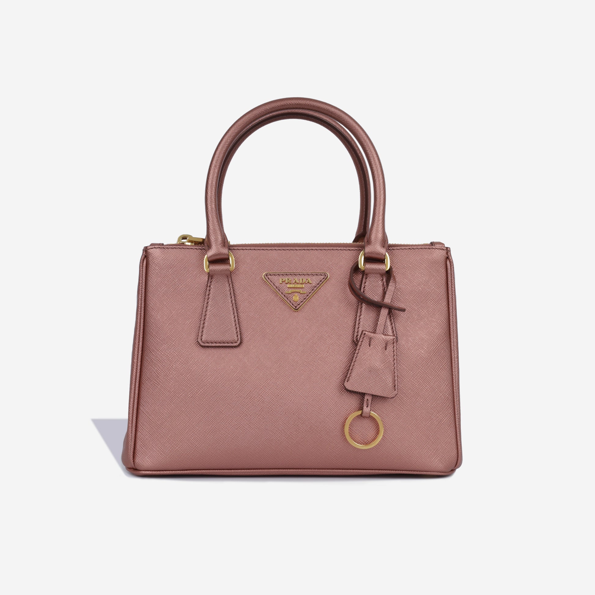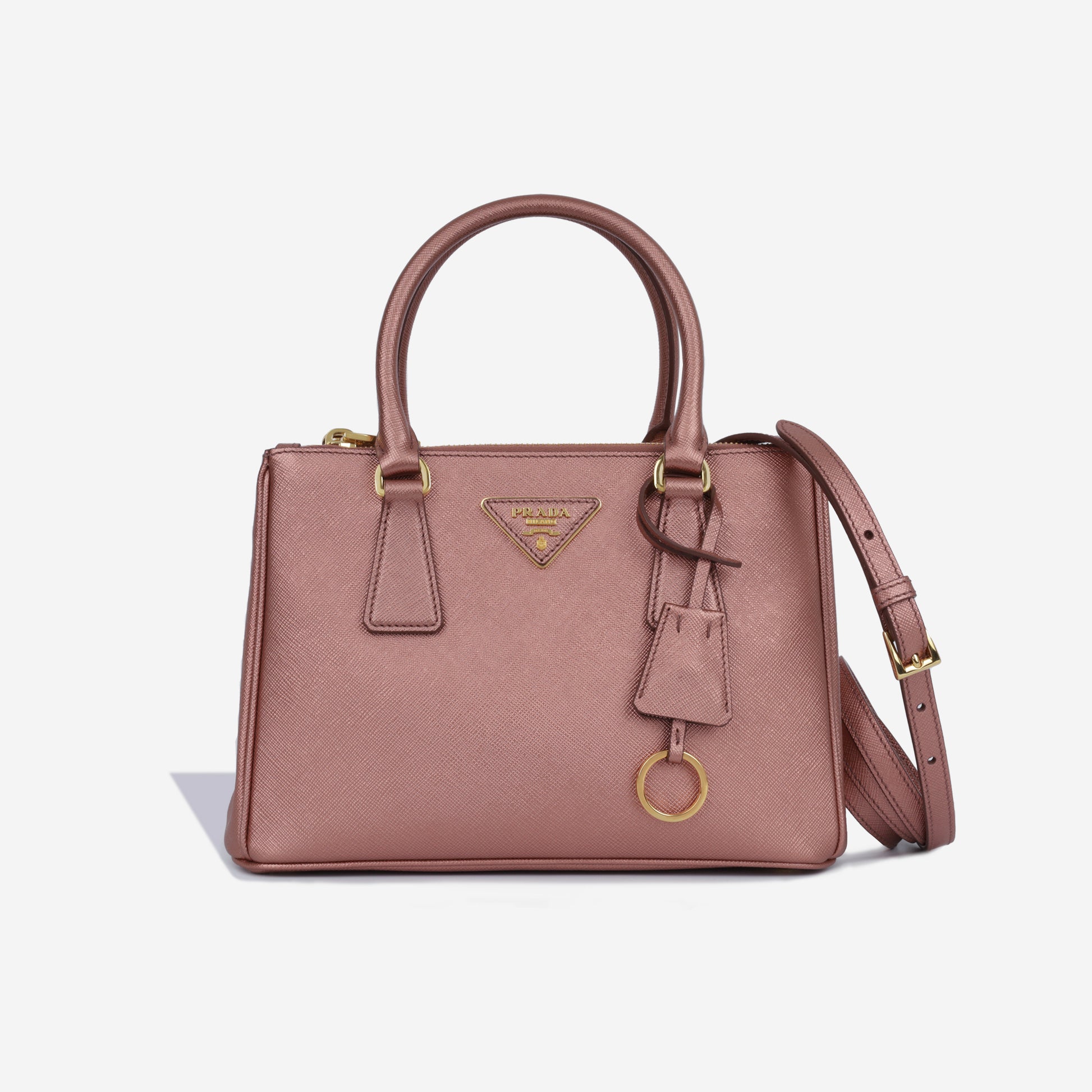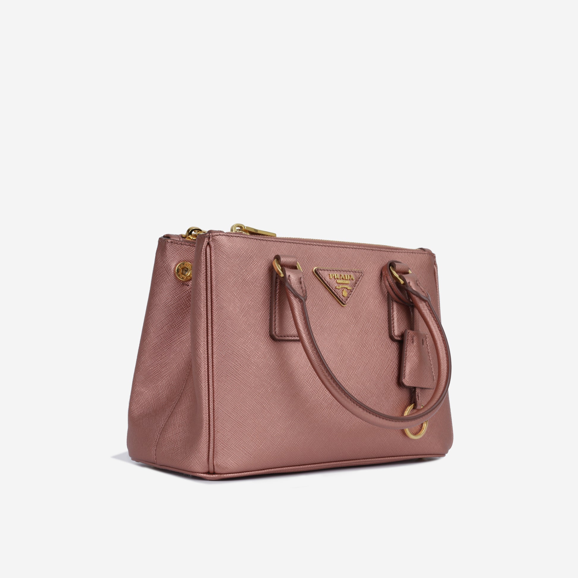For a compact and chic city accessory, this Prada Galleria is the perfect choice. Although a small bag, it is large enough to hold all of your essentials and comes complete with a detachable shoulder strap, making it an ideal choice for a day to evening bag. Crafted out of luxurious metallic pink saffiano leather, and complete with gold hardware, this bag displays the Italian craftsmanship the brand is known for.