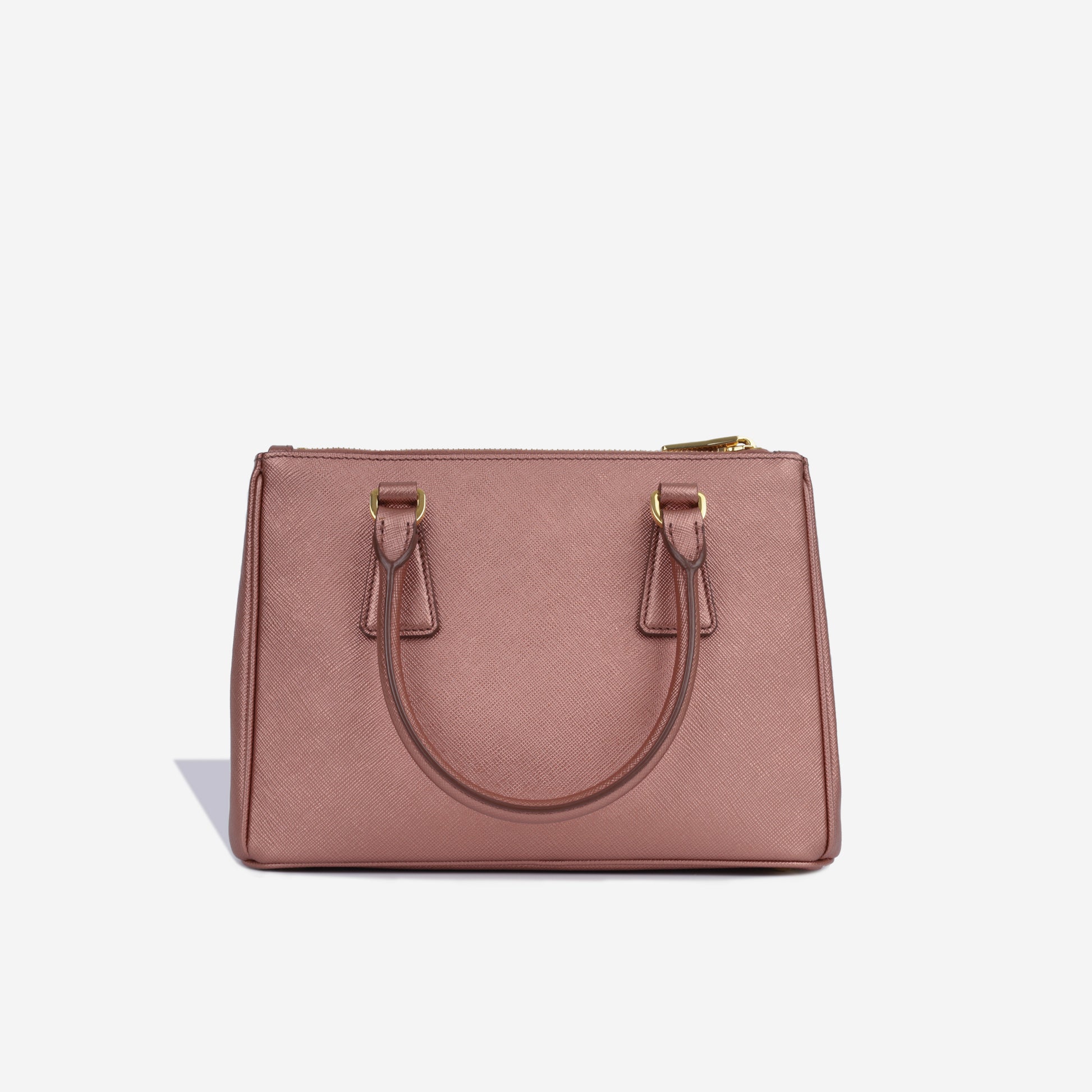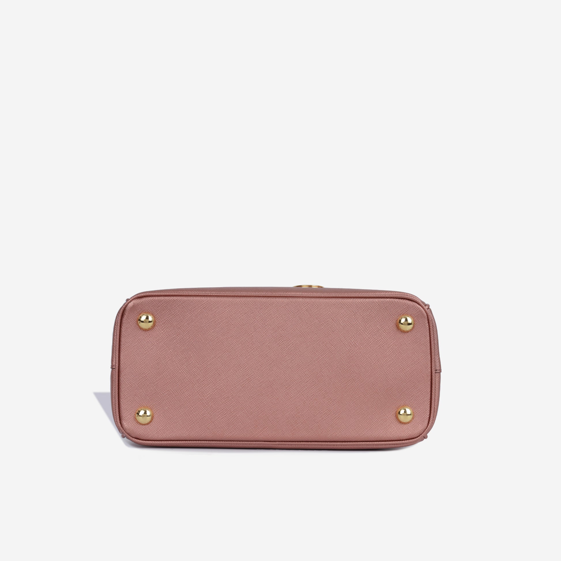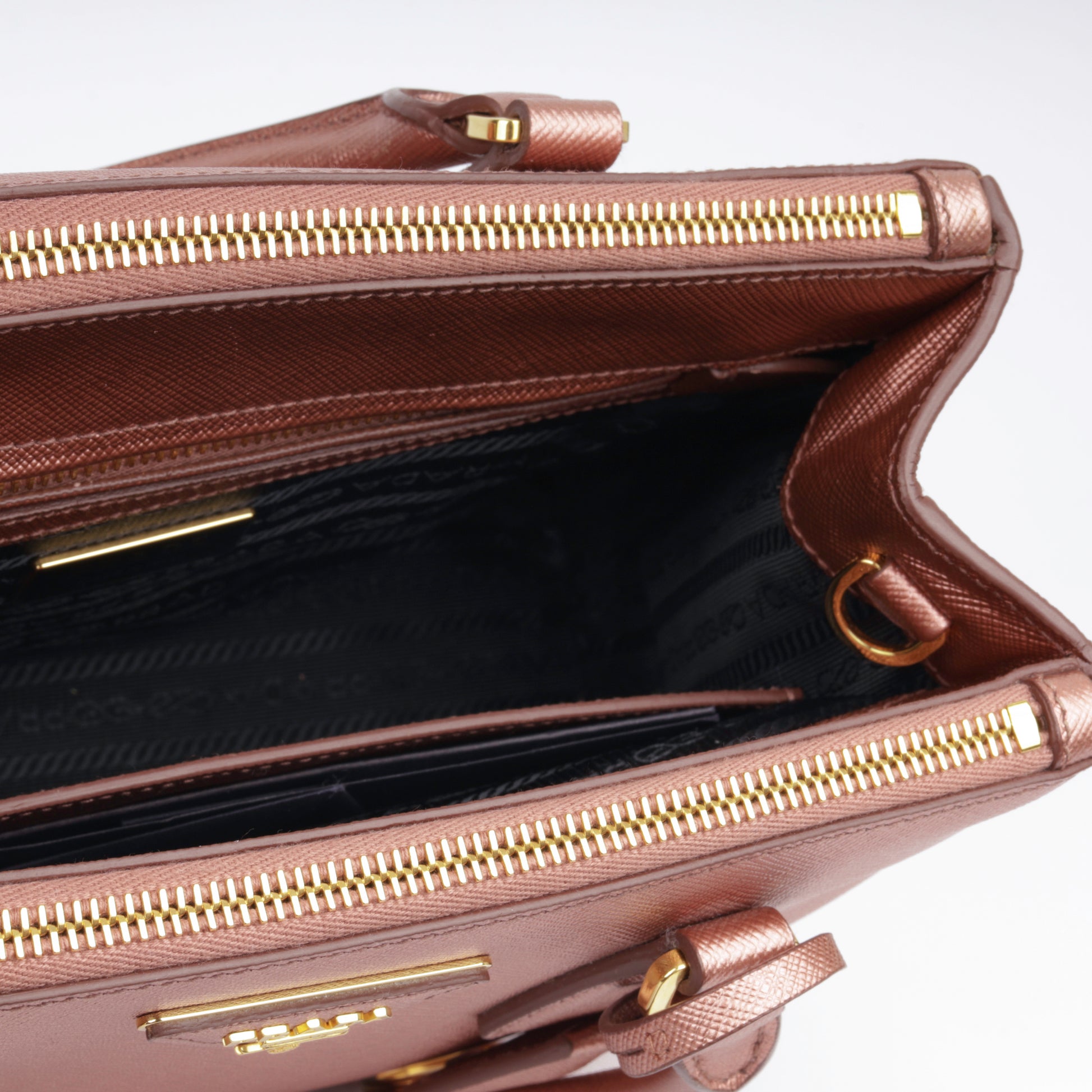 For a compact and chic city accessory, this Prada Galleria is the perfect choice. Although a small bag, it is large enough to hold all of your essentials and comes complete with a detachable shoulder strap, making it an ideal choice for a day to evening bag. Crafted out of luxurious metallic pink saffiano leather, and complete with gold hardware, this bag displays the Italian craftsmanship the brand is known for.