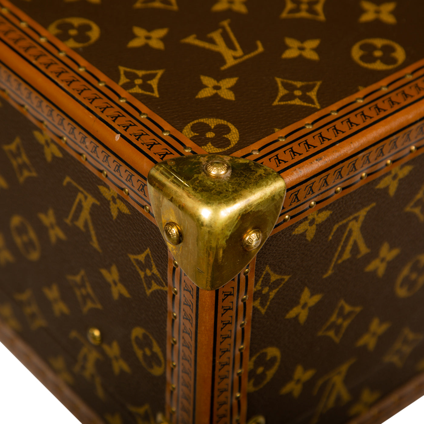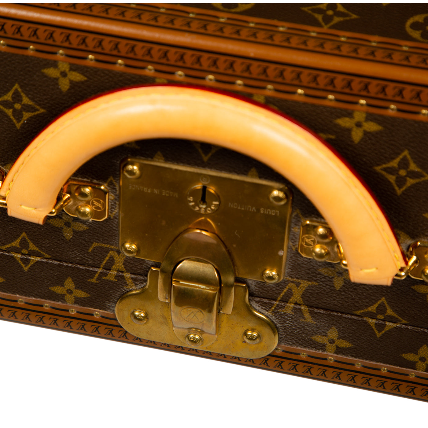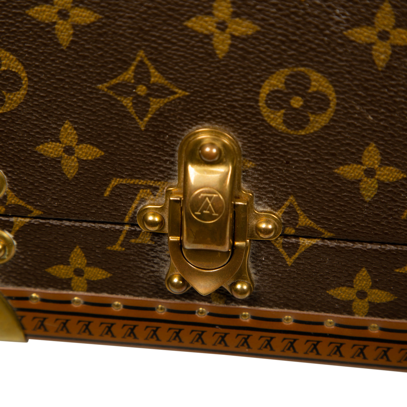 - Smooth brown leather trimming embossed with small LV monograms
