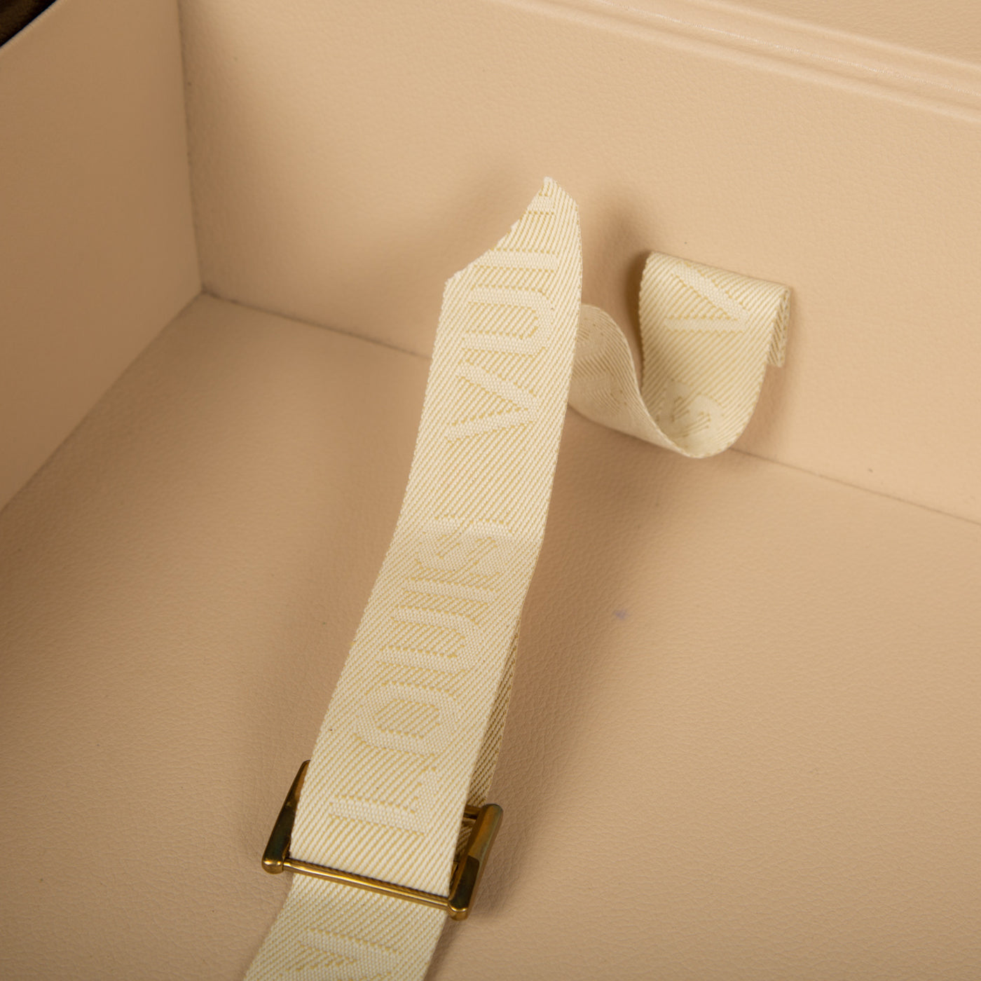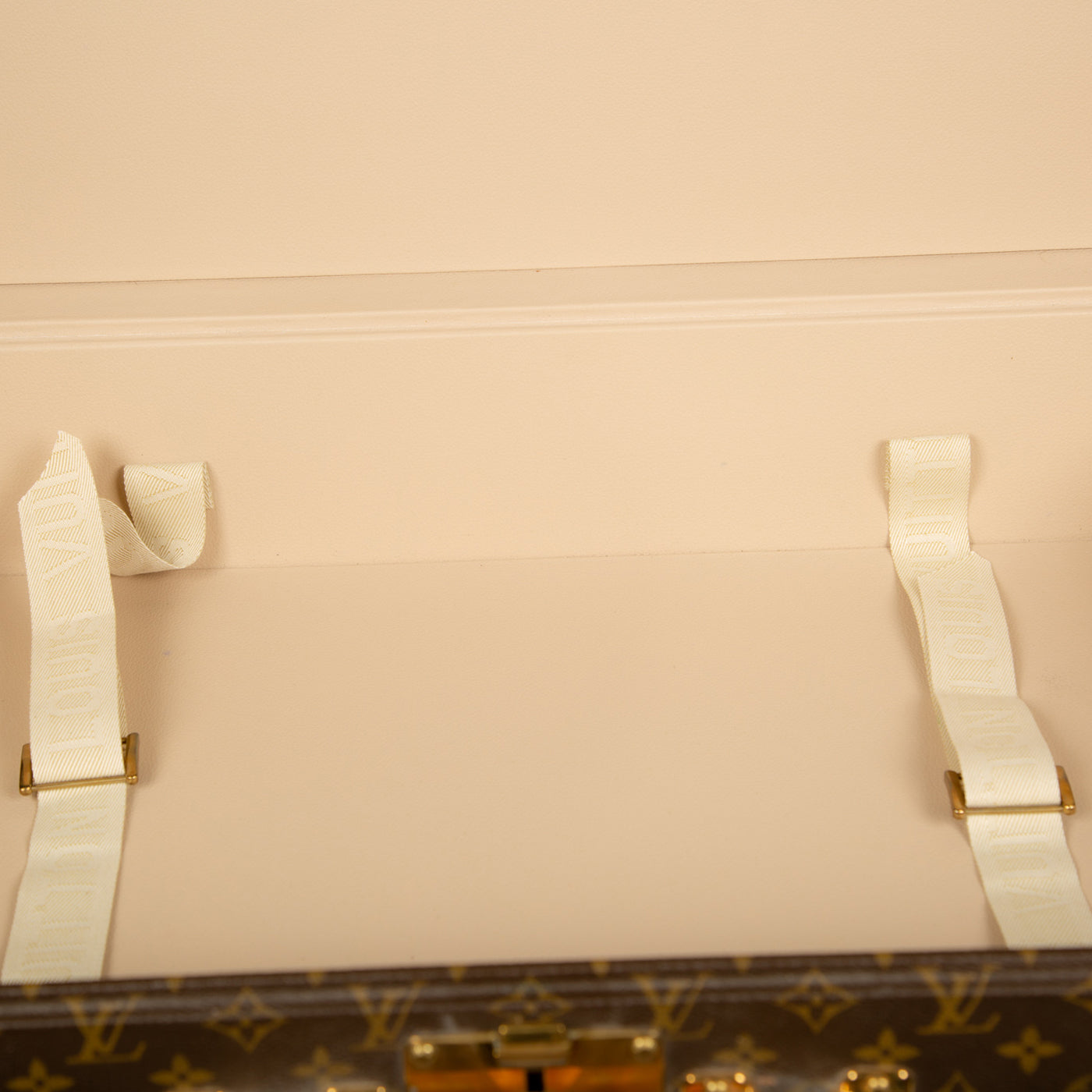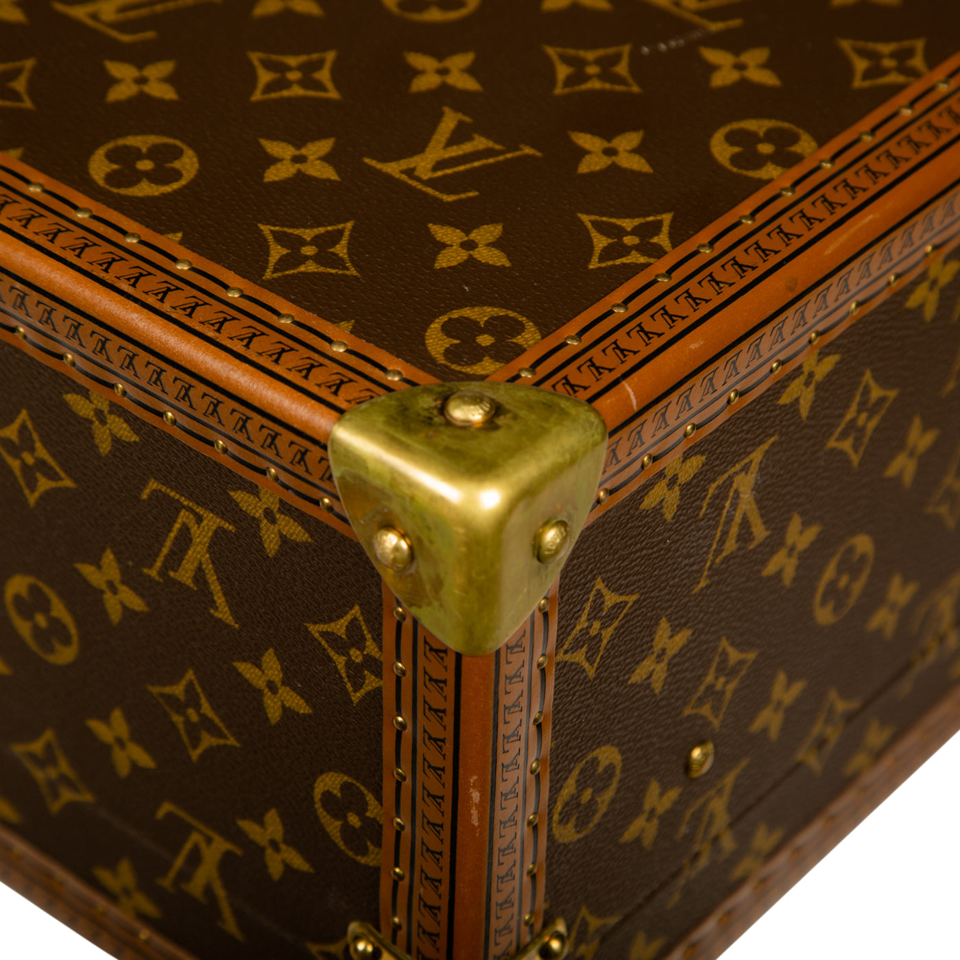 - Smooth brown leather trimming embossed with small LV monograms