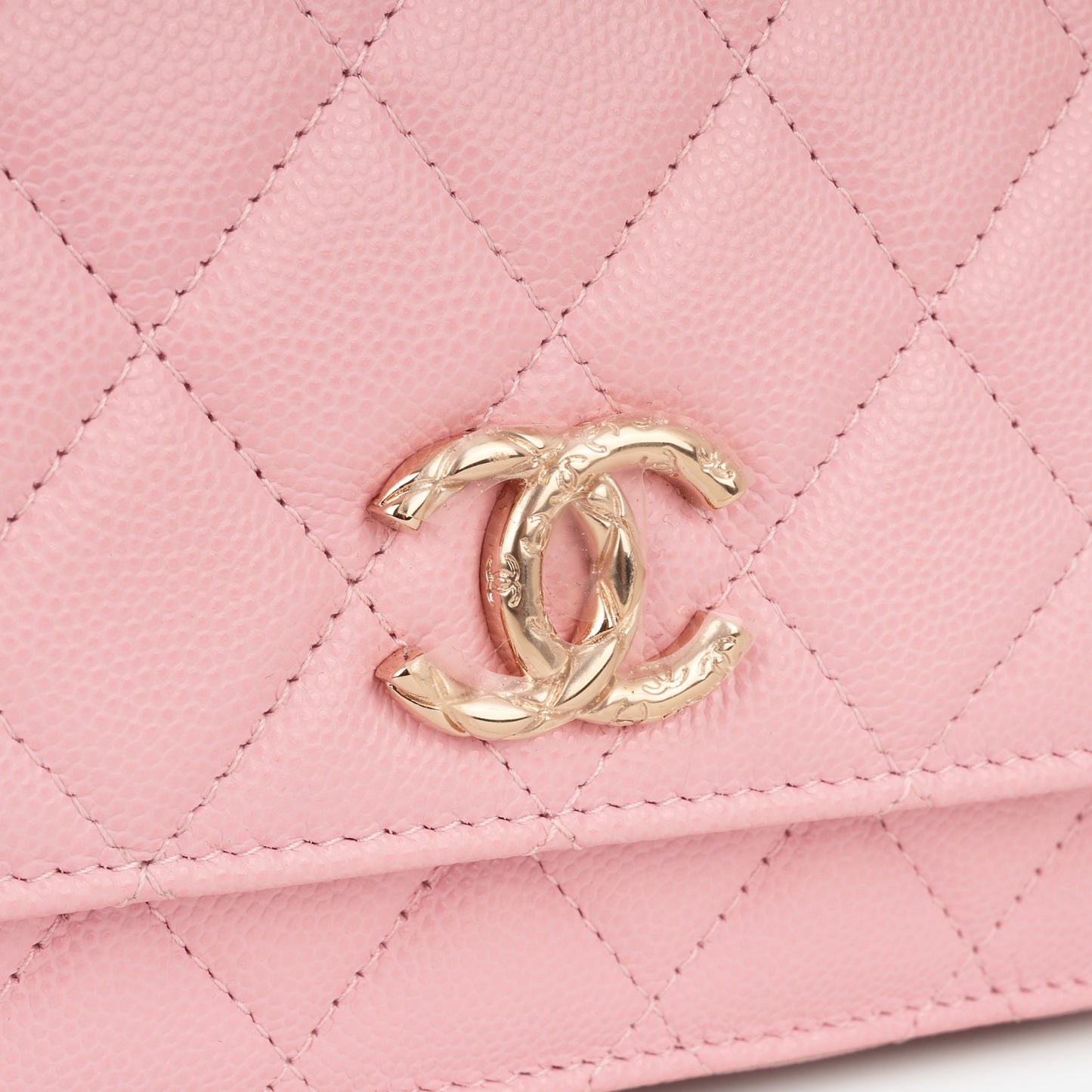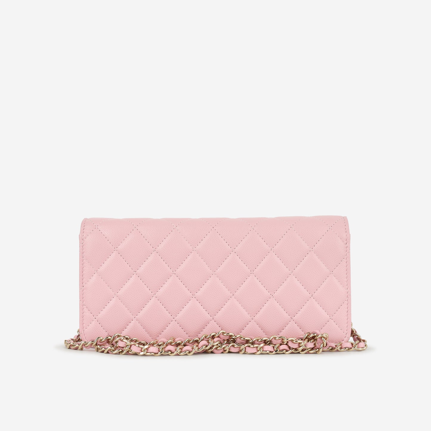 Add a touch of Parisian elegance to your wardrobe with this stunning Chanel East-West Clutch on Chain in a soft, feminine pink. Blending classic sophistication with modern versatility, this piece is perfect for day-to-night styling.