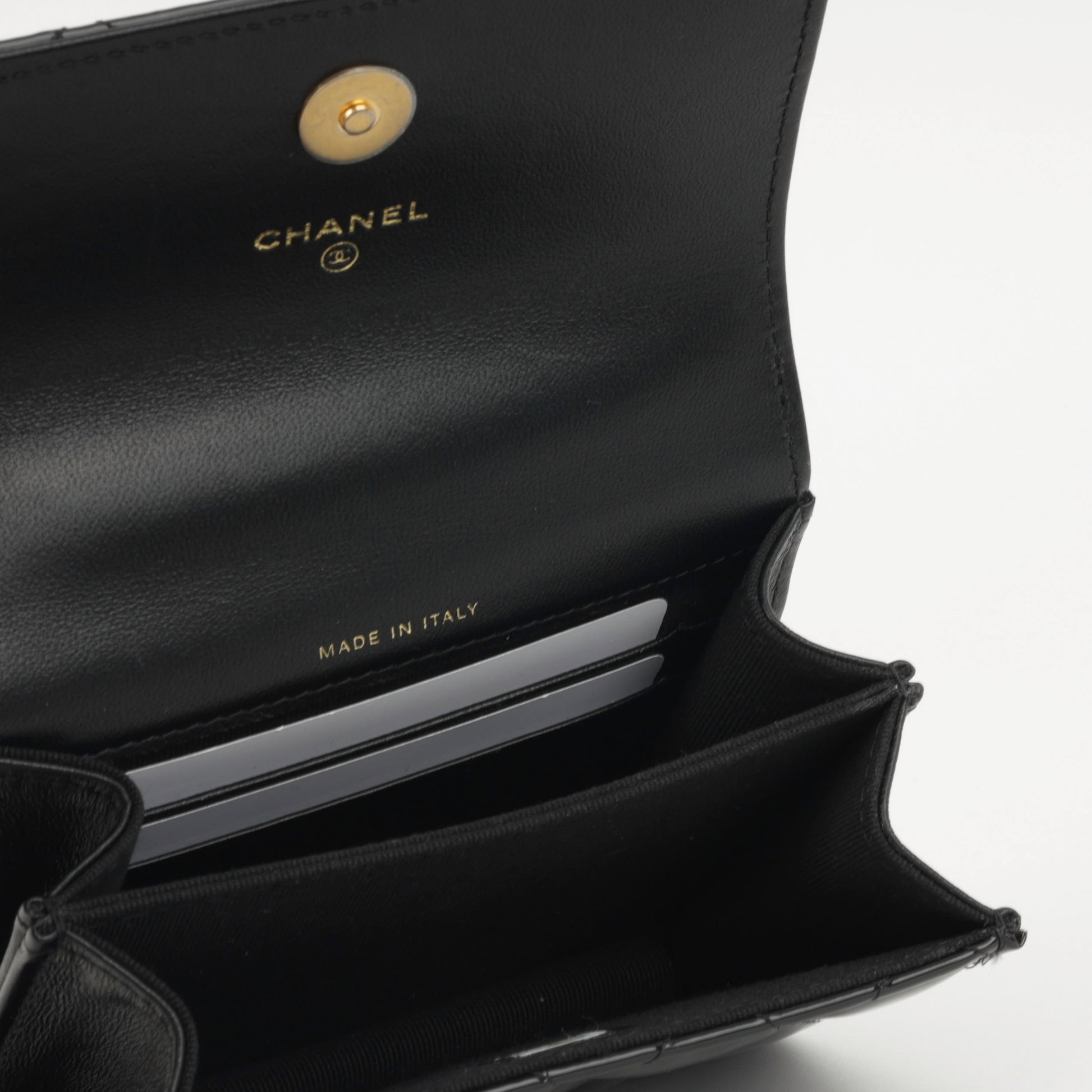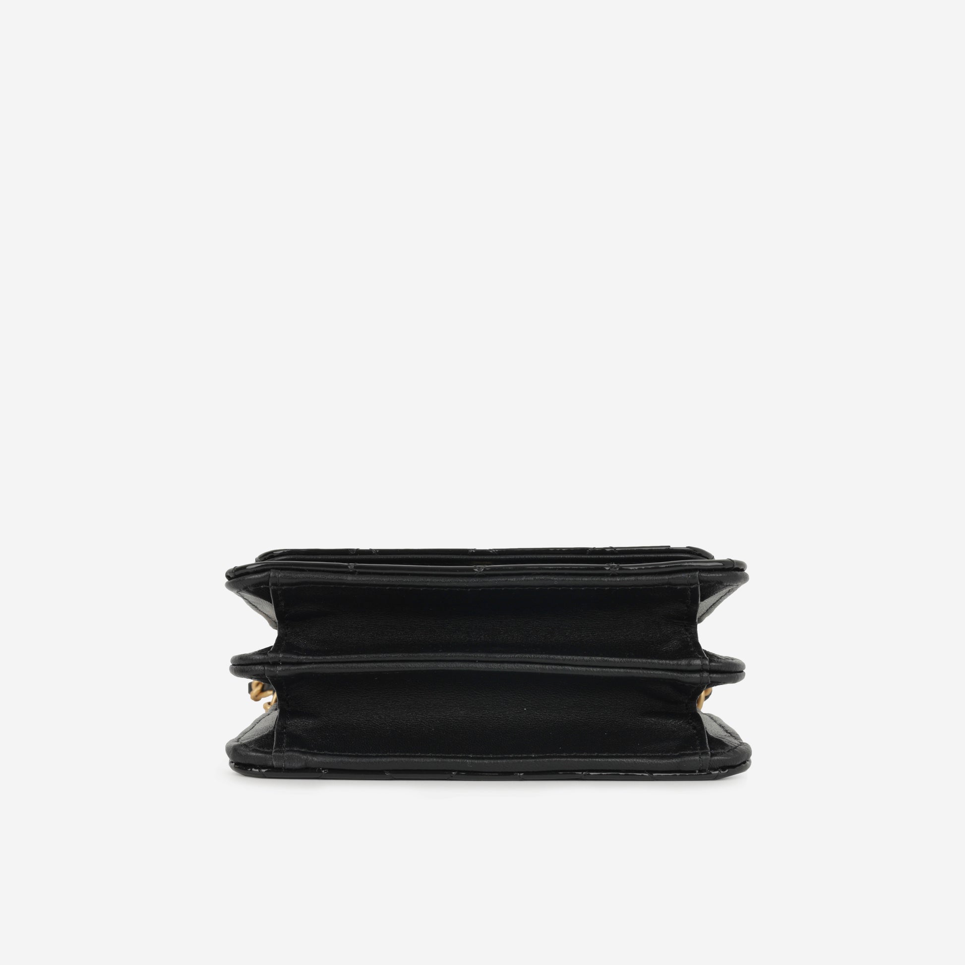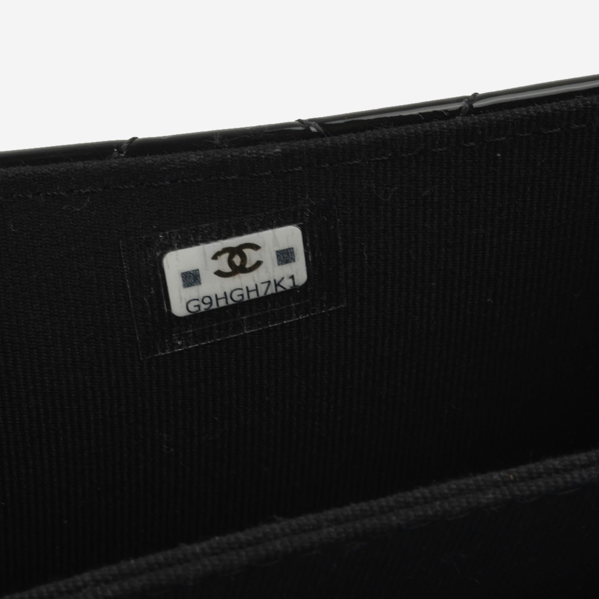 Chanel Micro Top Handle Clutch On Chain - Black Patent Calfskin | Gold Hardware