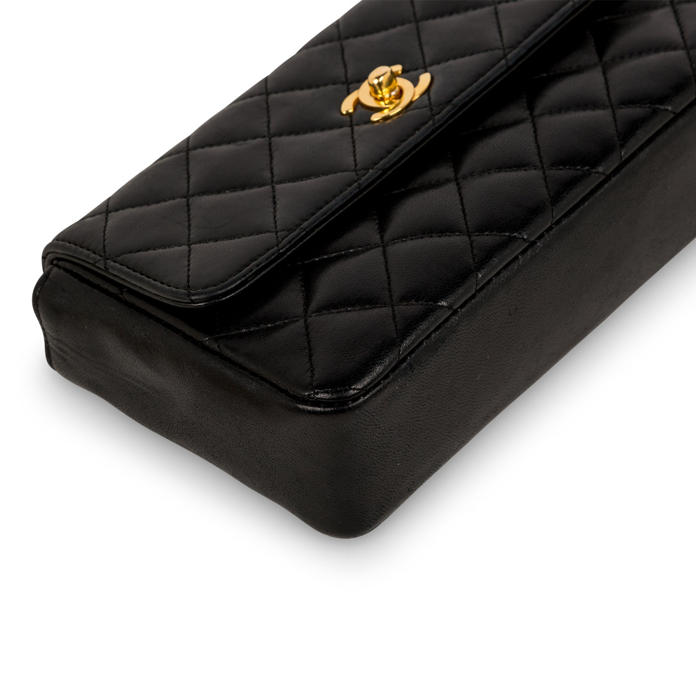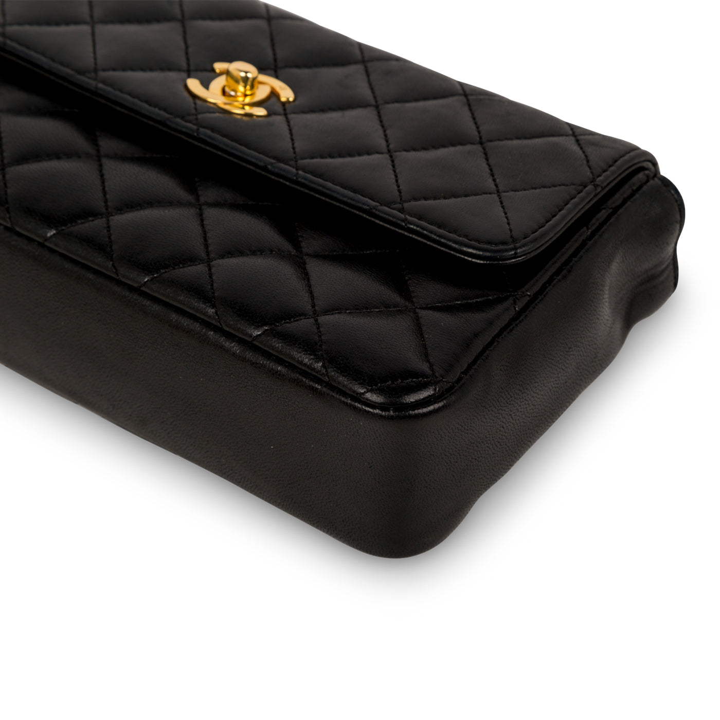 Ideal from day-to-night usage, the Chanel Vintage Mini Flap Bag is for perfect accessory to hold all your small essentials. An easy, efficient bag you don't have to think about, this vintage treasure is the perfect compliment to absolutely anything in your wardrobe. Crafted from smooth, black lambskin leather, this little vintage baby is a prime example of how Chanel never ceases to lose its value. A classic piece that will never go out of style, it's no wonder why Chanel will always remain at the top of the luxury food chain. A true must-have for any woman with a love for luxury and a soft spot for vintage pieces, this stunning little gem is a well-worthy addition to any handbag collection.