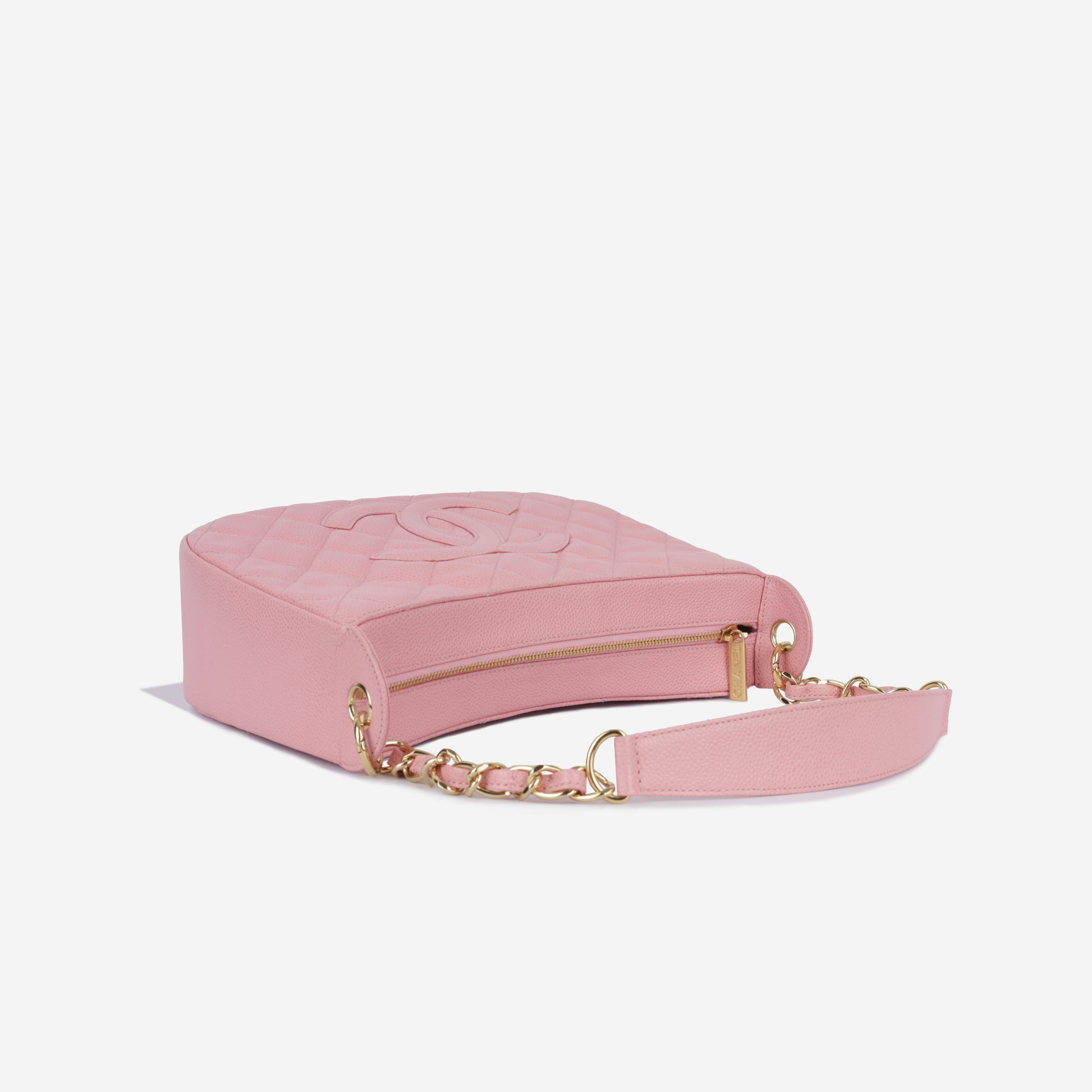 - Pink quilted caviar leather