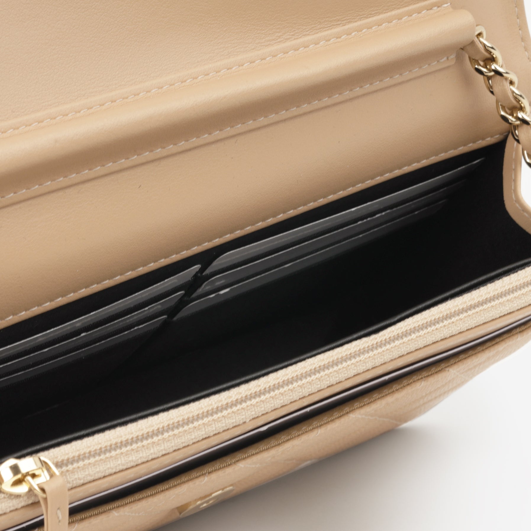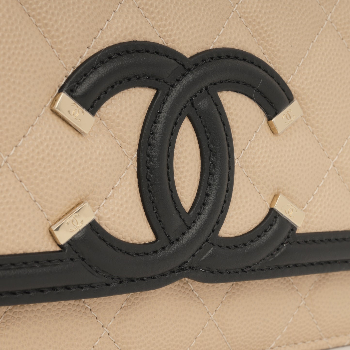 Chanel Filigree Wallet on Chain - Beige / Black Caviar | Champagne Gold Hardware