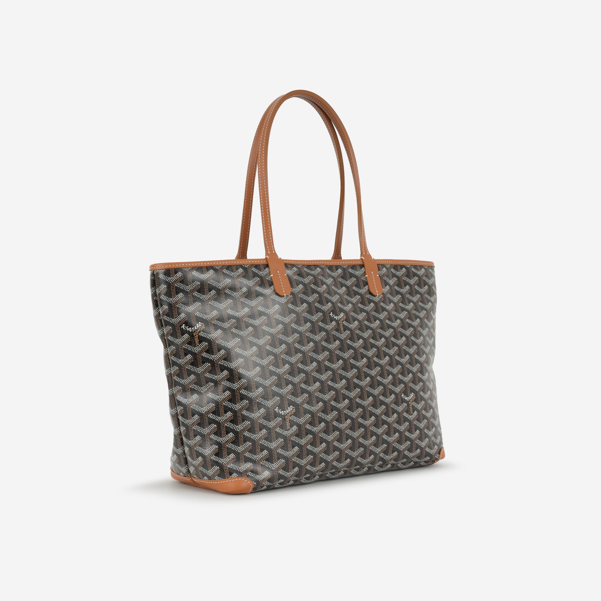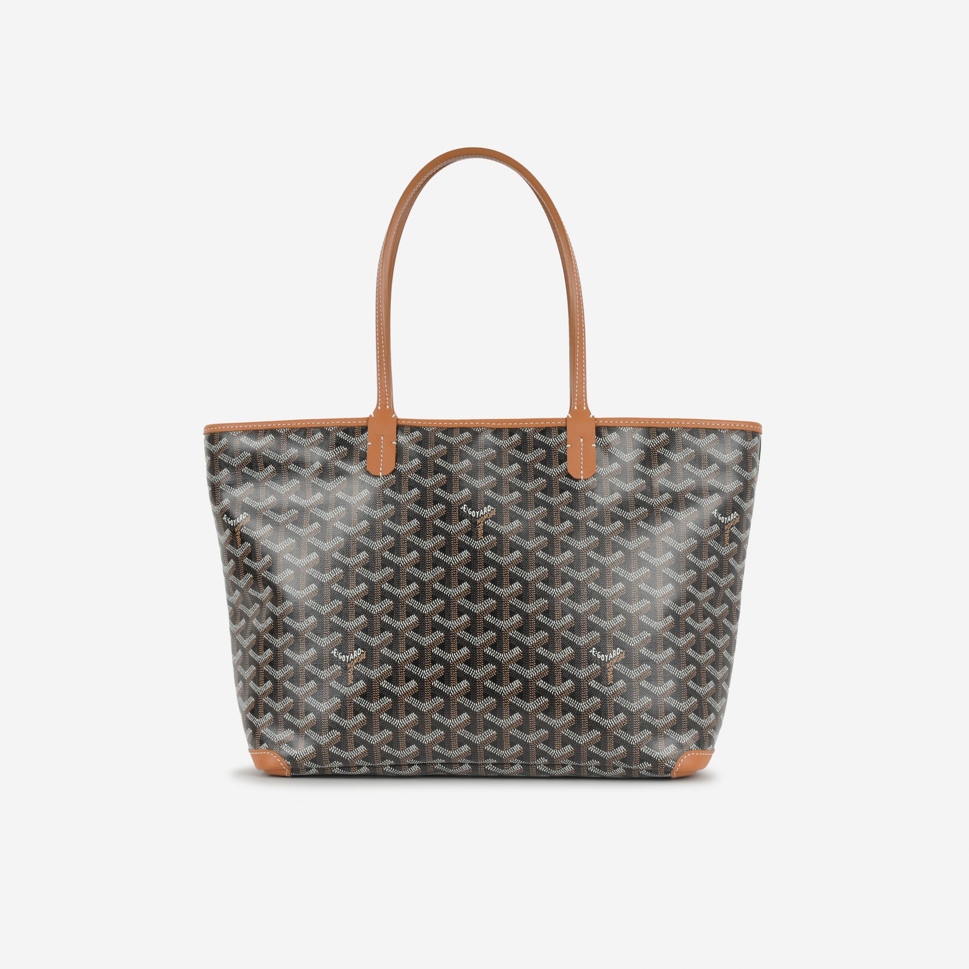 The Artois PM is Goyard’s structured interpretation of the classic tote. Refined, versatile, and designed for everyday elegance. Crafted in the Maison’s iconic black Goyardine canvas with contrasting tan Chevroches calfskin trim, this compact tote is a timeless staple that transitions seamlessly from day to evening.