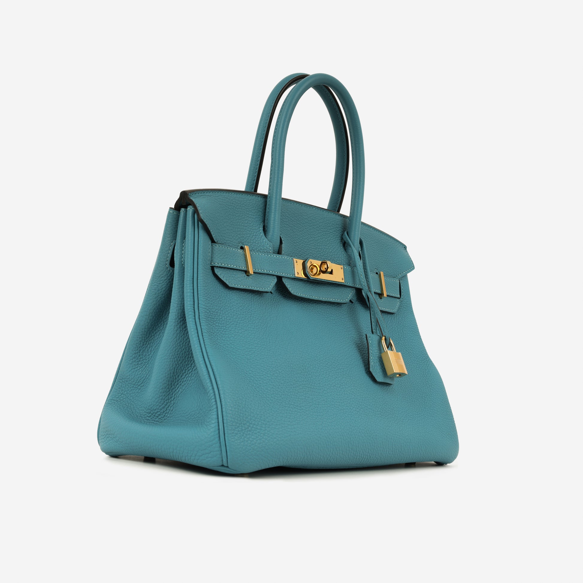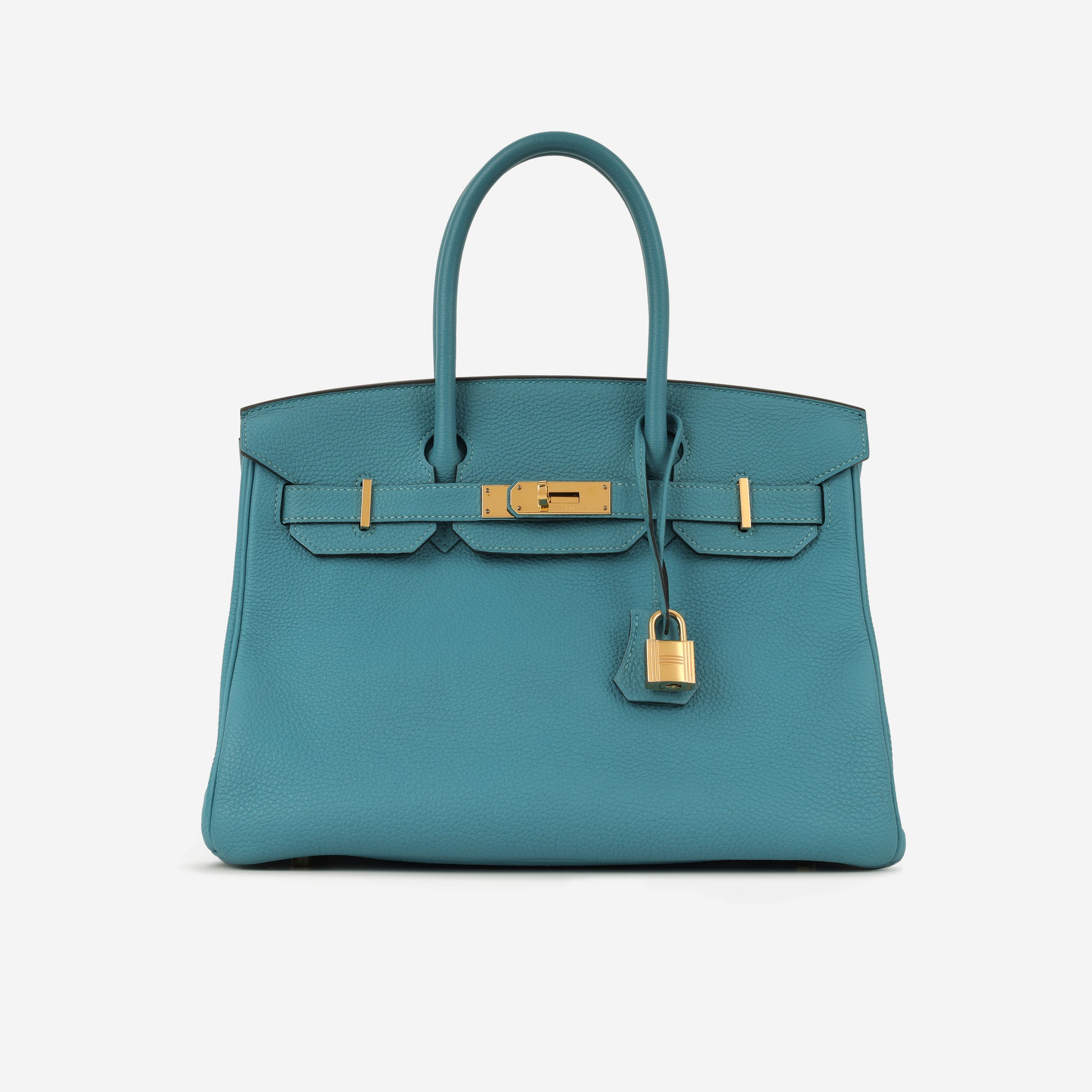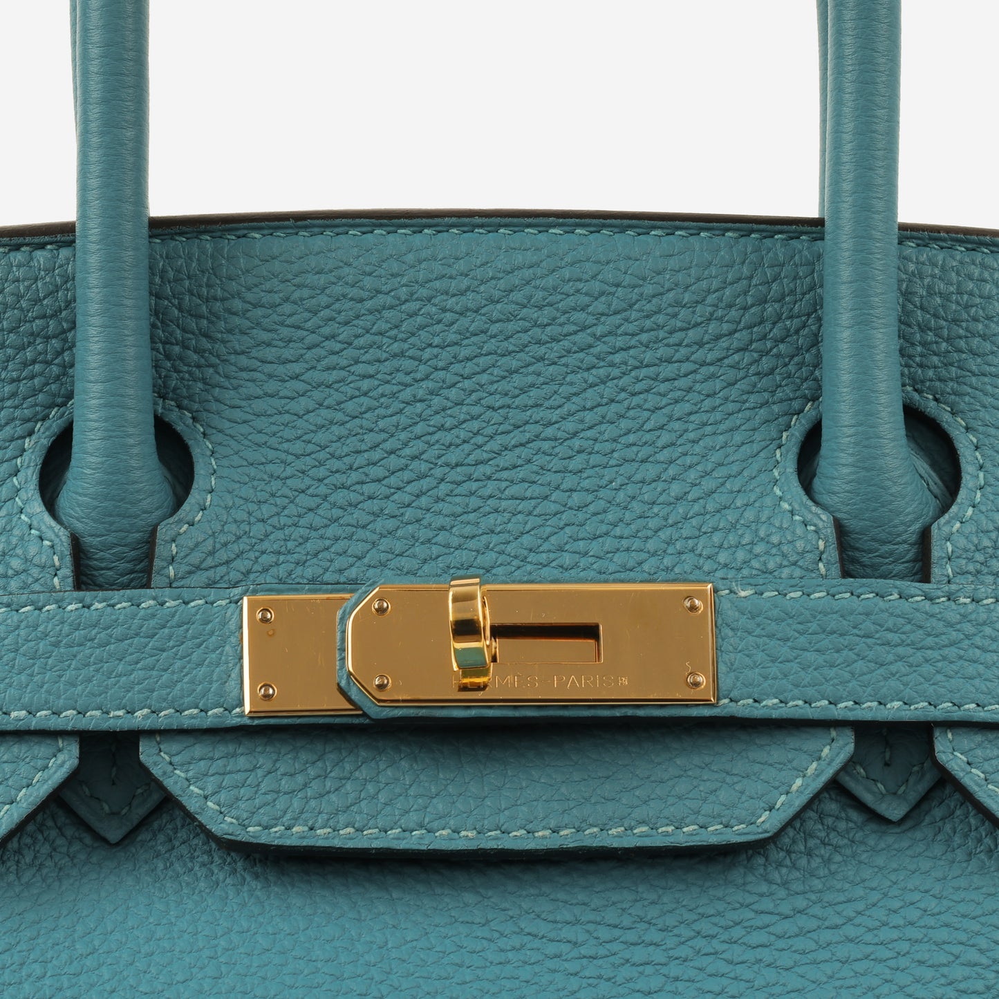 The Hermès Birkin 30 in Turquoise Togo leather with Gold hardware is available now. No waitlist. Made from durable grained Togo leather, it offers structure and timeless style. The vibrant Turquoise shade adds a bold, elegant touch, beautifully paired with sleek Palladium hardware. Authenticated and shipped from London’s trusted luxury reseller. Ready for immediate delivery.