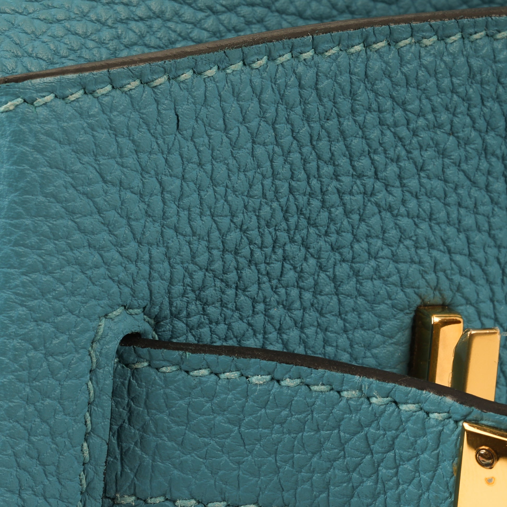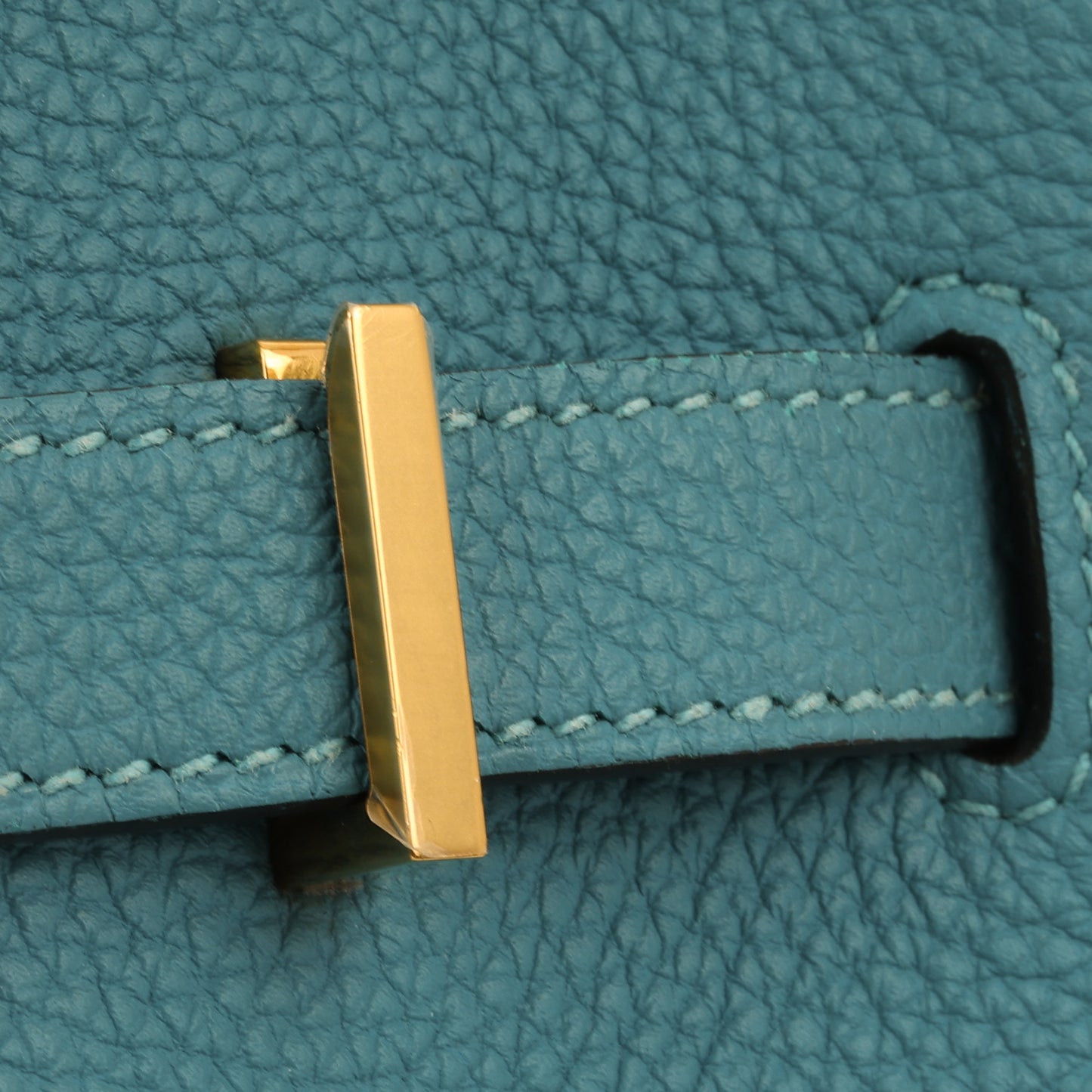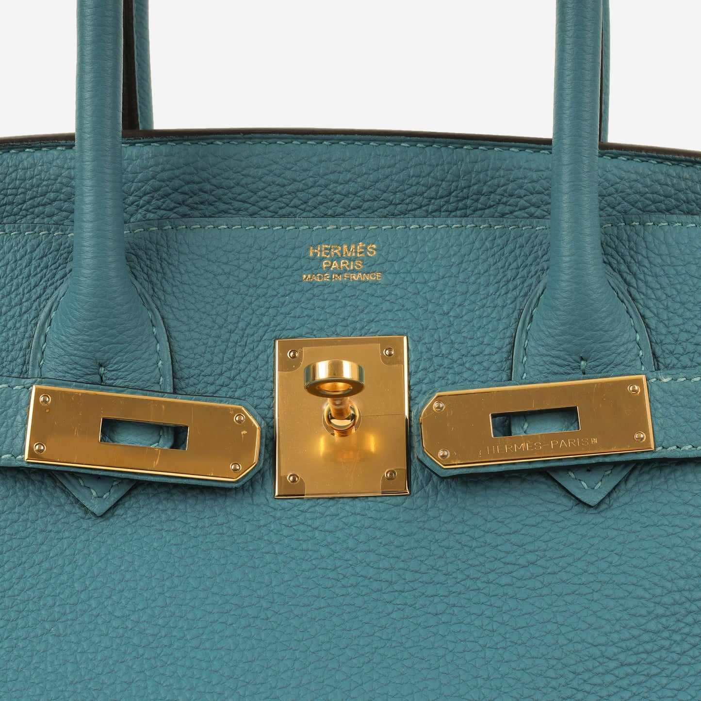 The Hermès Birkin 30 in Turquoise Togo leather with Gold hardware is available now. No waitlist. Made from durable grained Togo leather, it offers structure and timeless style. The vibrant Turquoise shade adds a bold, elegant touch, beautifully paired with sleek Palladium hardware. Authenticated and shipped from London’s trusted luxury reseller. Ready for immediate delivery.