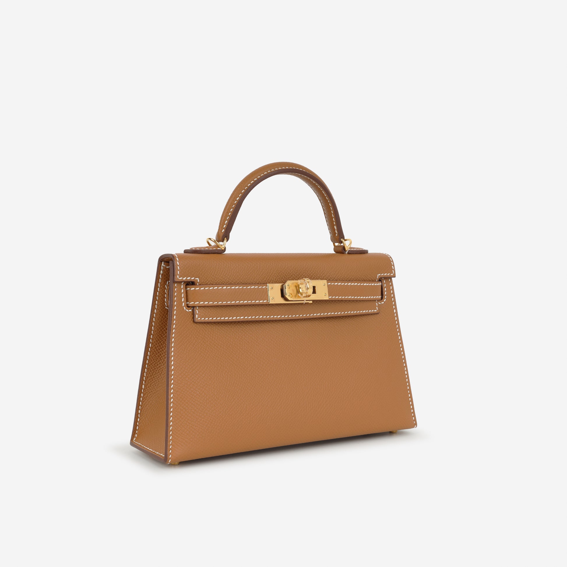 The coveted Hermès Mini Kelly in 20cm is available now, no waitlist, no delays. This authentic, iconic handbag is expertly crafted in classic gold Epsom leather with contrast stitching and gold hardware, offering timeless elegance and rarity from London’s most trusted resale boutique with authenticity guaranteed.