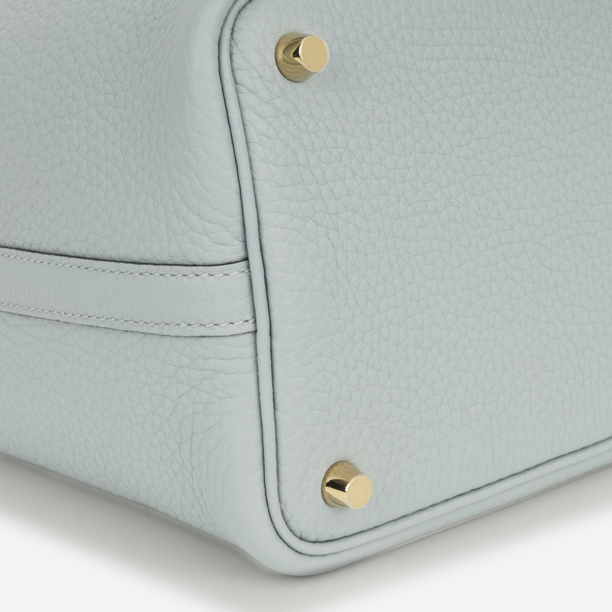This edition is crafted in Gris Pantin Clemence leather, a soft and supple calfskin known for its casual slouch and luxurious hand feel. Paired with Permabrass hardware, the Picotin 18 exudes quiet sophistication while remaining effortlessly versatile.