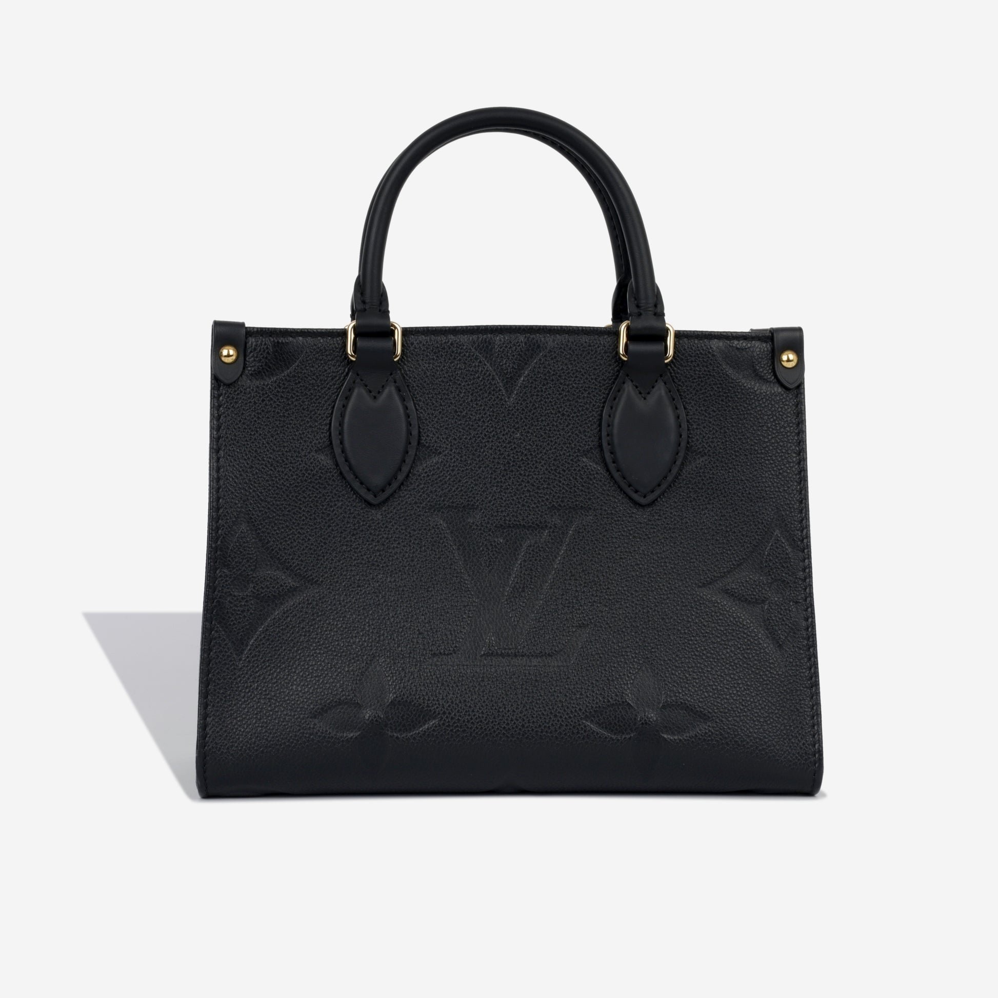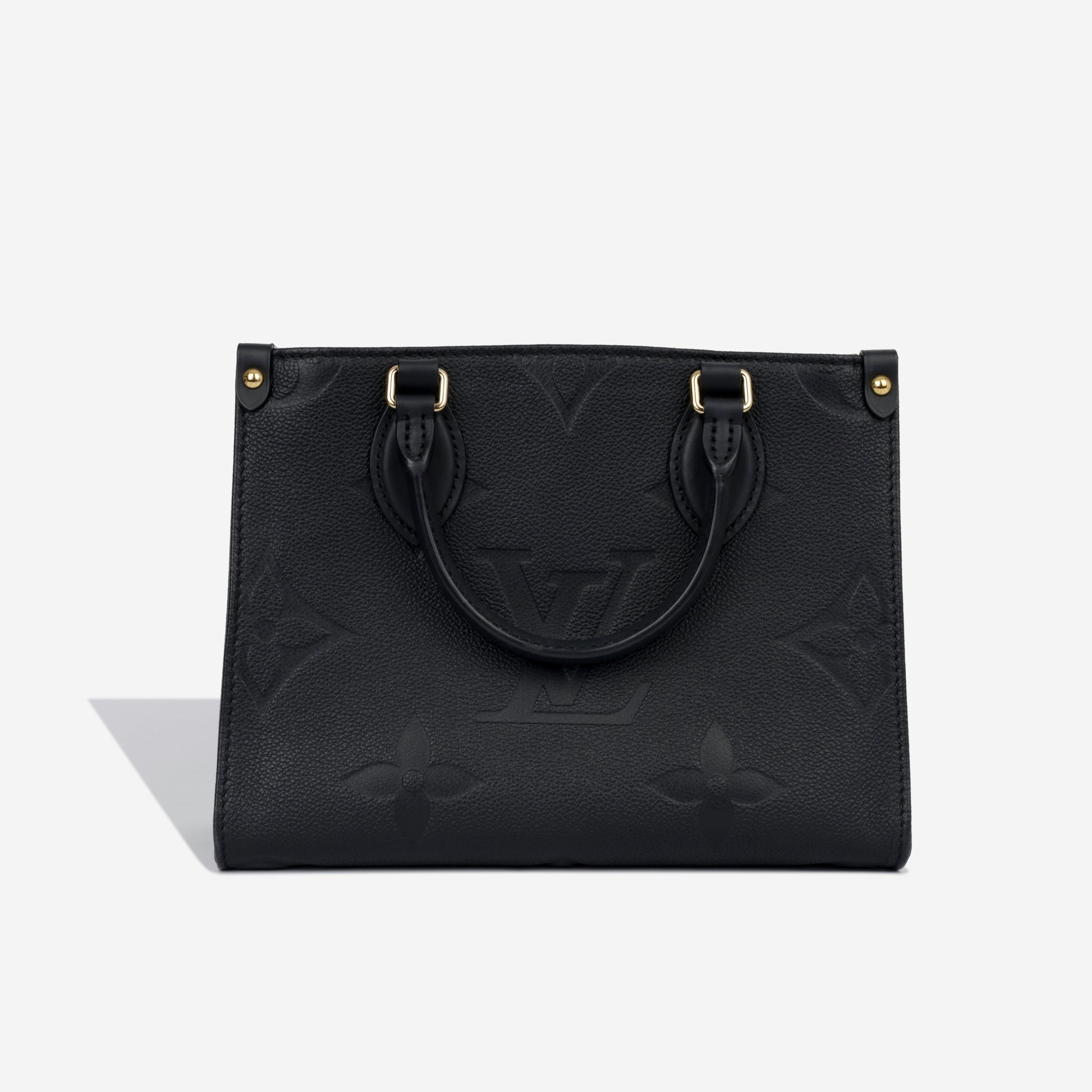 The Onthego is inspired by Louis Vuitton's iconic Sac Plat from 1968, crafted from black Empreinte leather which is embossed with the oversized classic monogram. The grained cow leather makes this the perfect day bag with enough space for all your daily essentials.