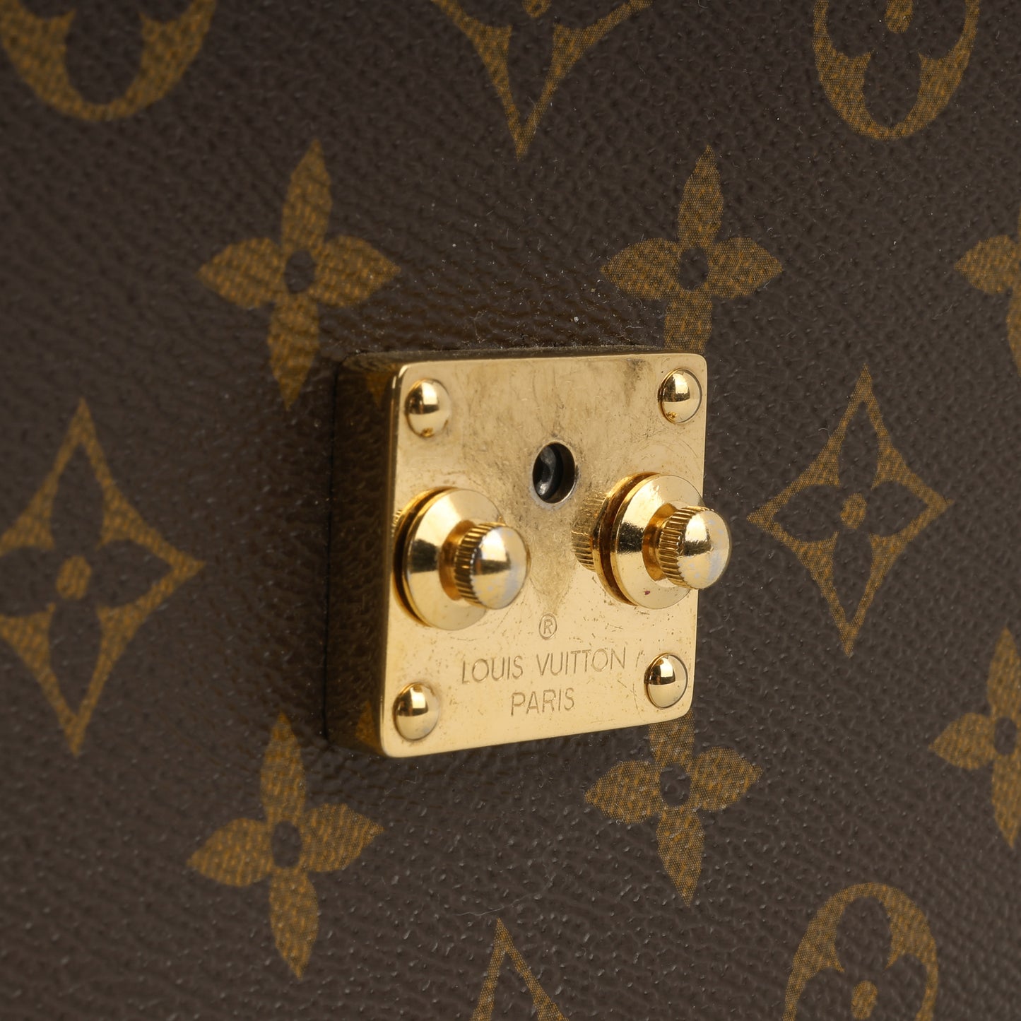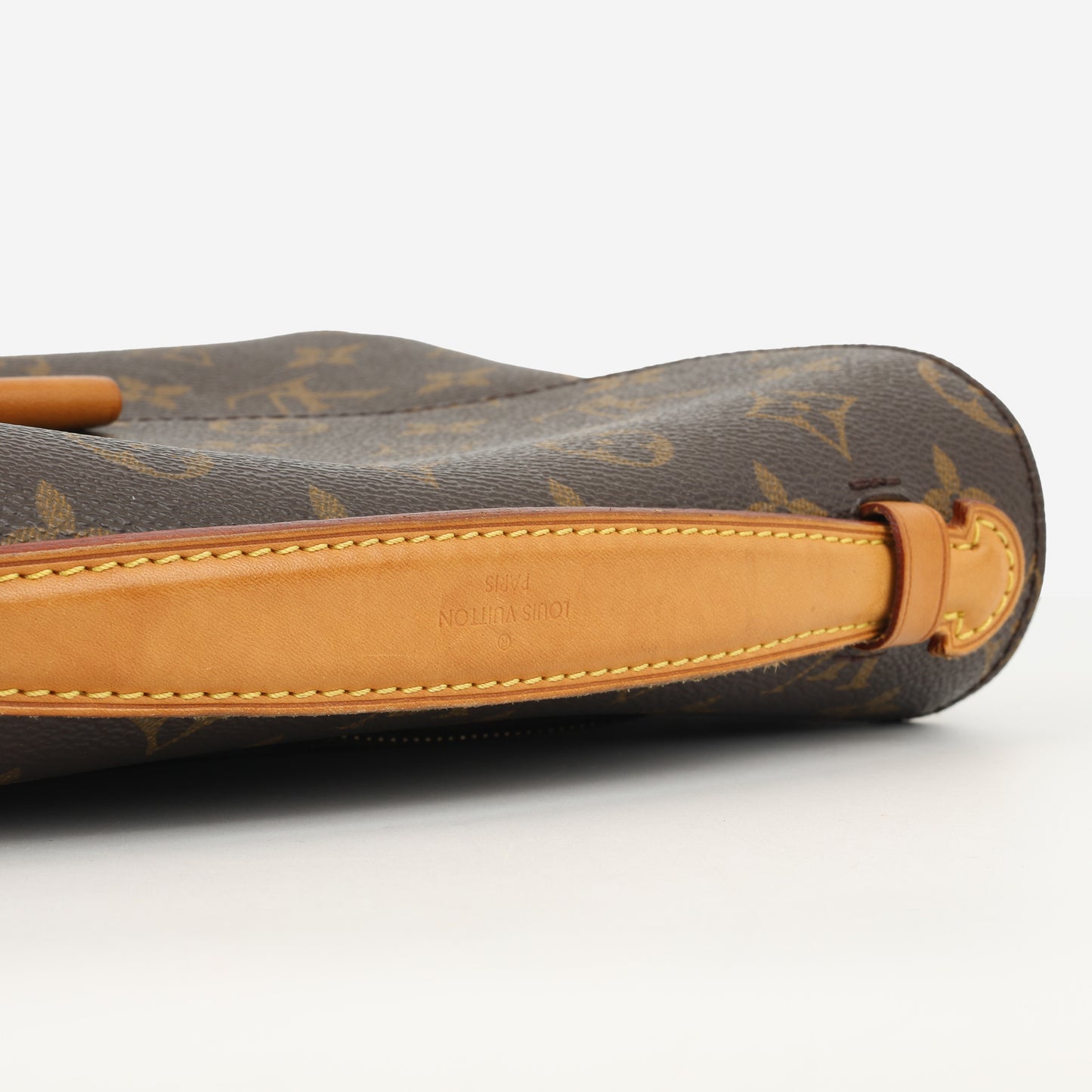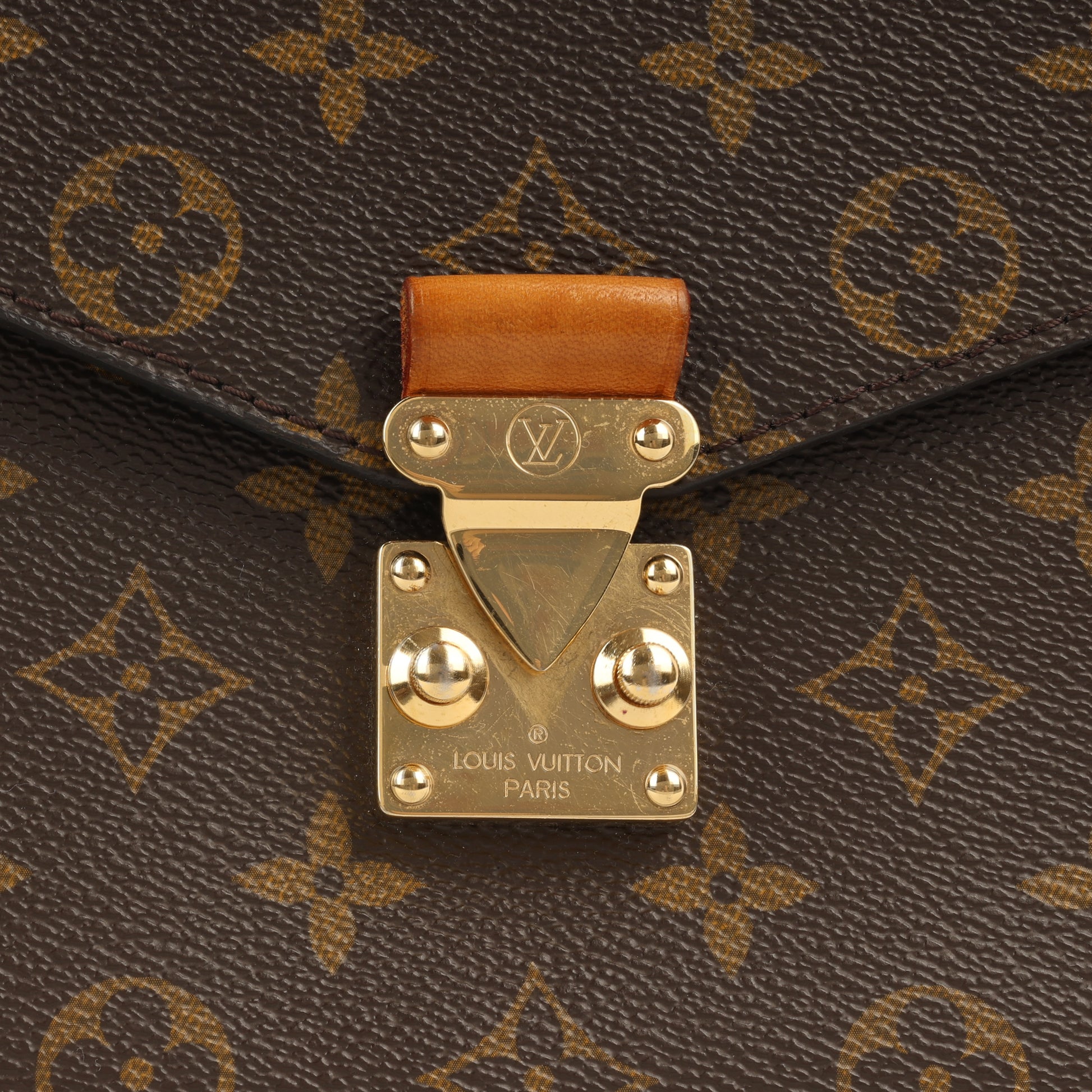 - Louis Vuitton embossed leather logo