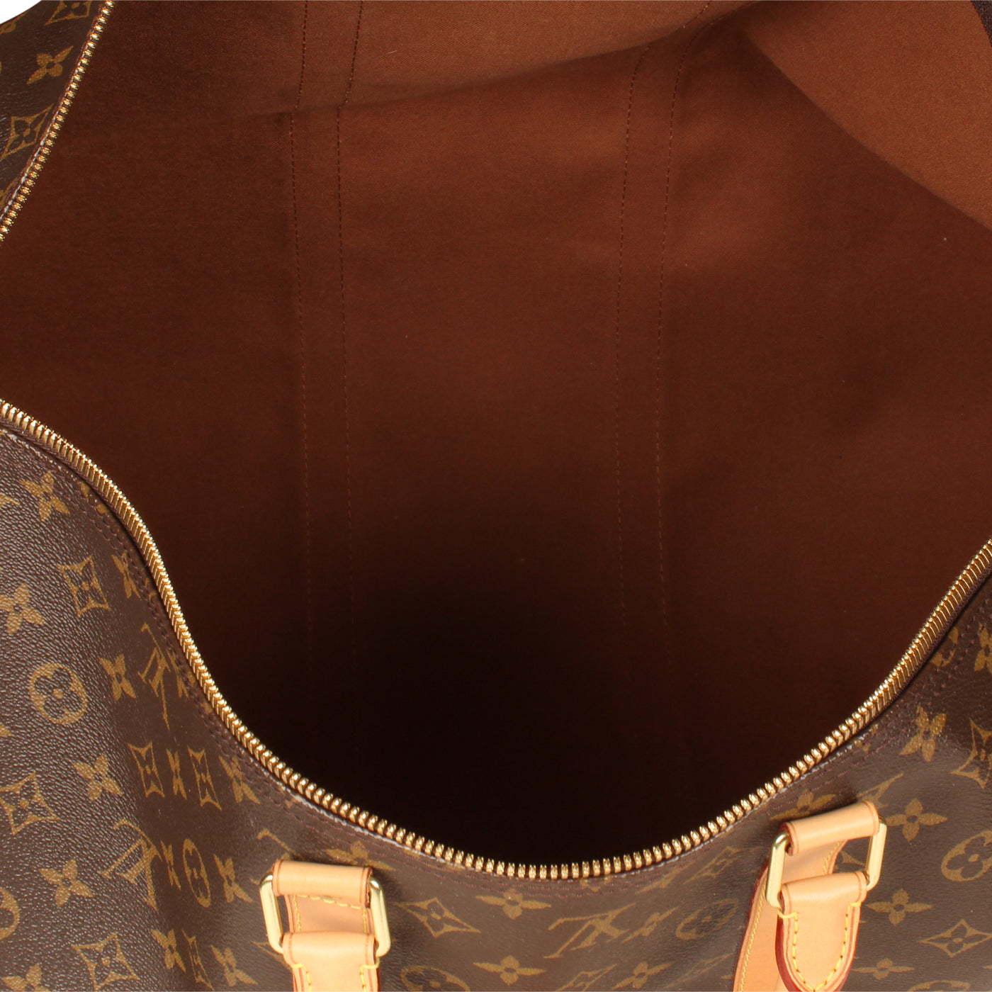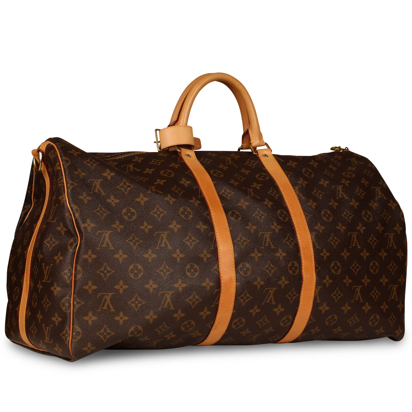 Louis Vuitton presents their signature Keepall bag, the perfect travel accessory for both men and women. Carefully crafted in the brand's iconic monogram canvas and cowhide leather trimming, top handles, and shoulder strap, the Keepall is sleek and sophisticated. Large and spacious, making it easy to carry your whole world with you wherever you go, the Keepall is also extremely lightweight. It's the perfect travel companion and is a necessary addition to any luxury bag collection, especially luggage.