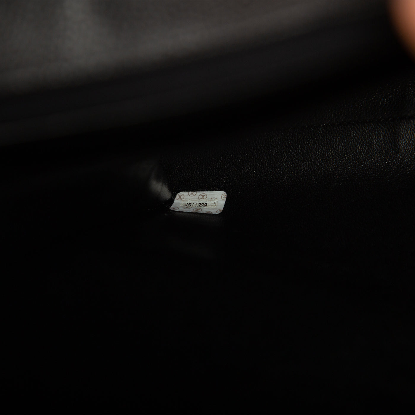 - Chanel embossed leather logo tag