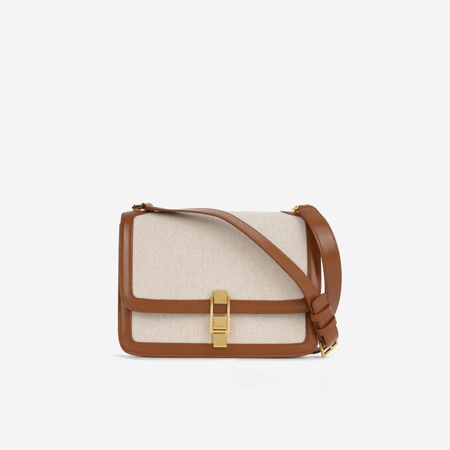 Perfect for anyone with a love for luxury who seems to always be on-the-go, the Carre Satchel is the one for you. Crafted in calfskin and toile - complemented by gold-tone hardware, this is suitable for every occasion.