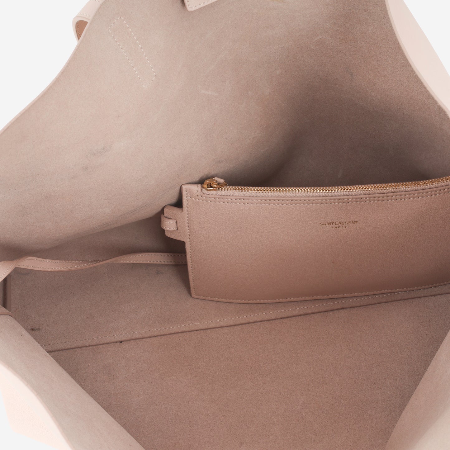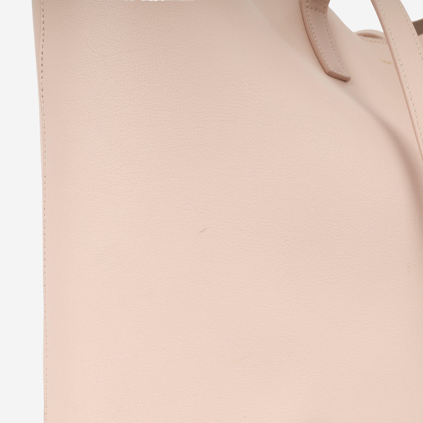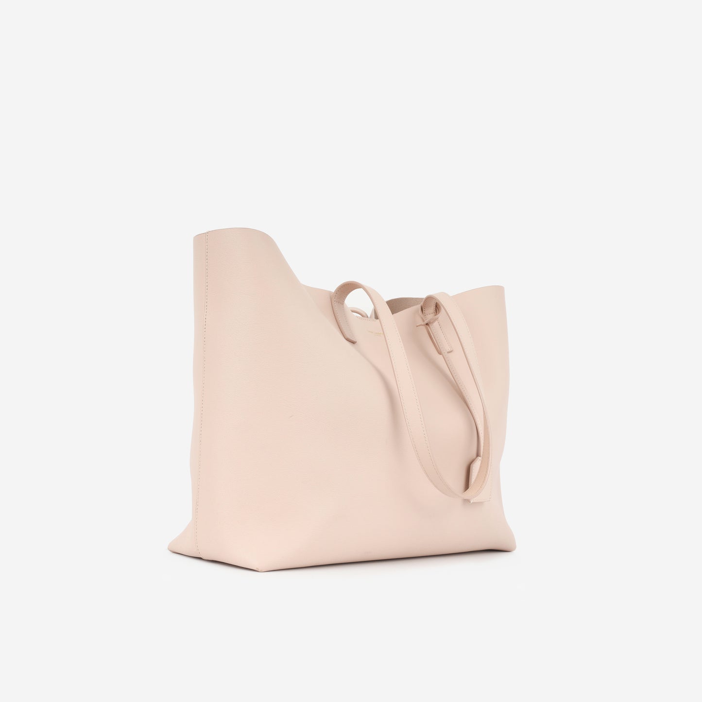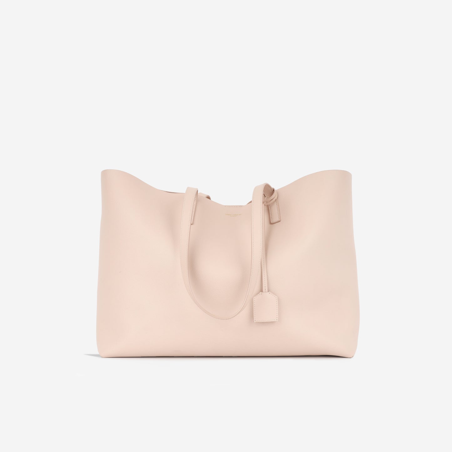 Acclaimed for its understated aesthetic and minimalist silhouettes, the "Shopping Bag" tote from Saint Laurent is the ideal accessory for any woman with a chic, simple sense of style and a love for discreet luxury. Crafted from smooth, soft blush calfskin leather and embellished with the Cassandre charm.