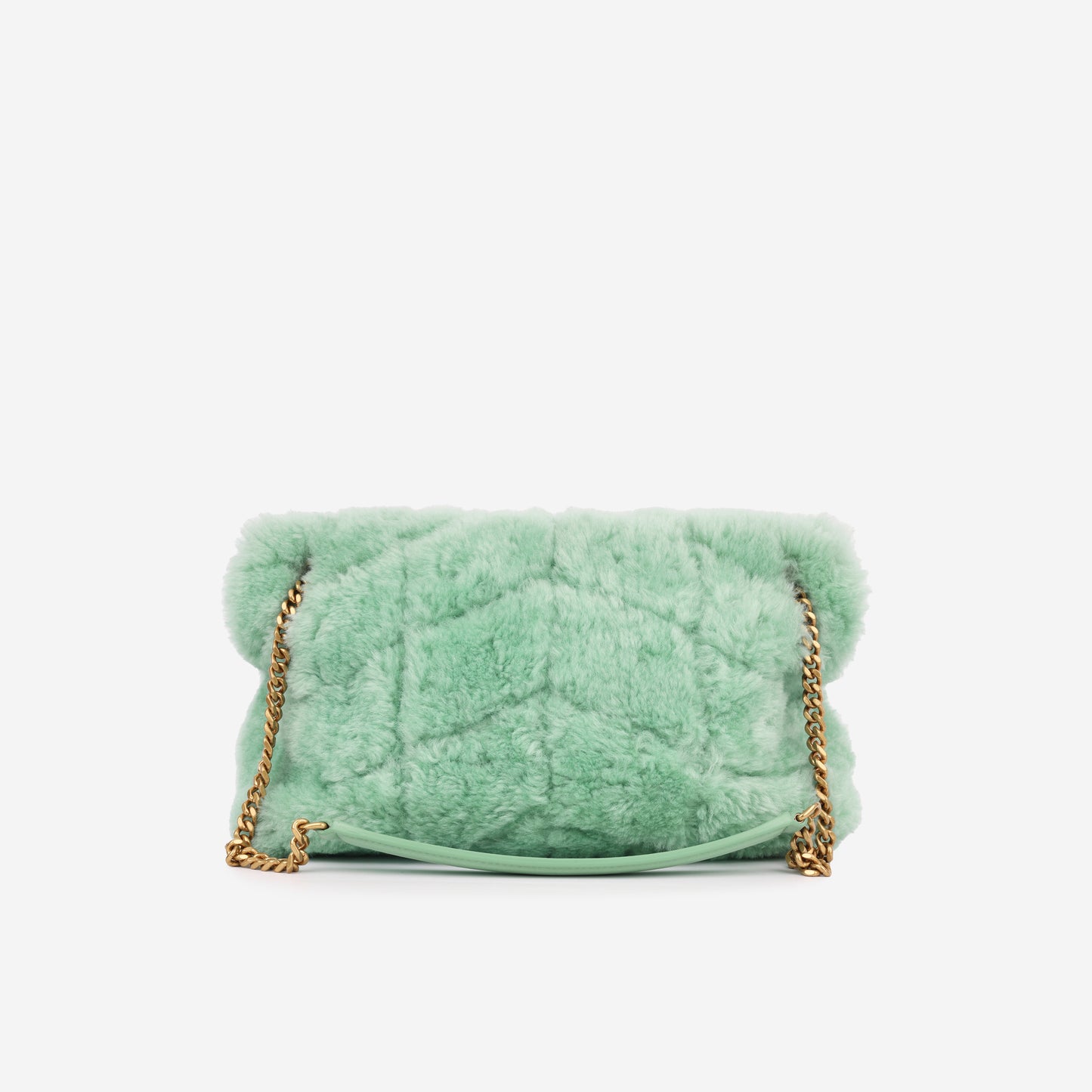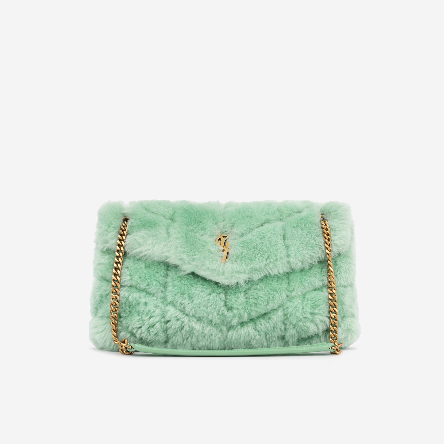 The Medium Puffer Bag adds a touch of elegance to the YSL Collection. Ideal for casual daytime outings, this bag is perfect for those on-the-go moments, offering ample space for your essentials. Featuring the iconic YSL intertwined logo in sleek black hardware, this Saint Laurent piece can be worn cross-body with one strap or styled with the double chain for a shorter, chic look. Crafted with luxurious shearling, it exudes sophistication and warmth for a standout accessory.