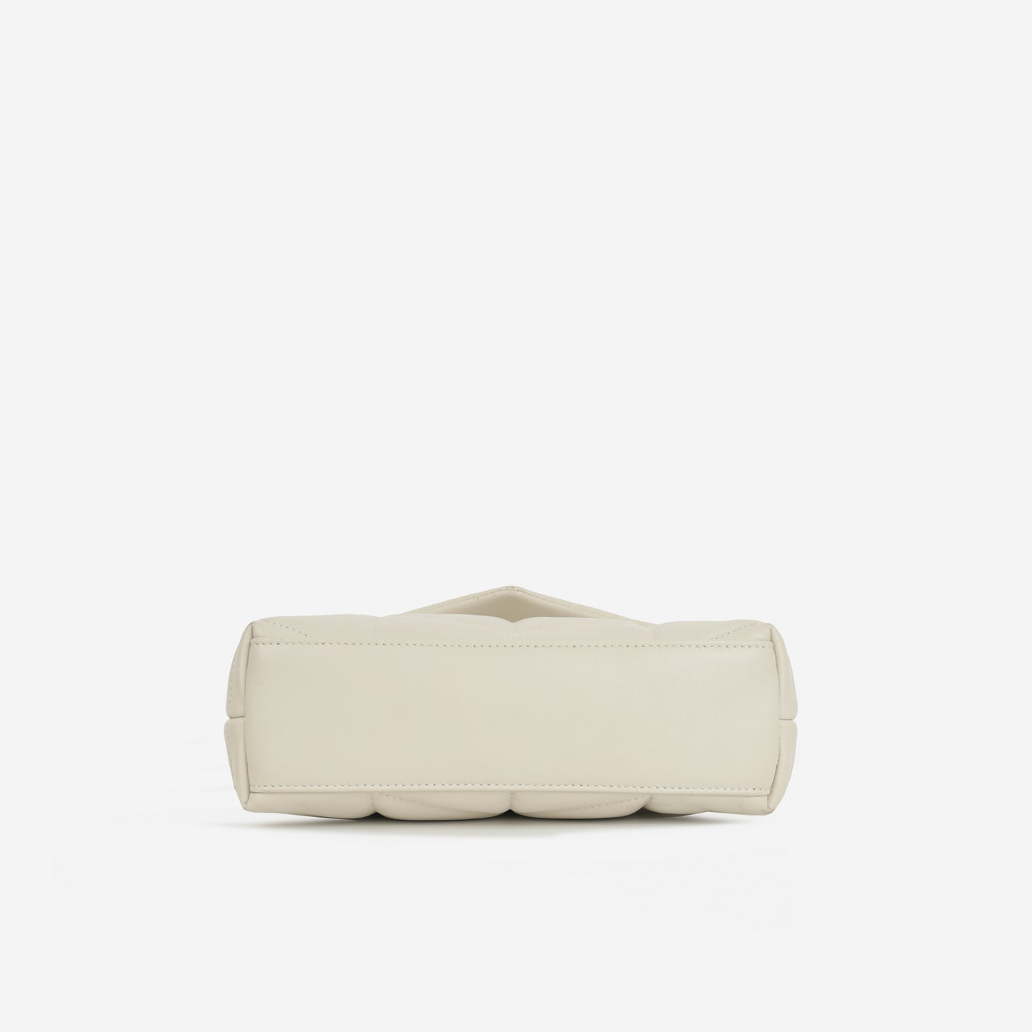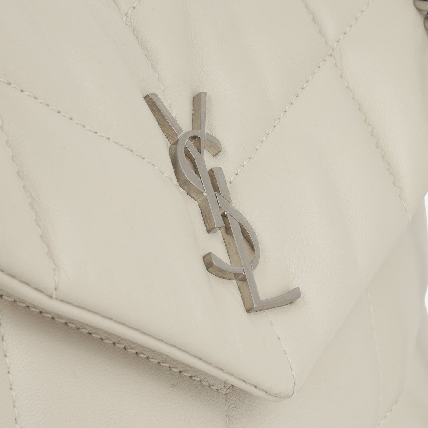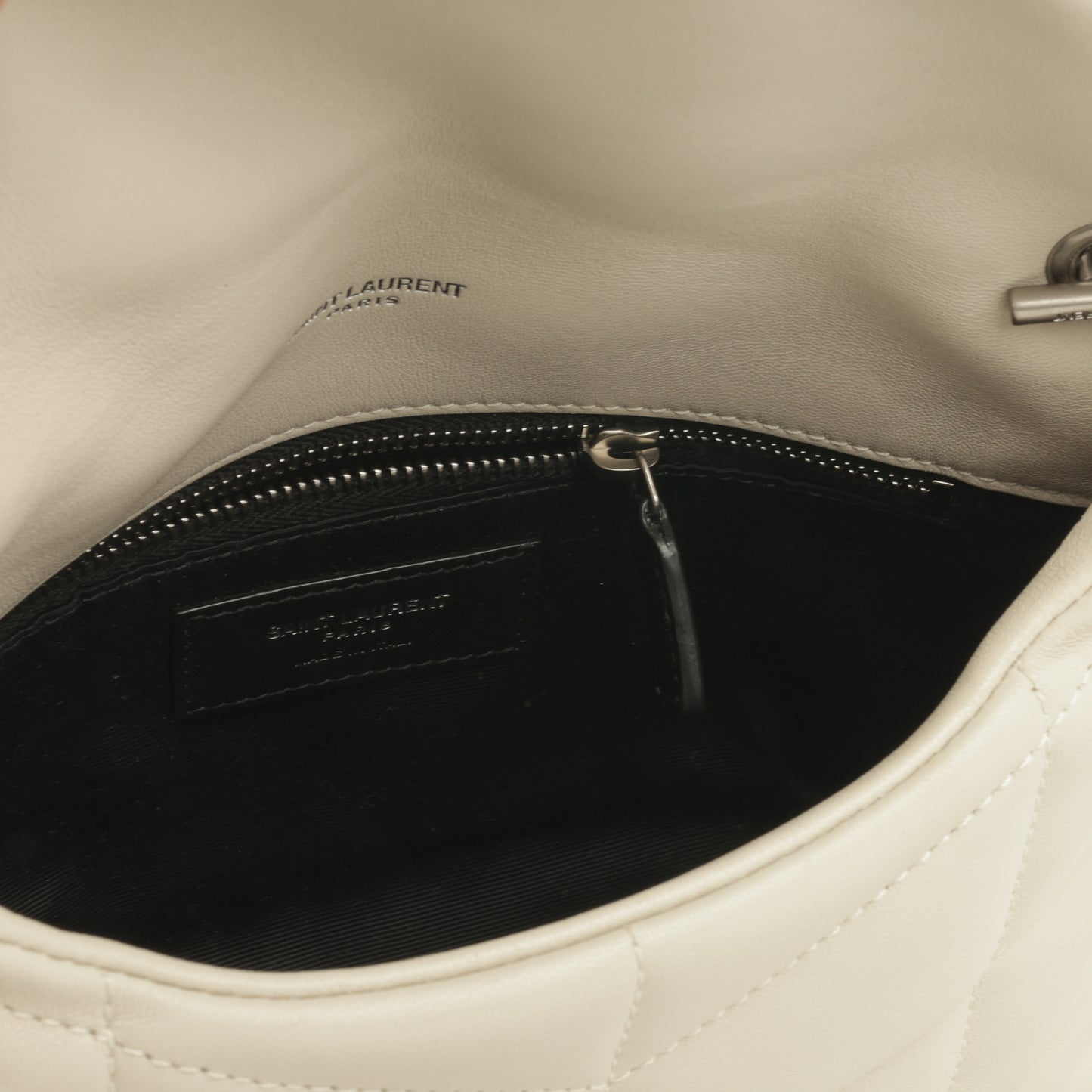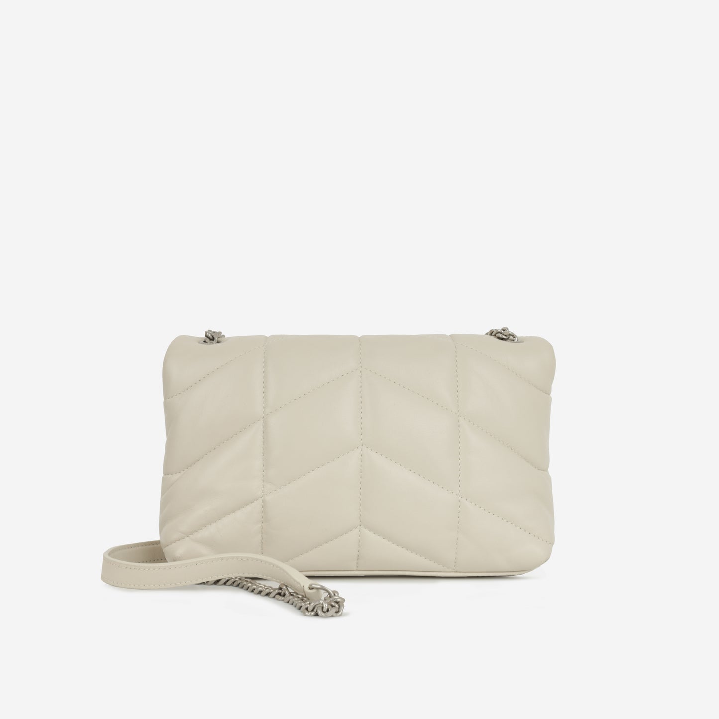 The Saint Laurent Mini Lou Puffer Bag is a sleek blend of Parisian chic and modern edge. Made from soft lambskin leather with signature chevron quilting, it features the iconic gold-tone YSL logo and a versatile sliding chain strap for shoulder or crossbody wear. A magnetic flap opens to a compact interior with a secure zip pocket, perfect for everyday essentials.
