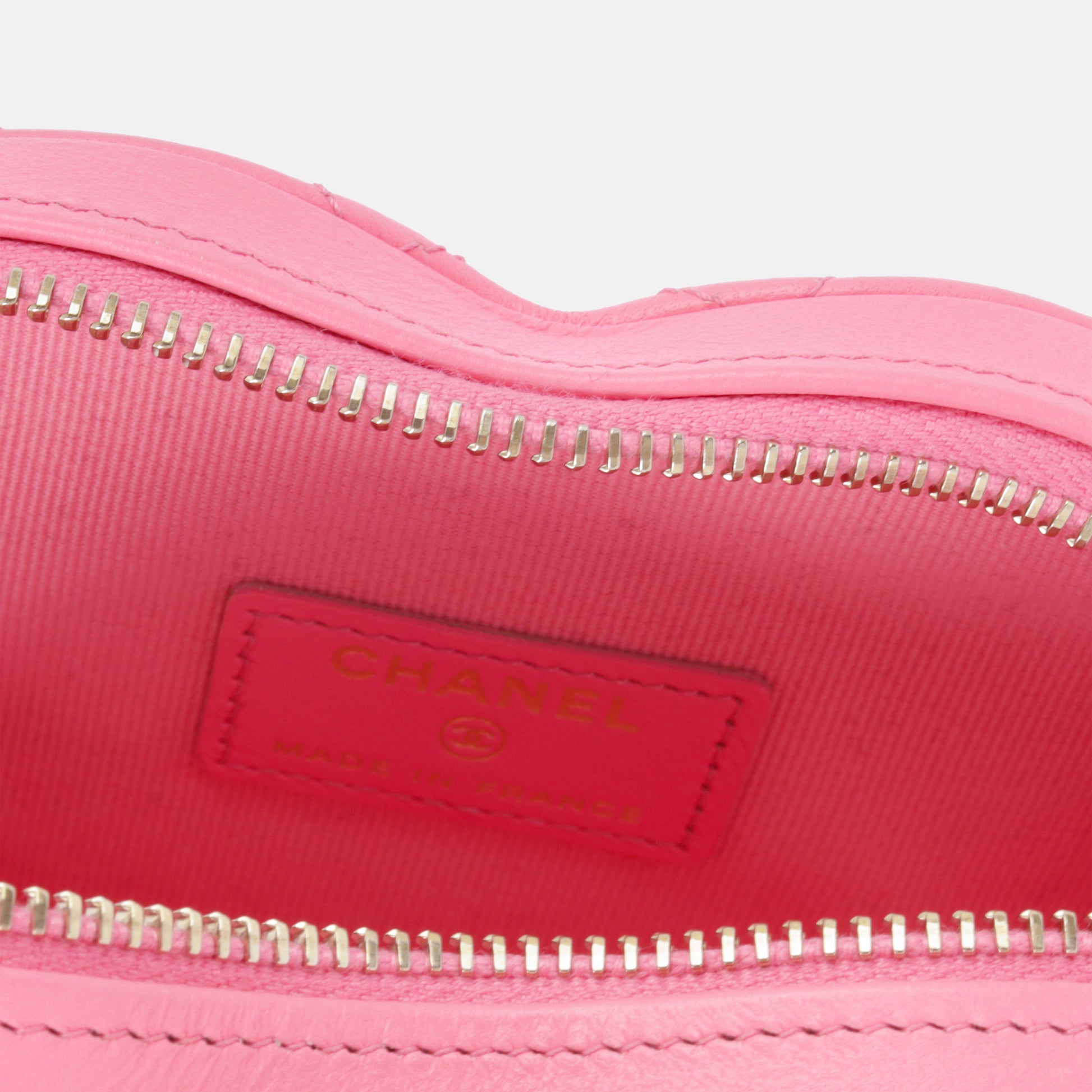 The Chanel Heart Bag is still sought after and we've got it here at Bagista. Sold in a range of sizes and colour options, this is a modern and romantic piece to add to your winter wardrobe. Crafted from hot pink lambskin and romantic champagne gold hardware, this bag will compliment all of your outfits.