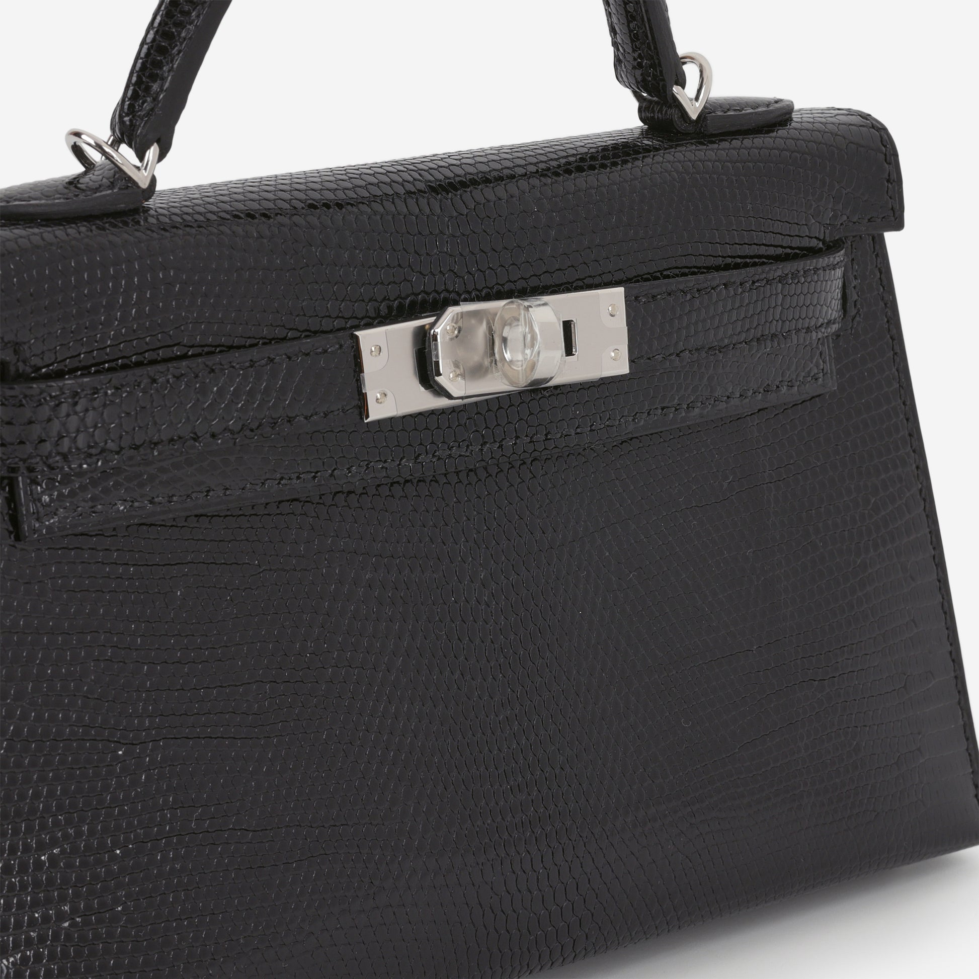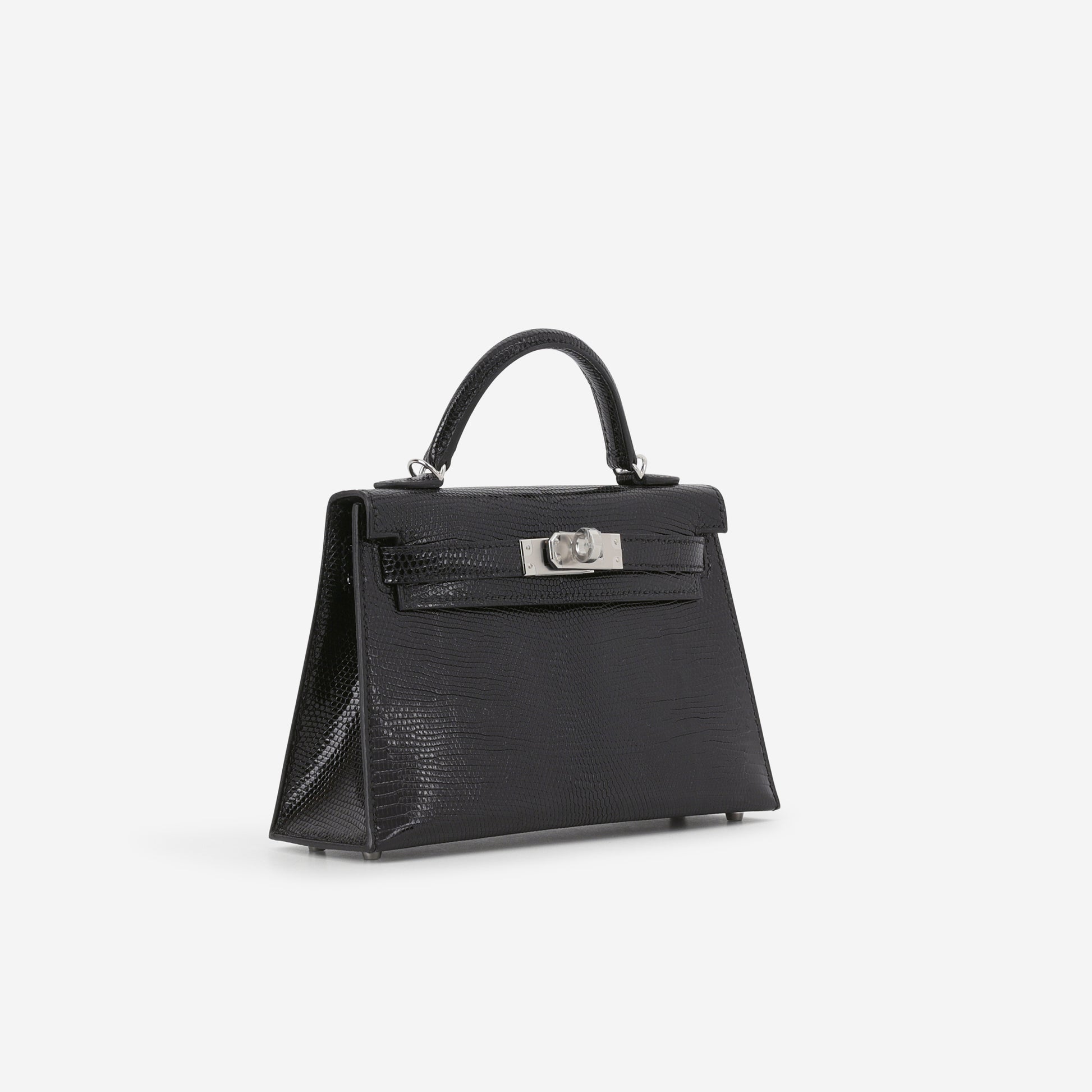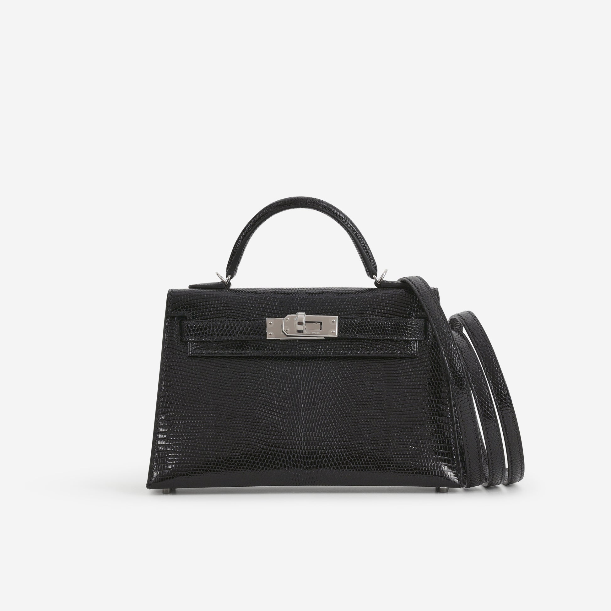 Hermès Mini Kelly - Black Salvator Lizard Lisse | Palladium Hardware