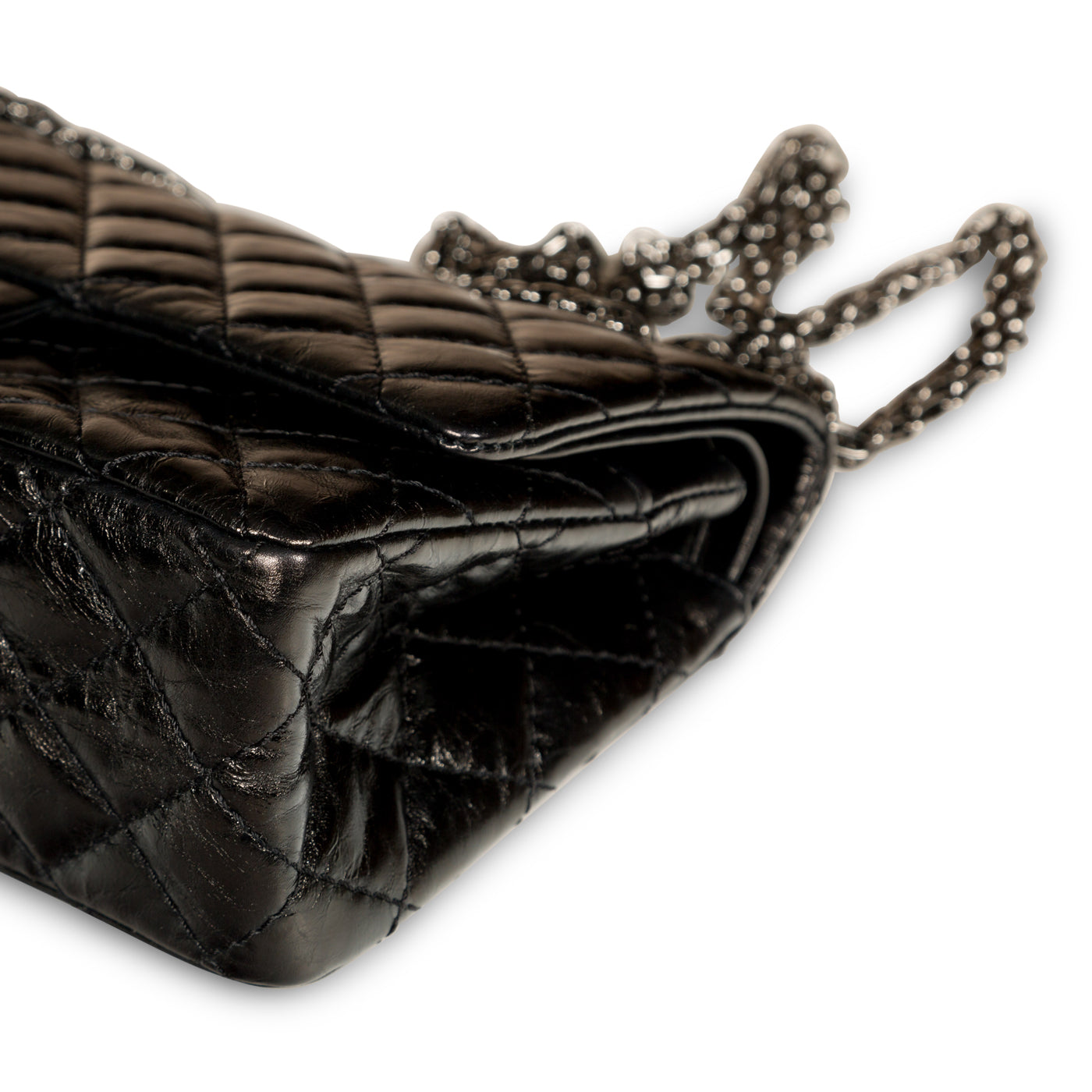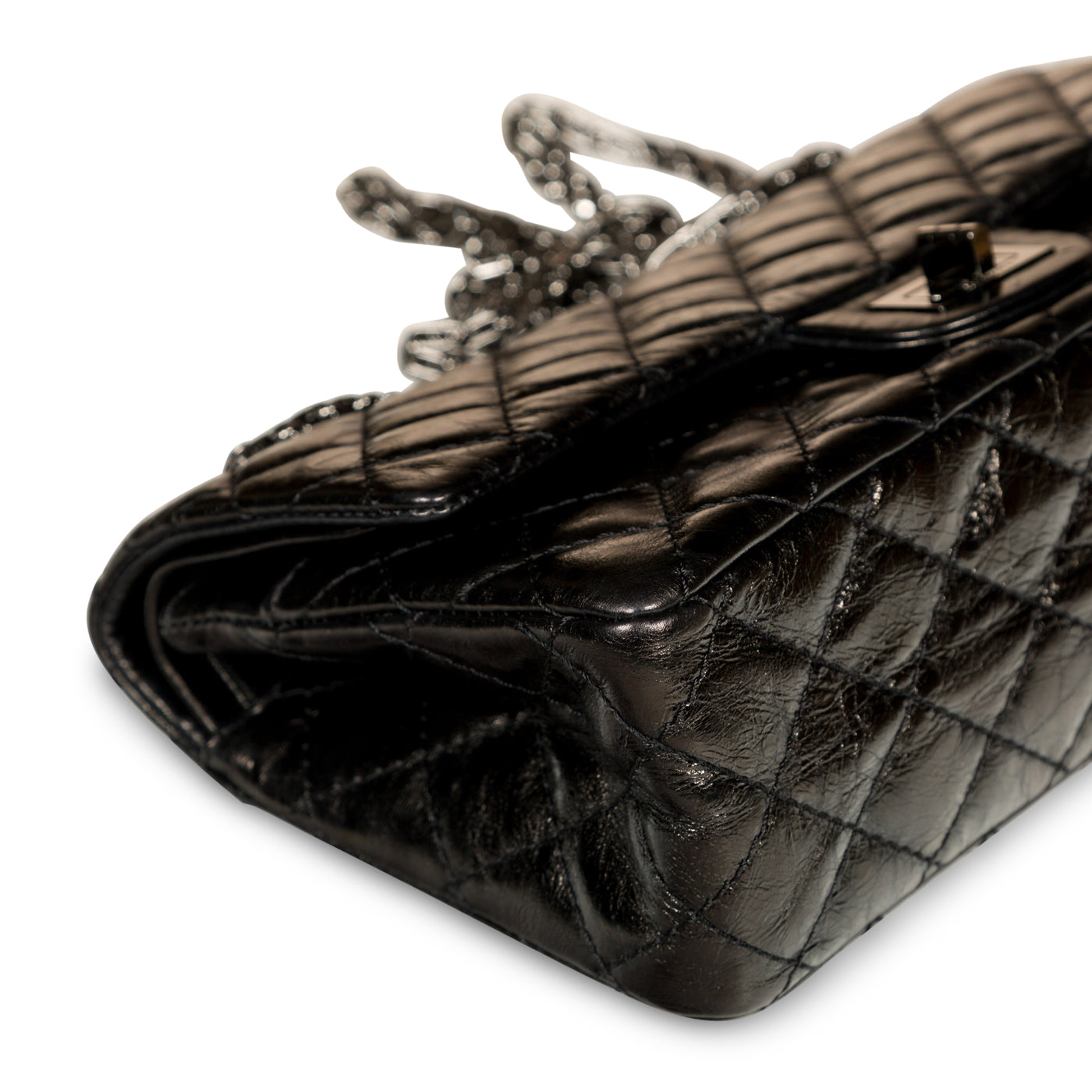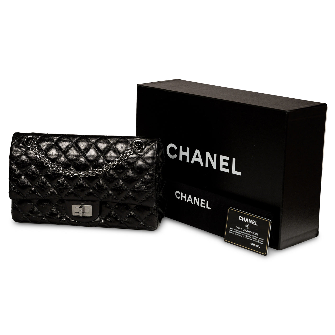 For timeless Parisian-chic there is no better investment than a Chanel classic flap bag, and this 2.55 re-issue is classic and stunning. This stylish shoulder bag is beautifully crafted in diamond quilted black crumpled calfskin leather with a deep gun-metal grey hardware tone. Under the creative direction of Karl Lagerfeld, Chanel have continued to create these flawlessly crafted handbags which last a lifetime.