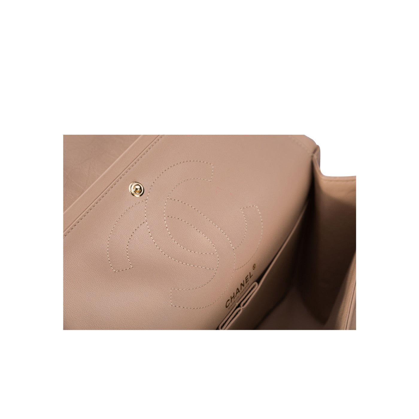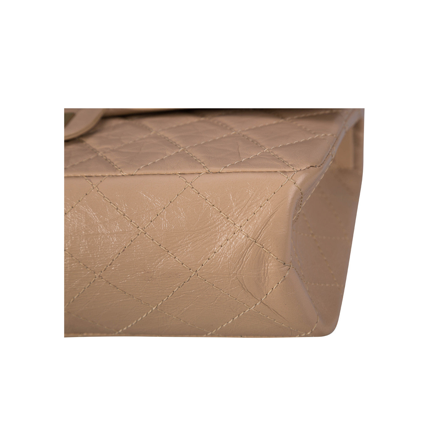For timeless Parisian-chic there is no better investment than a Chanel classic flap bag, and this 2.55 re-issue is classic and stunning bag. Under the creative direction of Karl Lagerfeld, Chanel have continued to create these flawlessly crafted handbags which last a lifetime. This one is beige, crafted out of lambskin, with gold tone hardware and the classic re-issue twist lock. This bag can be worn with any outfit and in any season, it is a true investment piece.