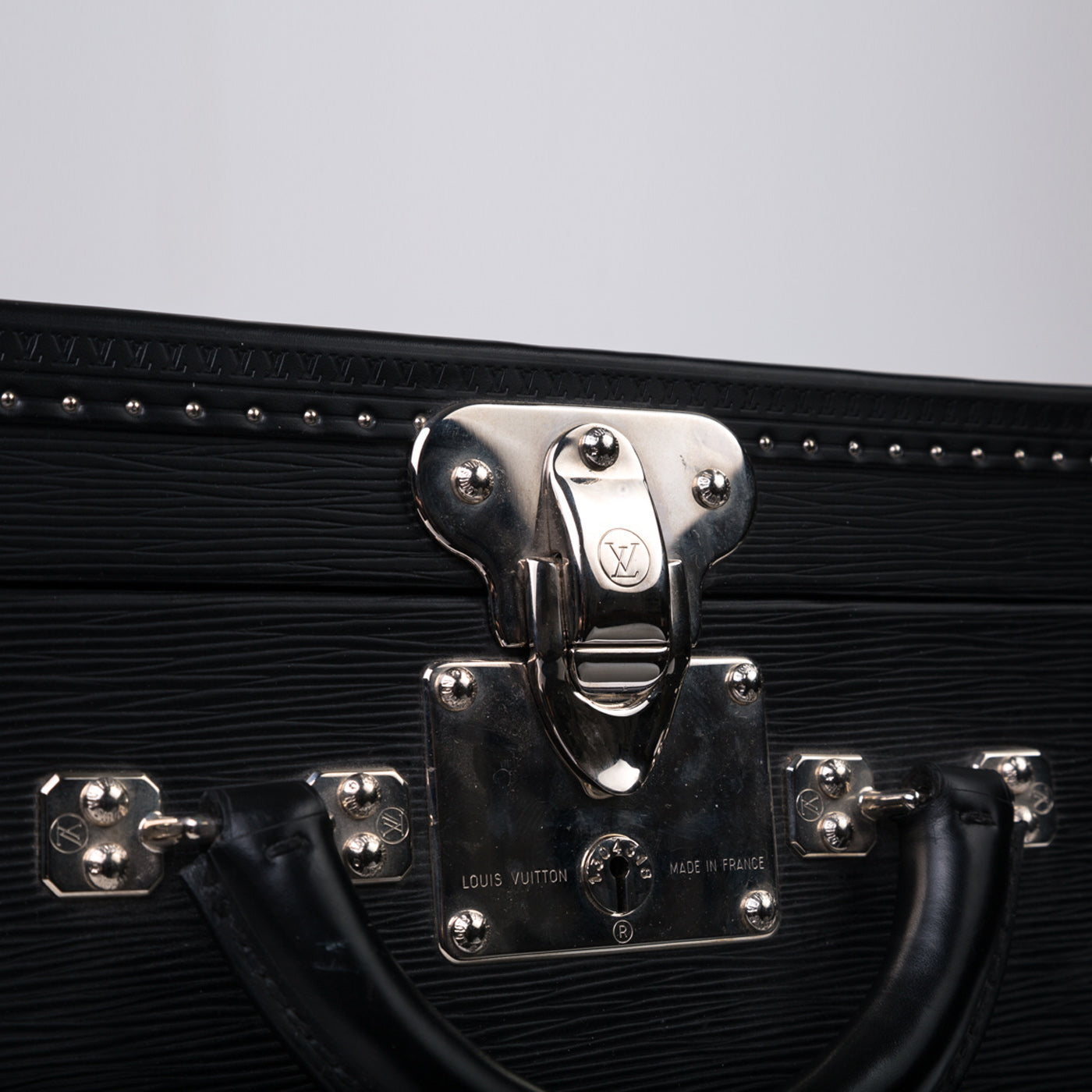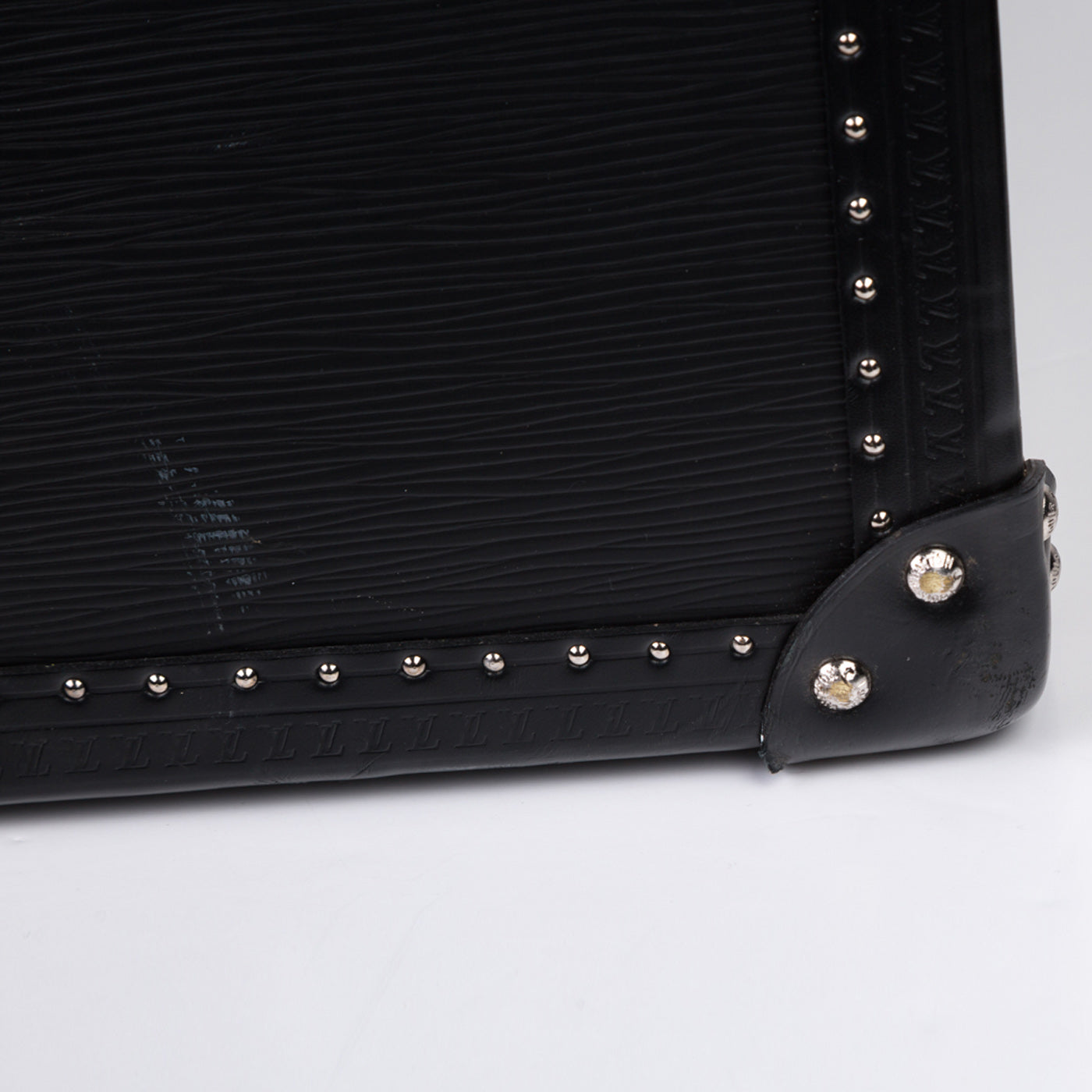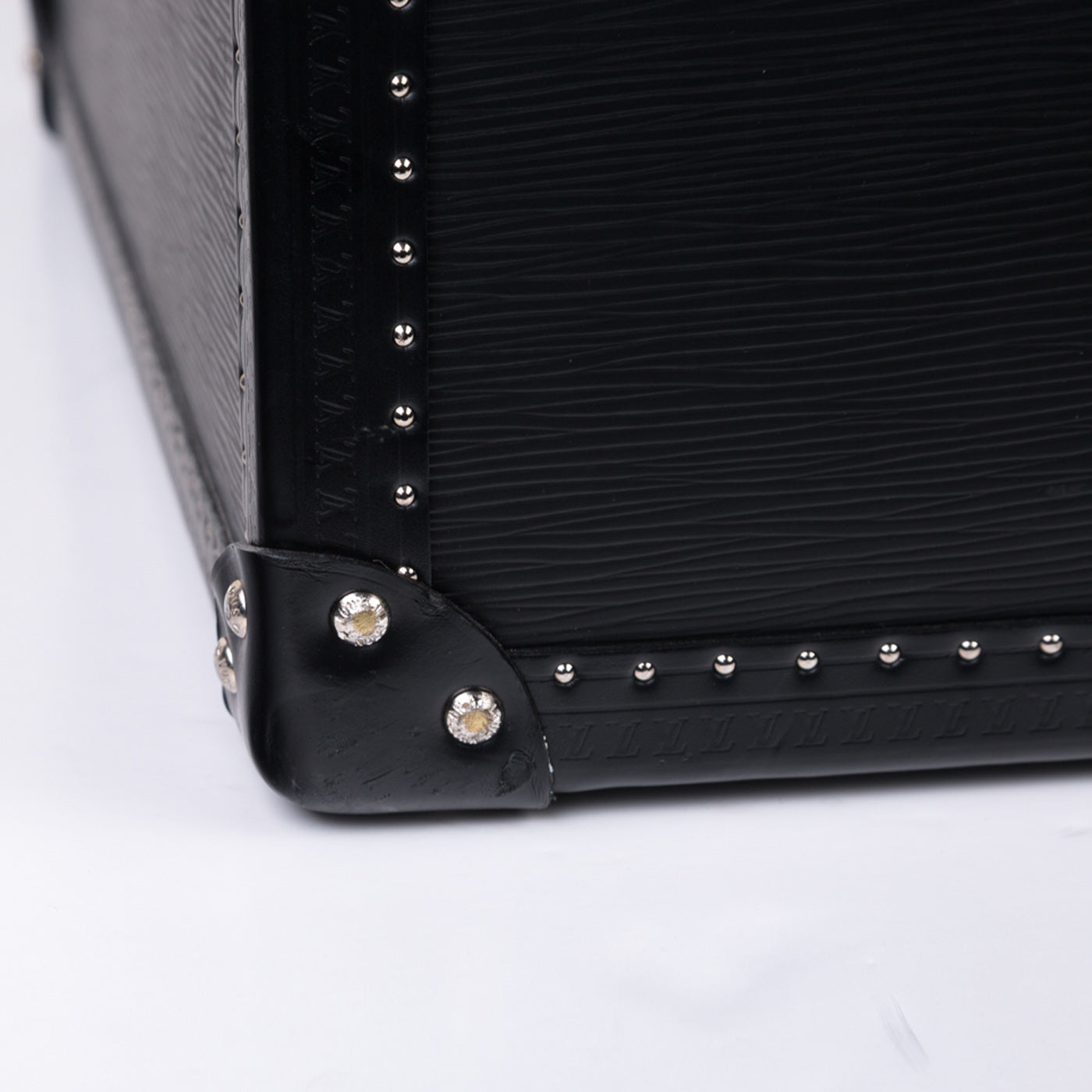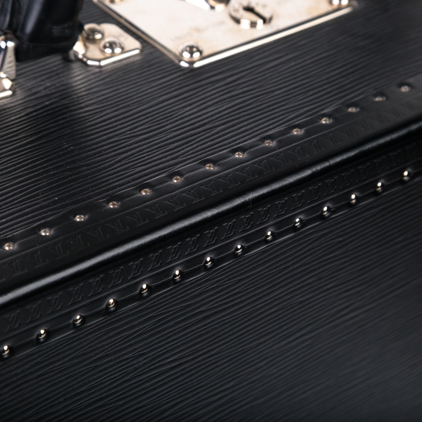 This Black EPI Leather suitcase is the perfect companion for your travel adventures. Featuring a classic trunk style that incorporates the previous original luggage designs of Louis Vuitton. With a spacious interior and an extremely sturdy exterior, you can guarantee that your items are going to be kept safely. Louis Vuitton has ensured security with this design, it comes with a 3 fastenings systems, 2 buckles and a lock with 2 spare keys. The all black leather exterior is chic and classy whilst the silver toned studs and rivets add a luxurious extra touch.