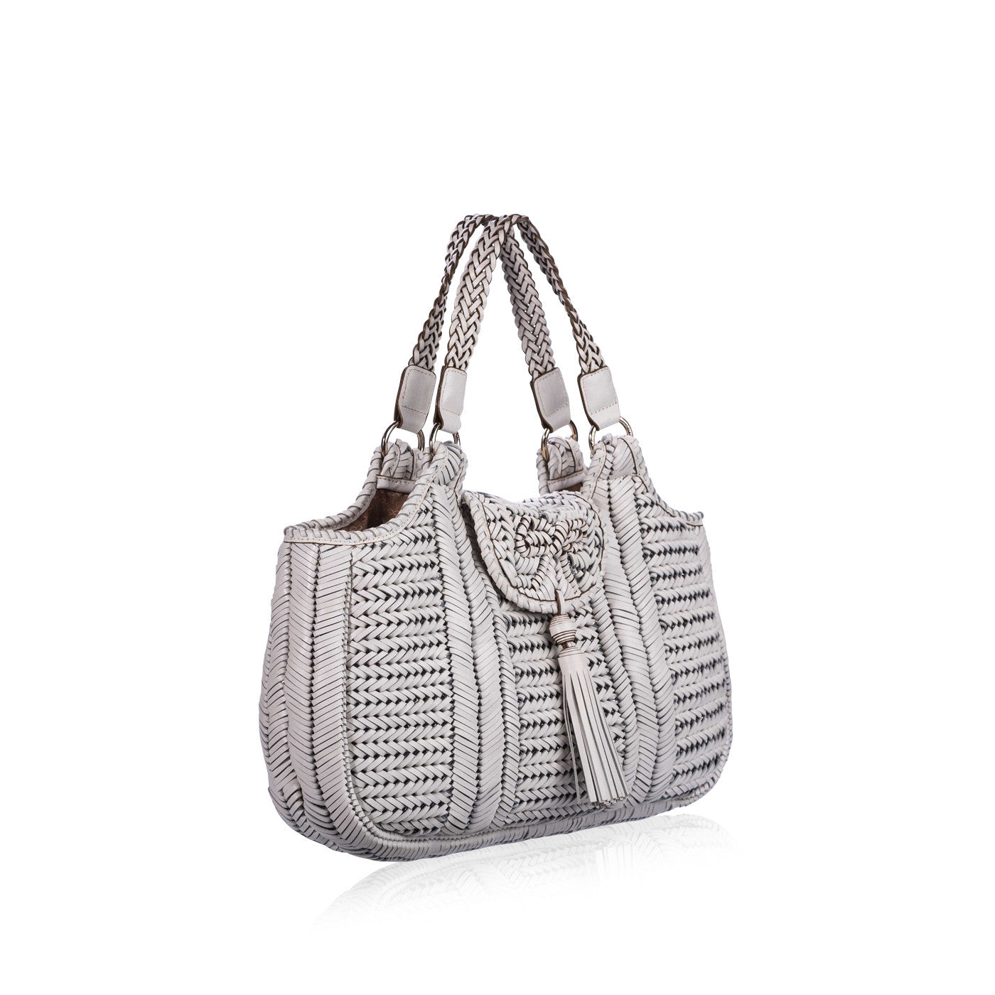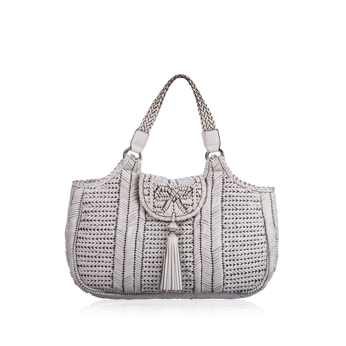 This glamourous woven leather tote from Anya Hindmarch is the perfect summer wardrobe staple. The white leather and open tote design make this the perfect bag to take on holiday or to wear for a day out shopping in the sunshine. This bag features an open top, internal zip pocket and slip pocket, as well as an additional pen pocket so that you can stay organised and stylish.