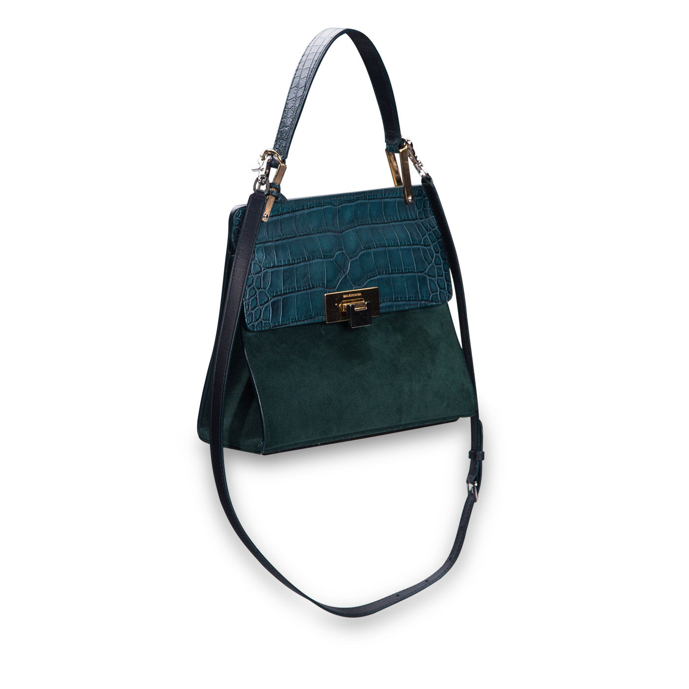 The iconic ‘Le Dix’ shoulder bag by Balenciaga is a sophisticated and feminine design, named after their flagship store in Paris. This size, although mini, the practical and effortlessly cool 'Le Dix bag is still large enough to wear everyday and pack in all of your essentials. Detach the shoulder strap to wear this bag through to the evening. With a suede and Alligator leather exterior, the bag is timeless and the rich emerald hue is a perfect, stylish alternative to black.